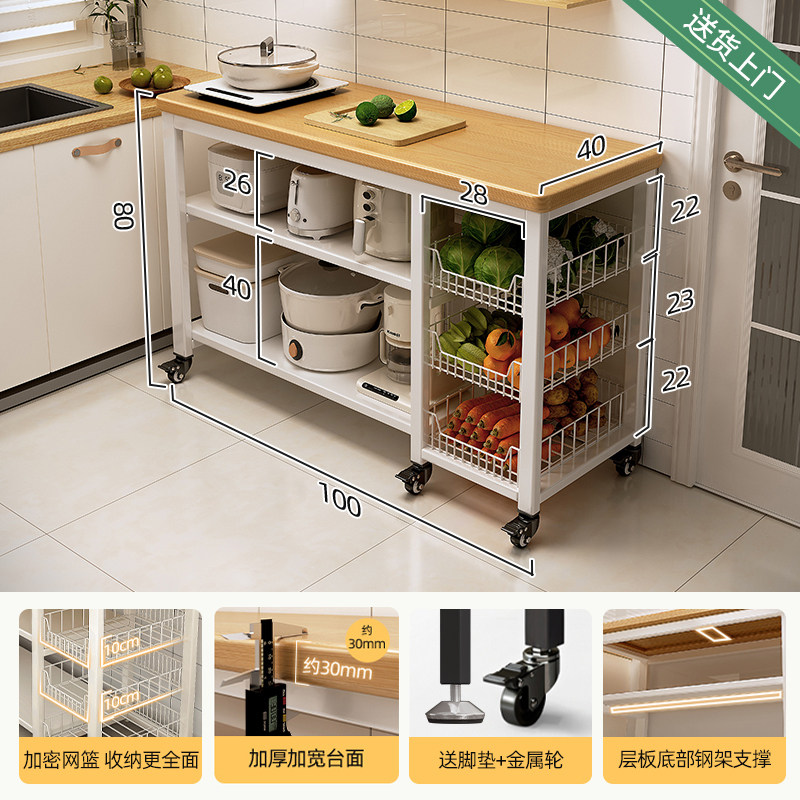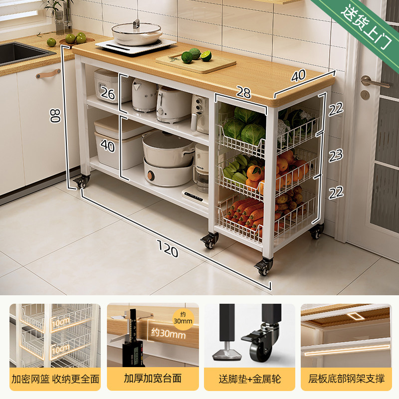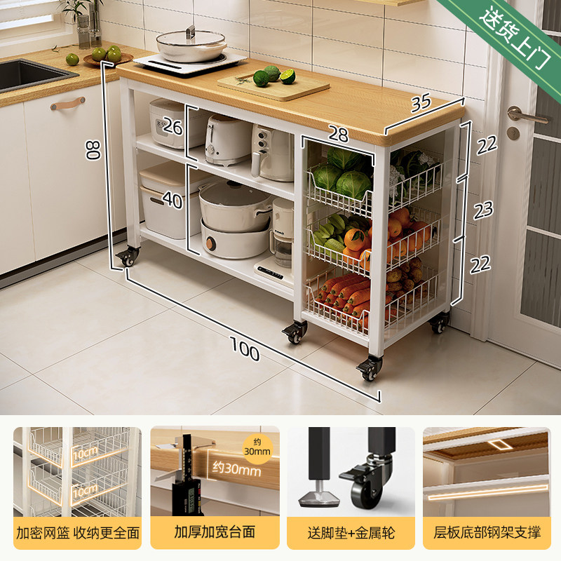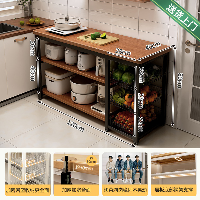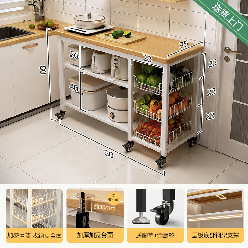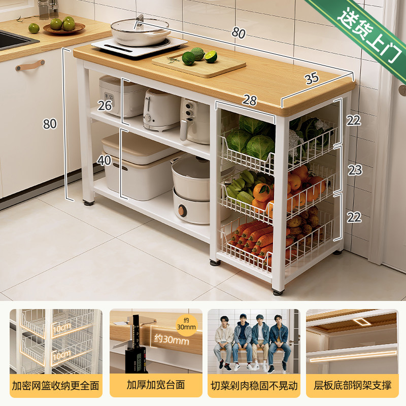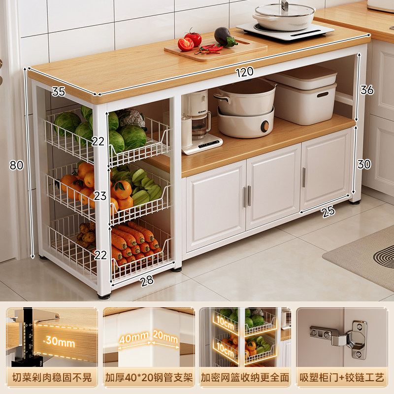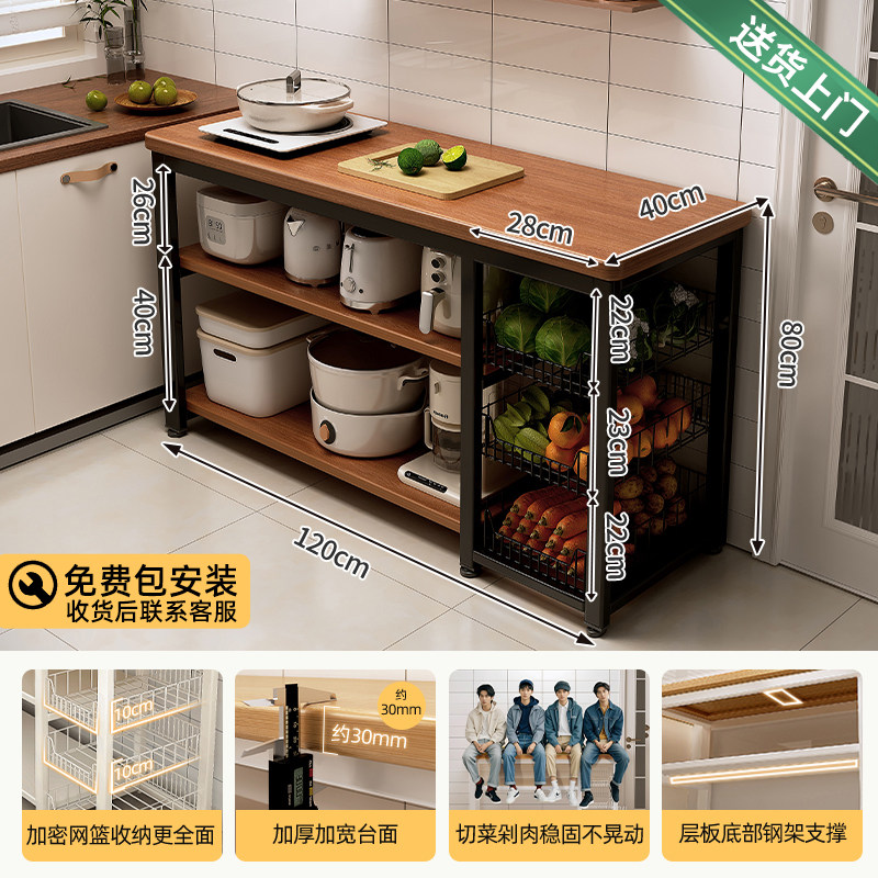 厨房置物架多功能菜篮子切菜工作台微波炉锅具收纳架边柜多层桌子