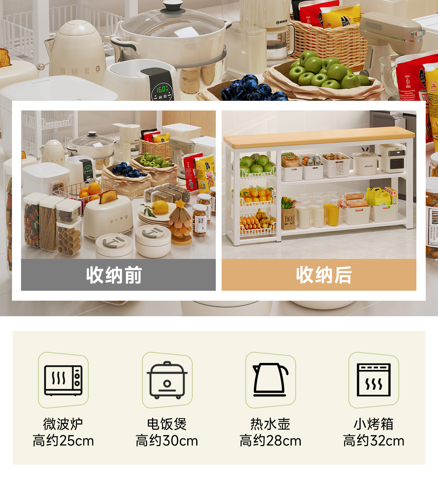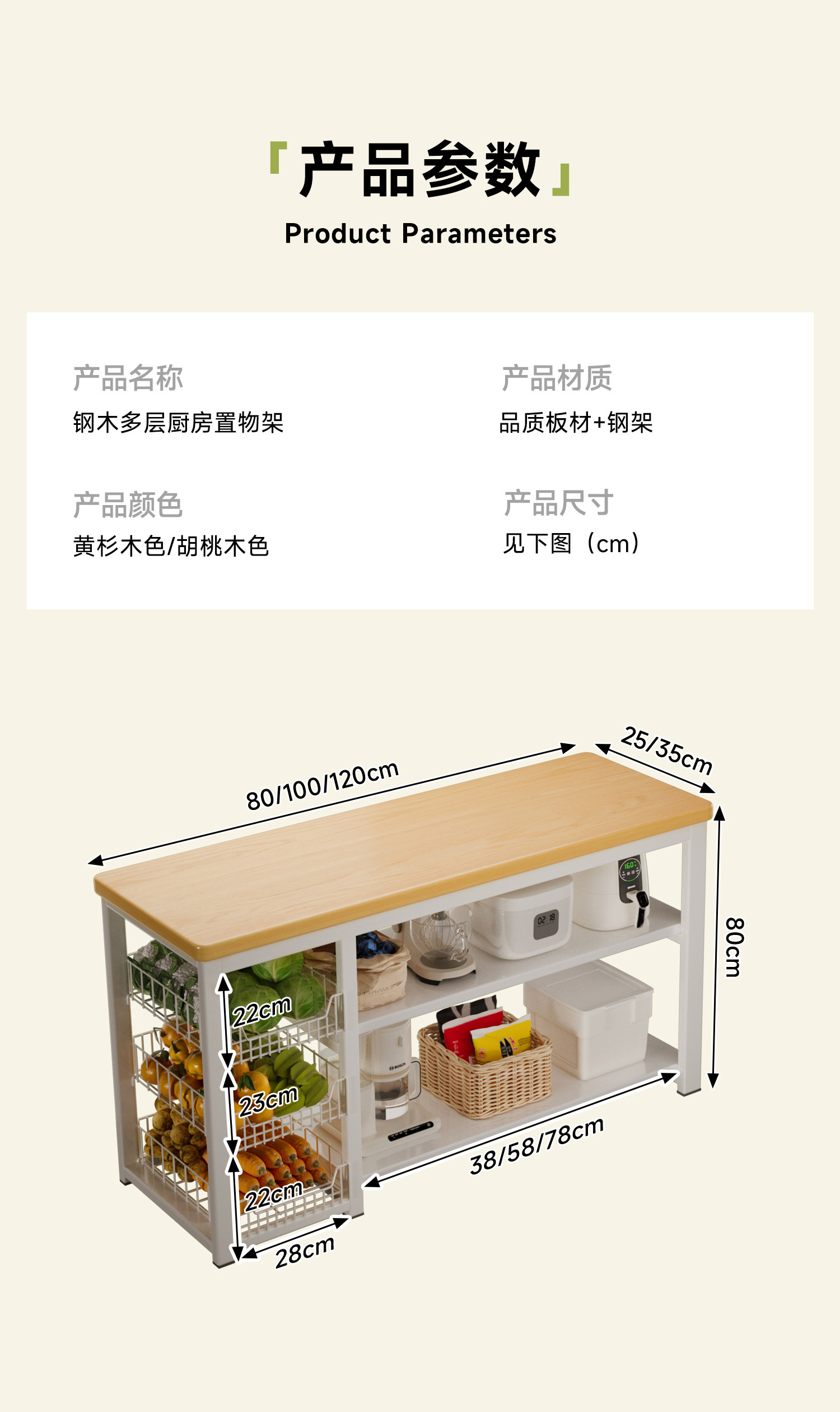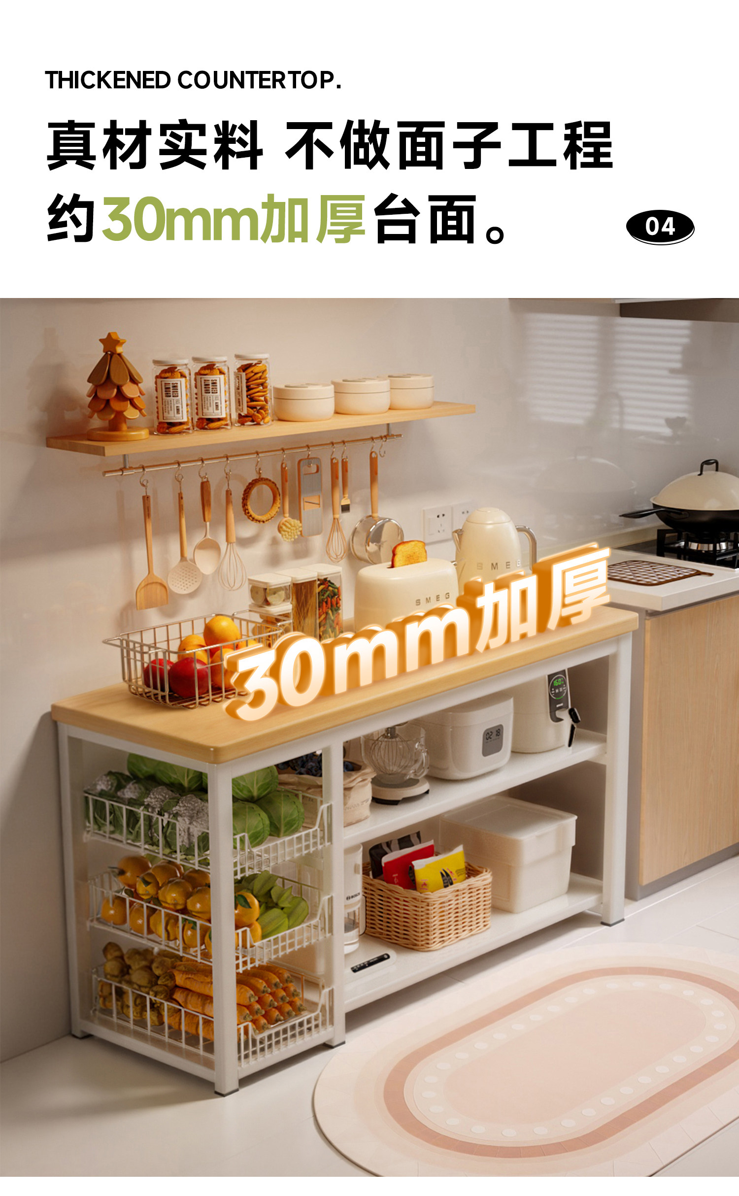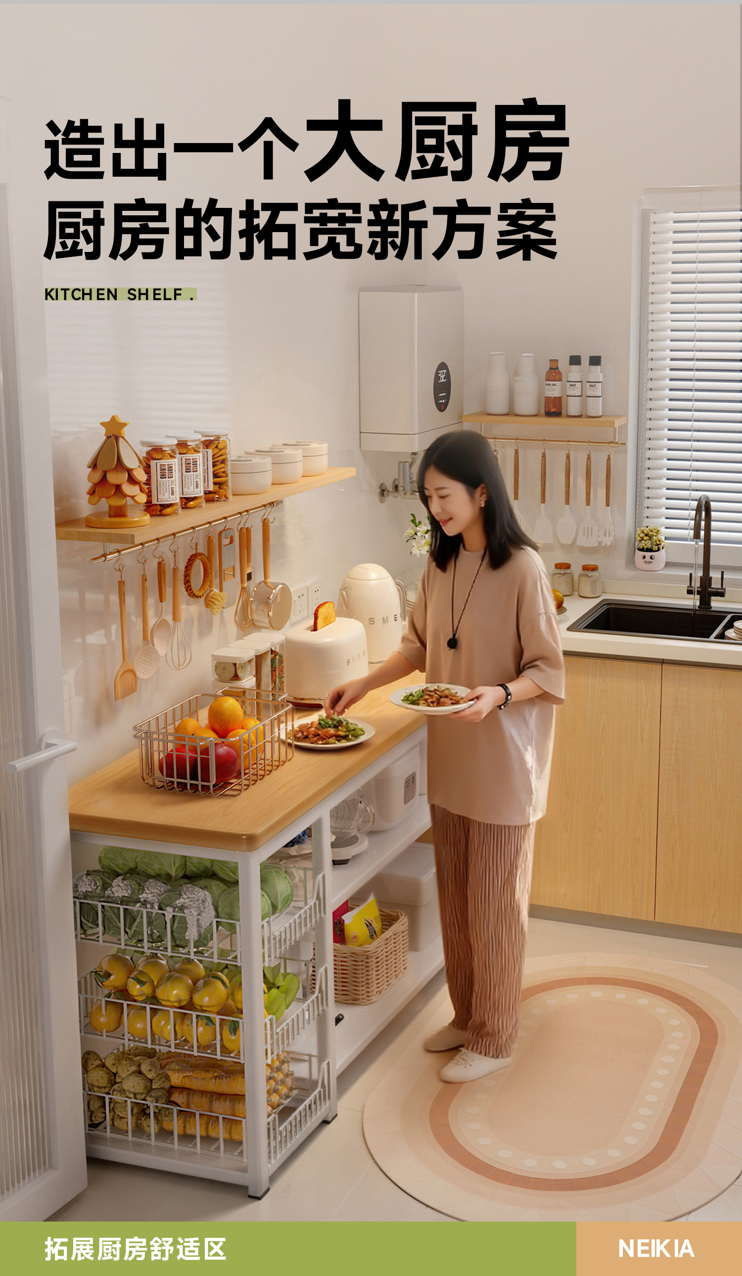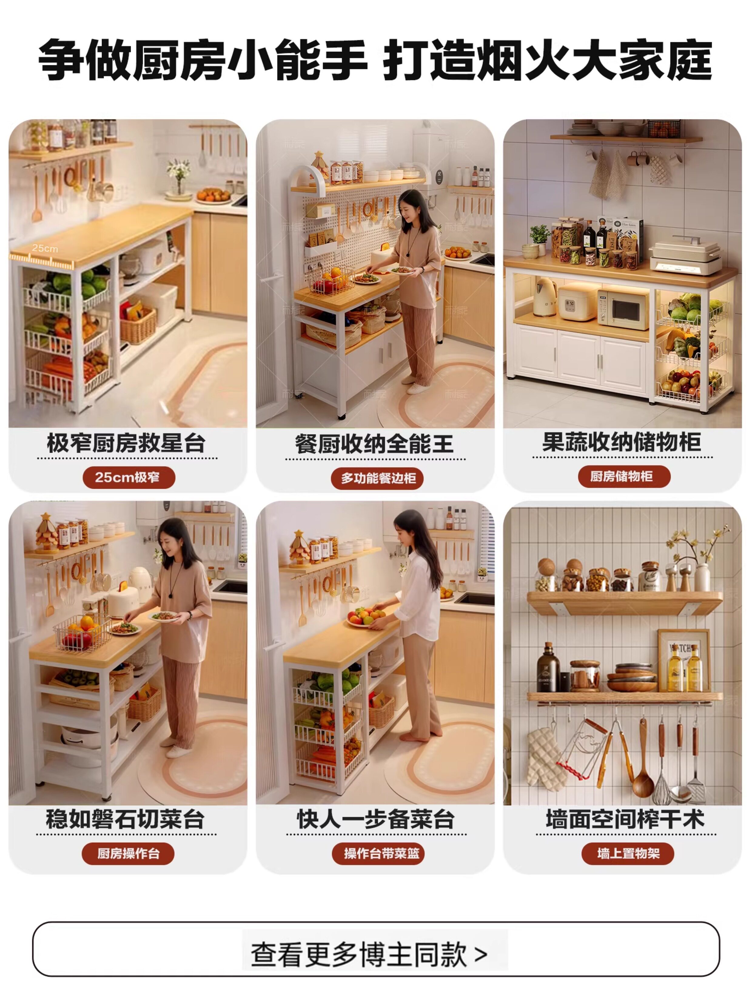 厨房置物架多功能菜篮子切菜工作台微波炉锅具收纳架边柜多层桌子