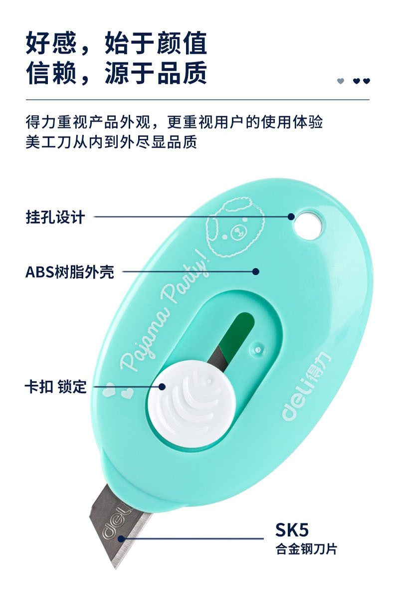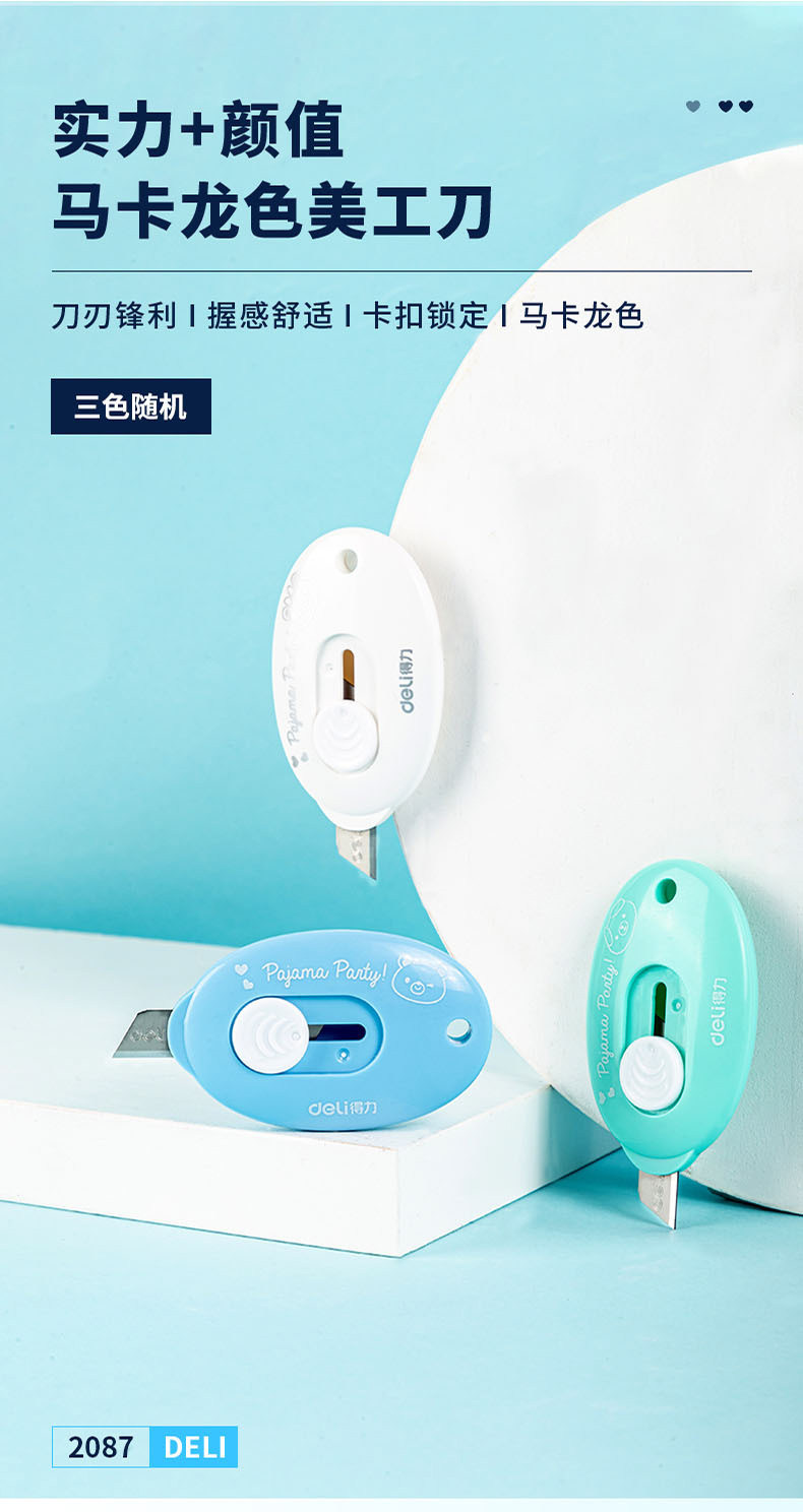得力迷你美工刀2087学生用小号可爱随身小刀裁纸刀拆快递开箱器