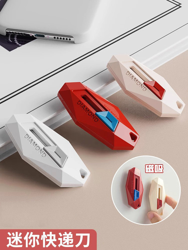 快递刀拆快递神器磁吸开箱刀美工刀小型多巴胺钻石开箱器自动回弹