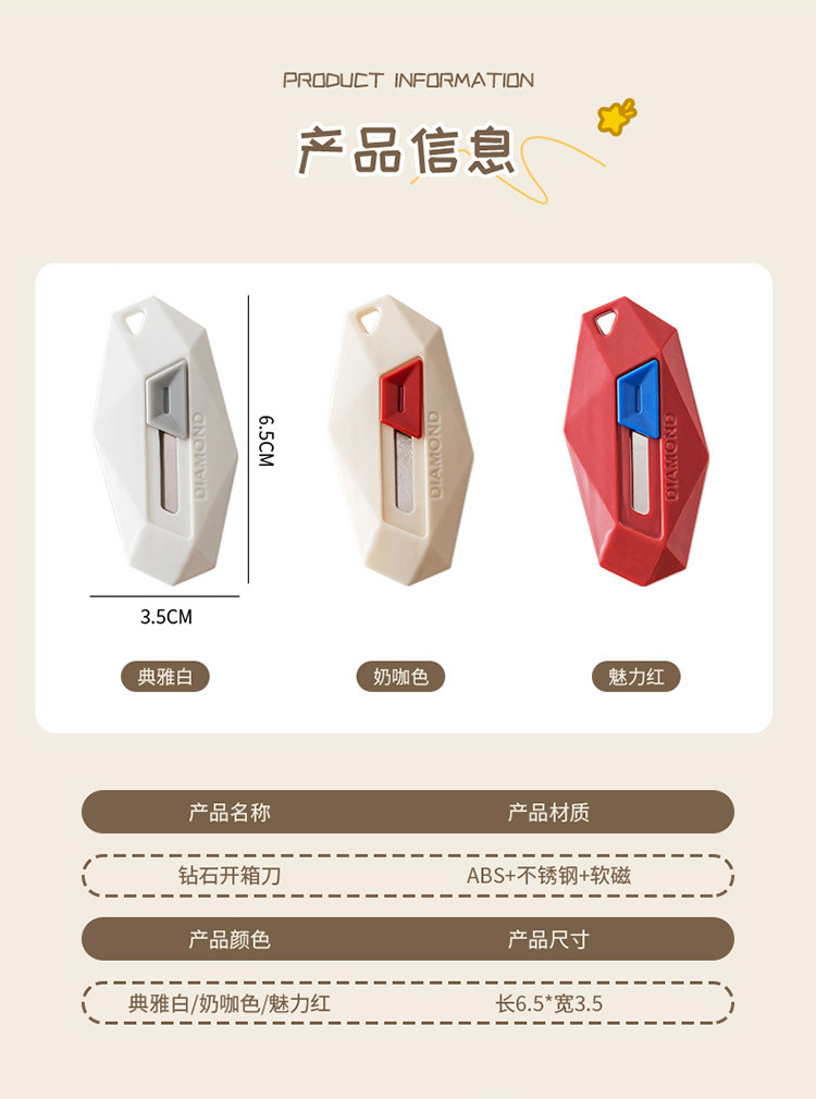 HomeProducts快递刀拆快递神器磁吸开箱刀美工刀小型多巴胺钻石开箱器自动回弹