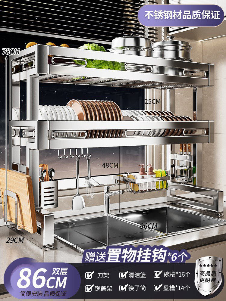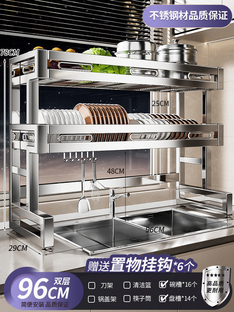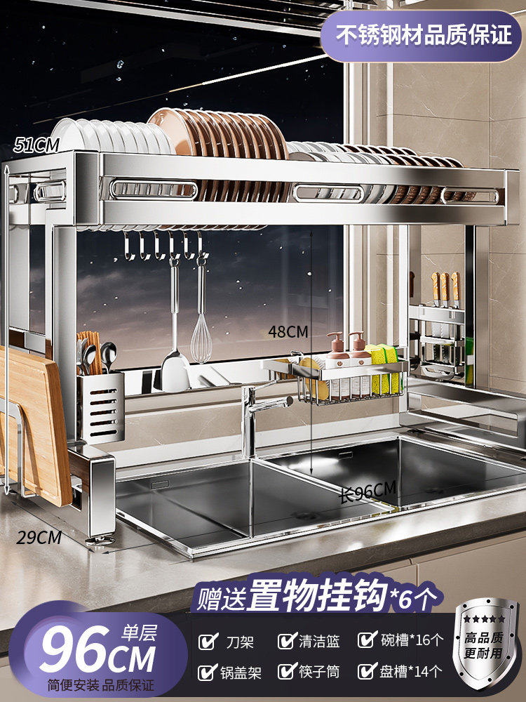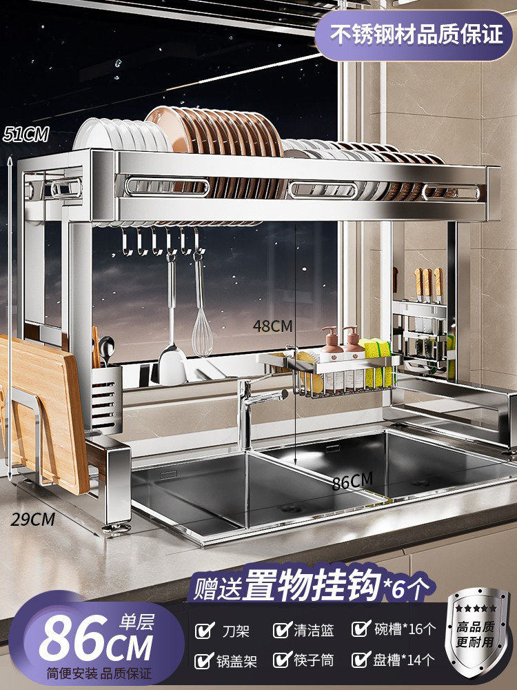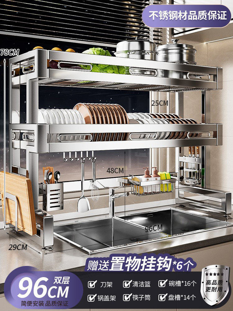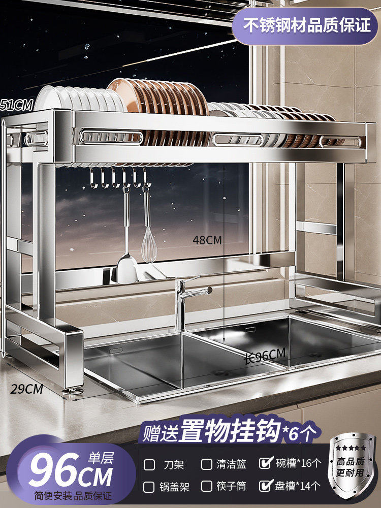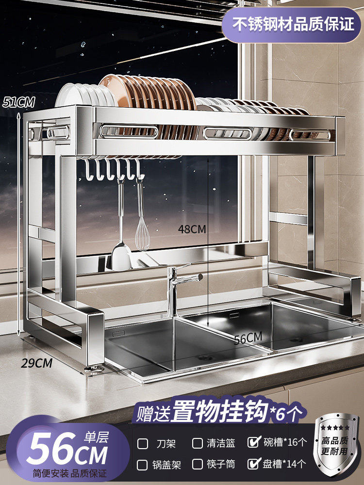 HomeProducts德国厨房304不锈钢水槽置物架多功能碗碟收纳水池上放碗盘沥水架