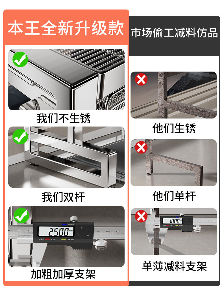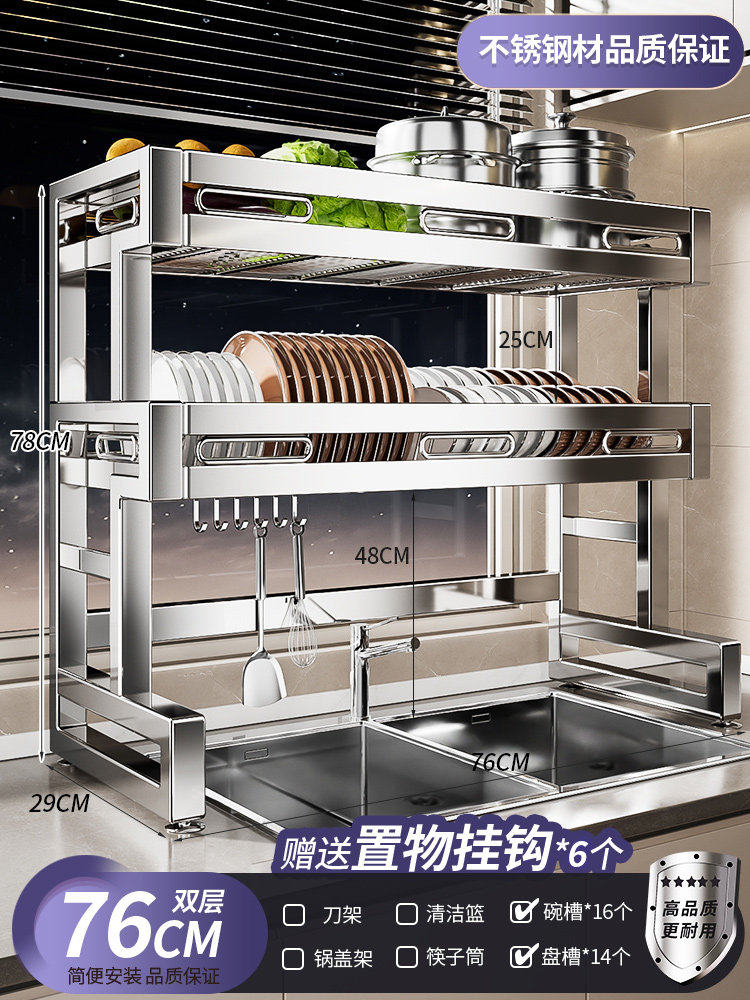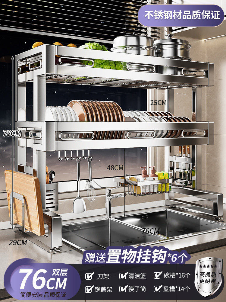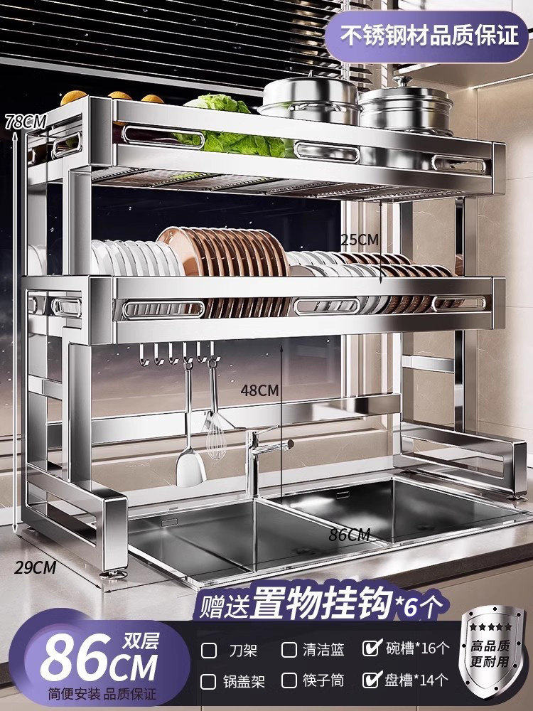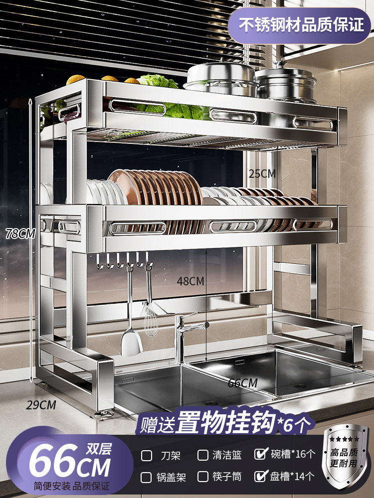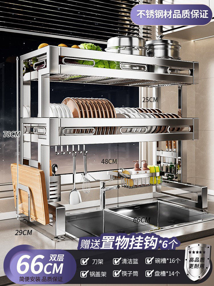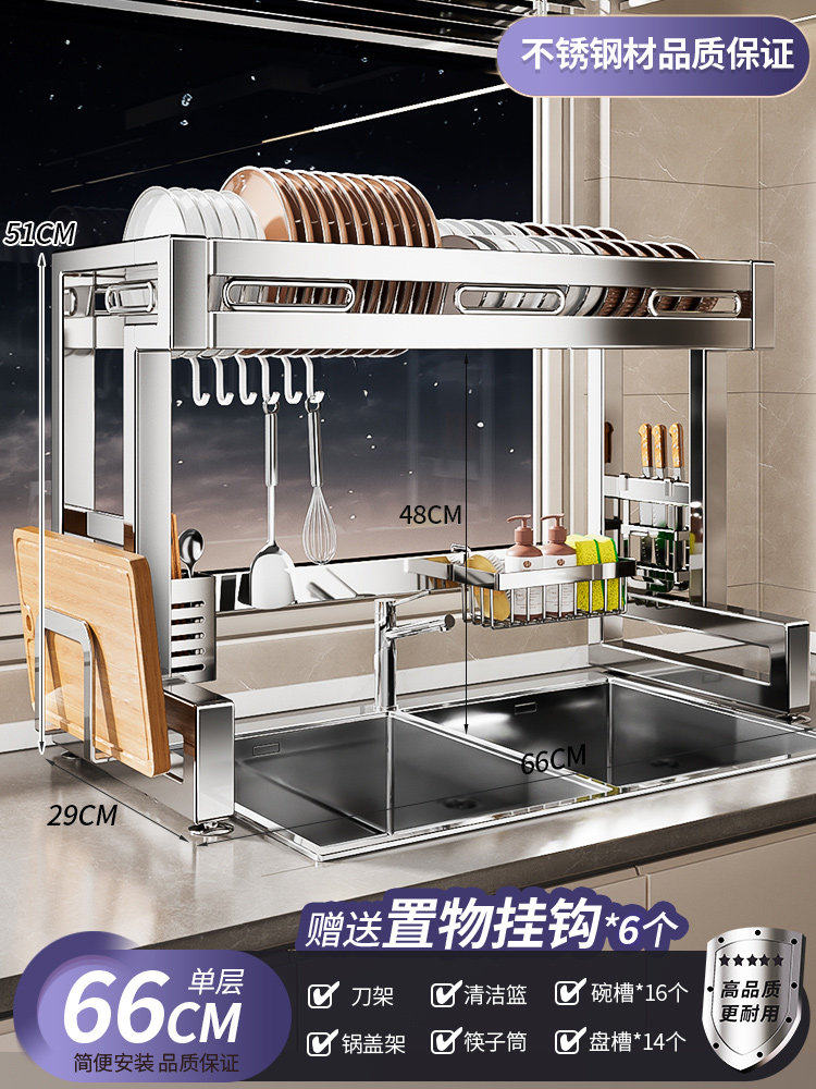 HomeProducts德国厨房304不锈钢水槽置物架多功能碗碟收纳水池上放碗盘沥水架