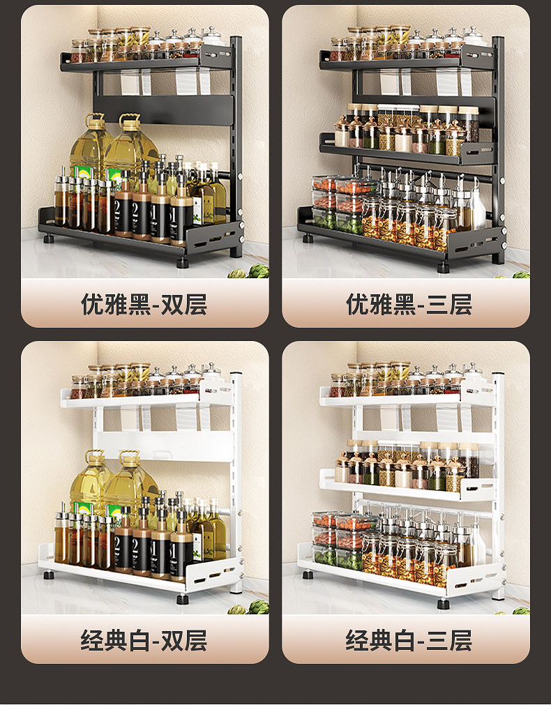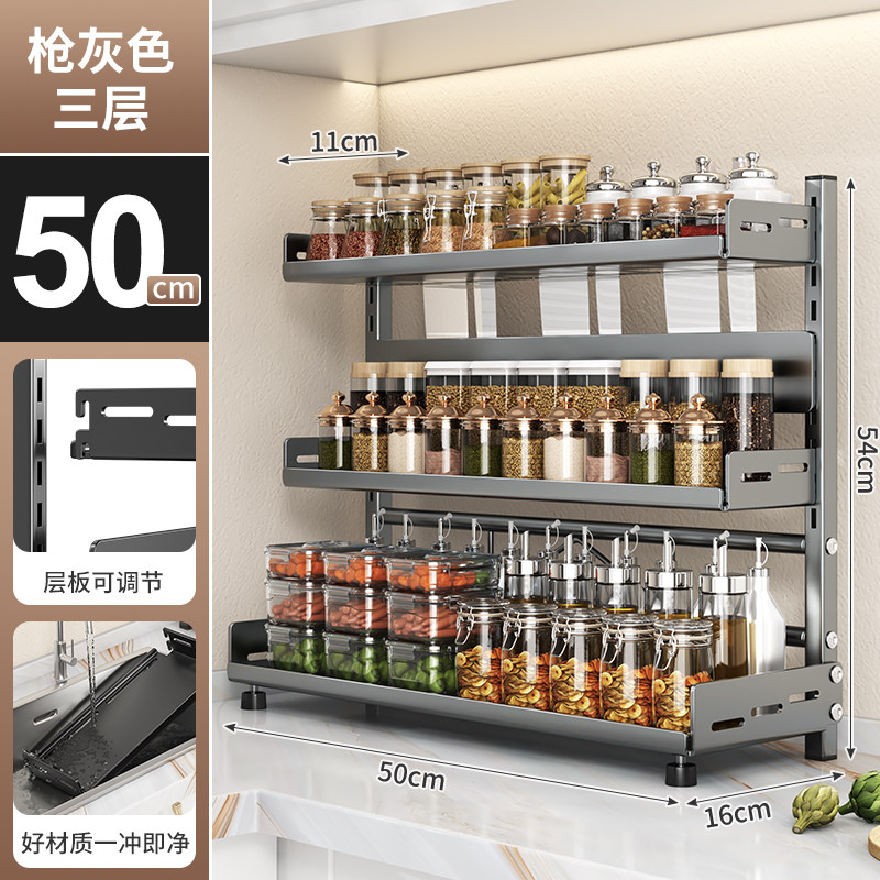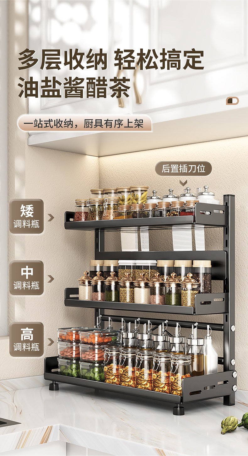 可调节高度台面厨房置物架调味调料刀架多功能厨具用品落地收纳架