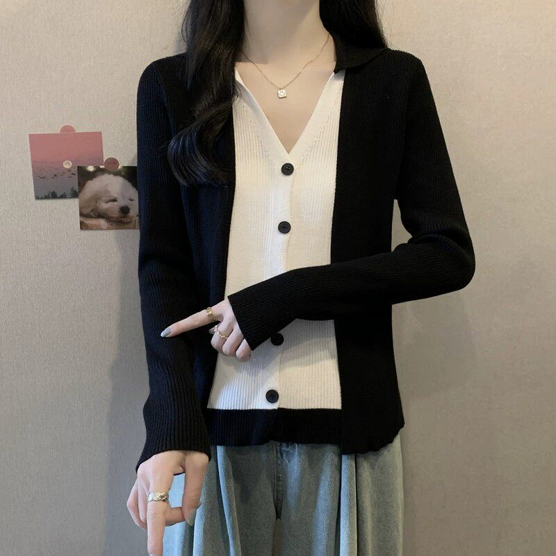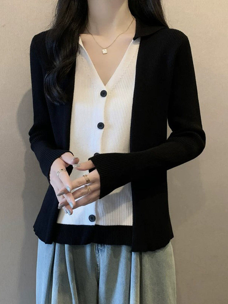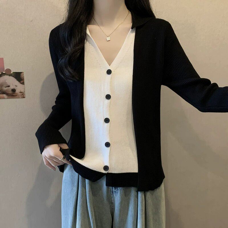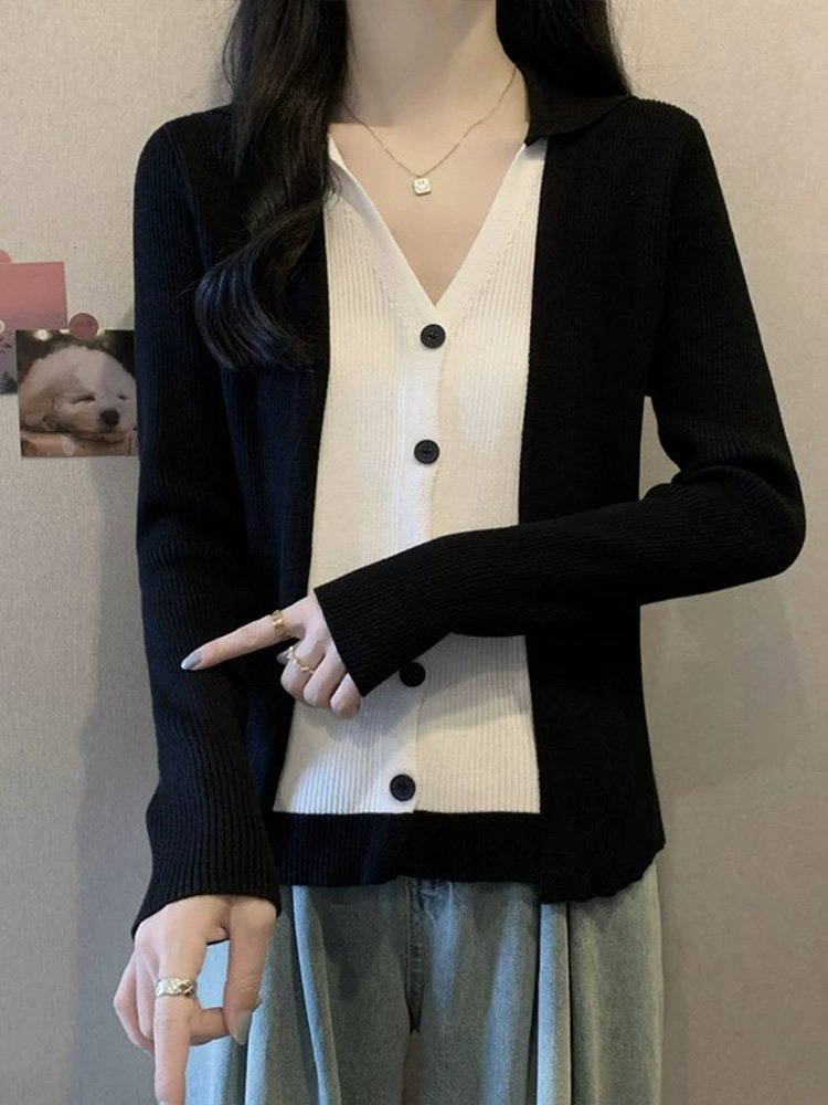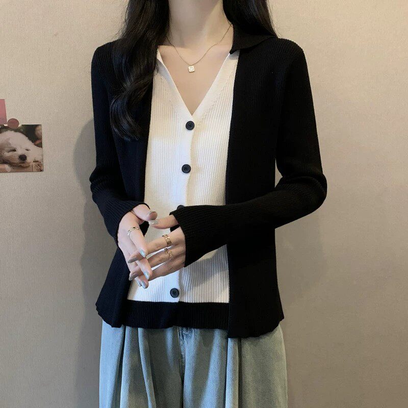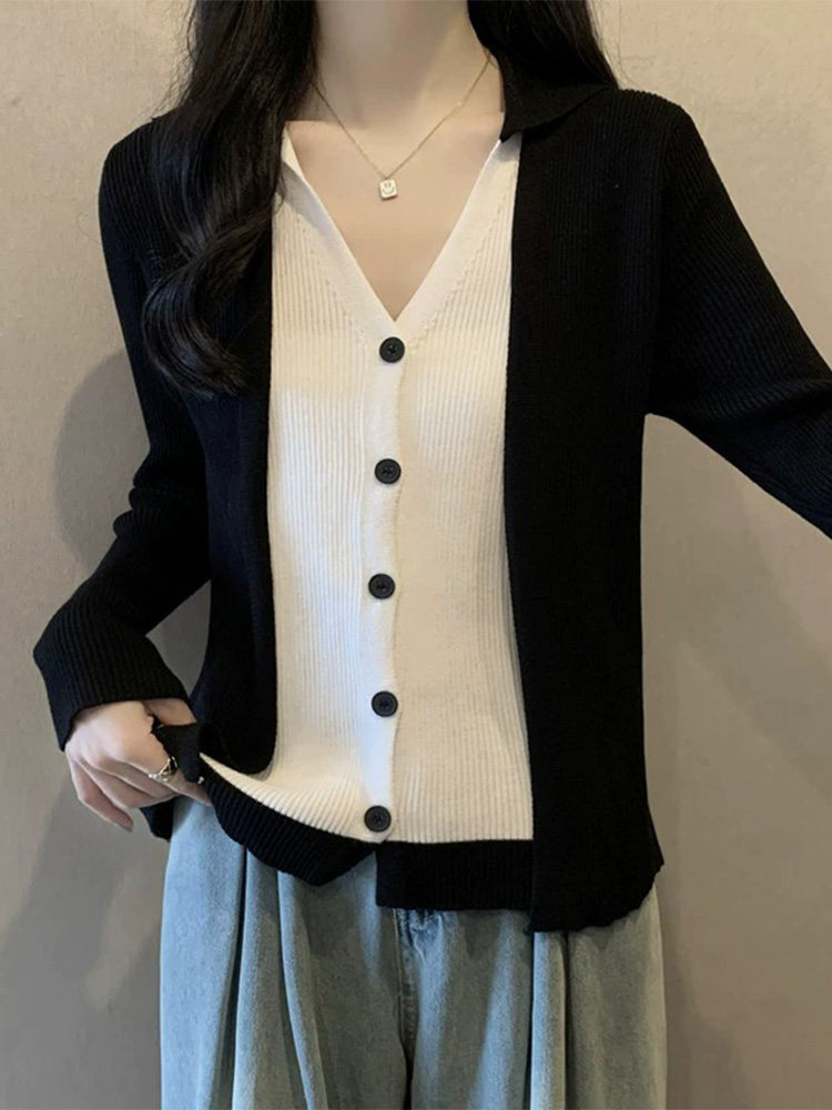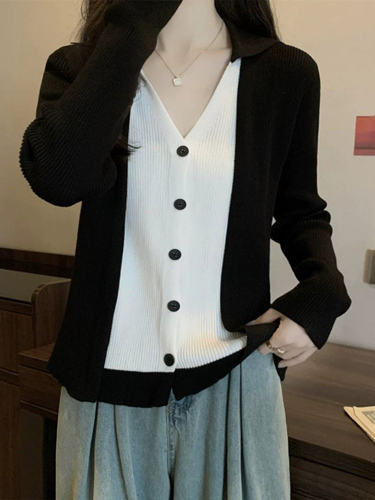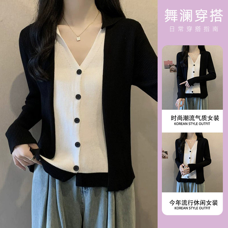 假两件V领针织开衫外套女春季2025新款独特气质时尚显瘦毛衣上衣