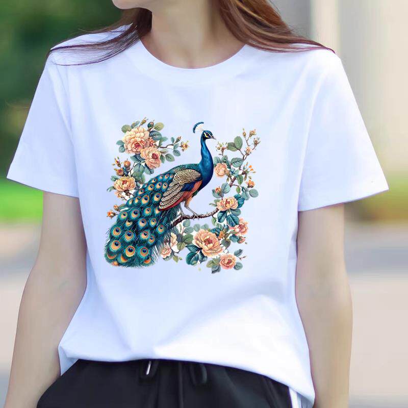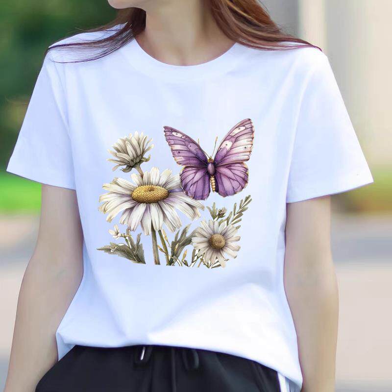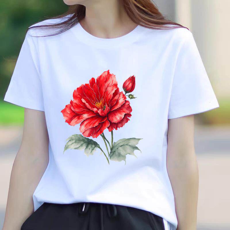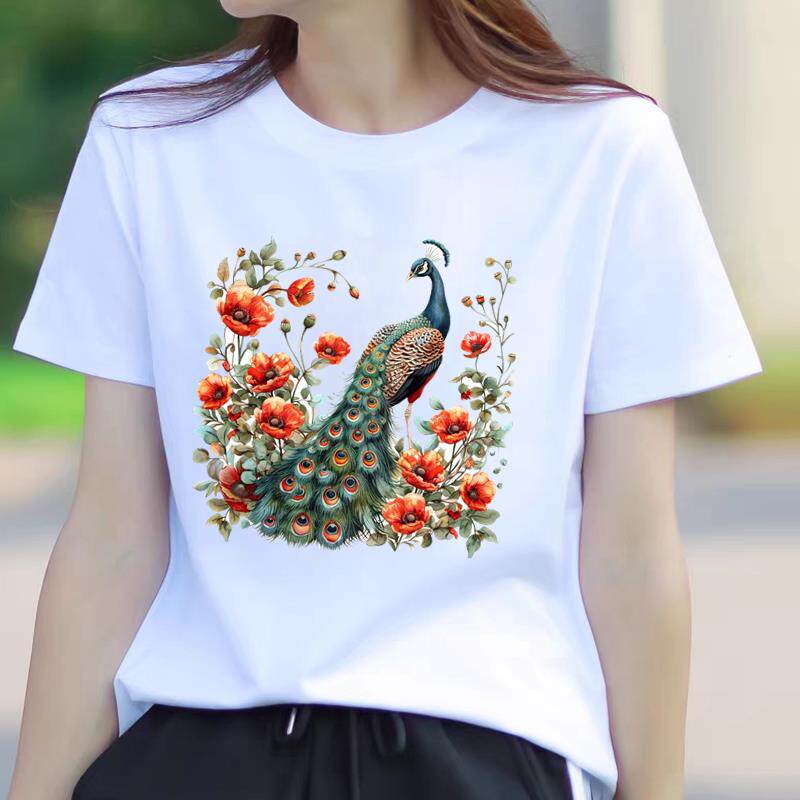 洋气流行网红爆款女士时尚通勤休闲印花ins韩版圆领打底衫短袖T恤