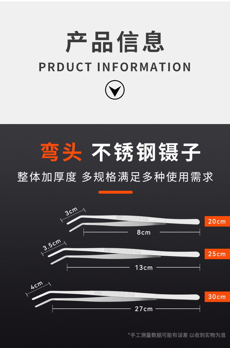 镊子不锈钢园艺长夹子大镊子取物加长鱼缸喂龟养花多肉专用下水道