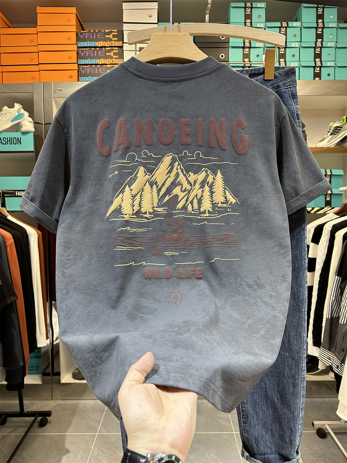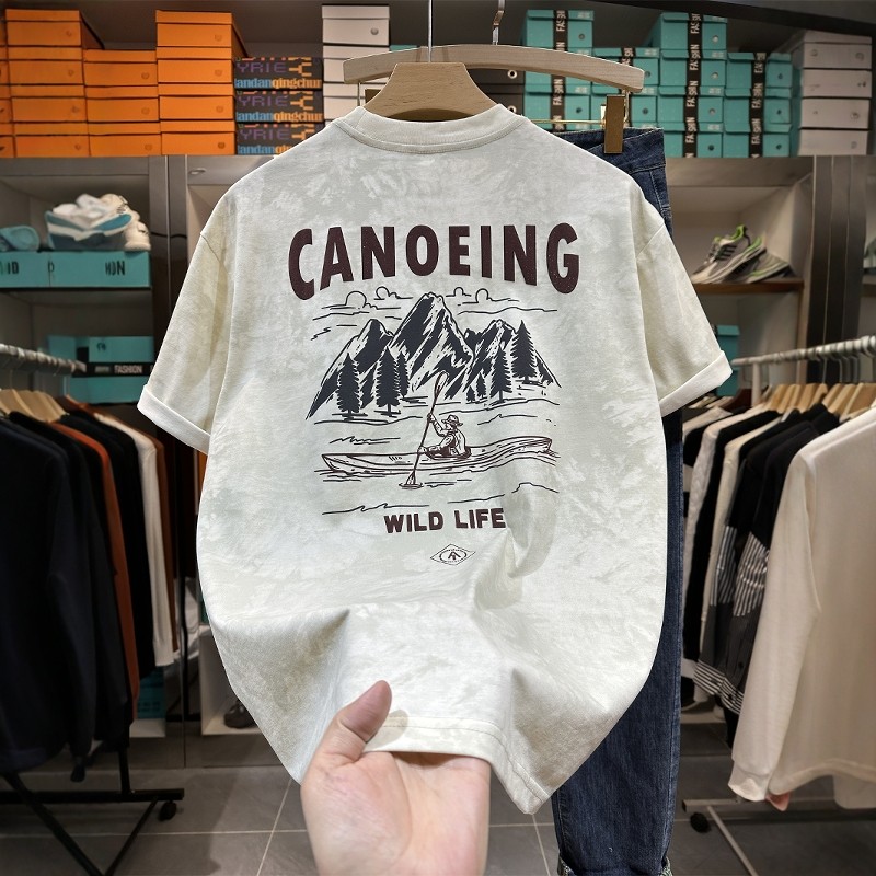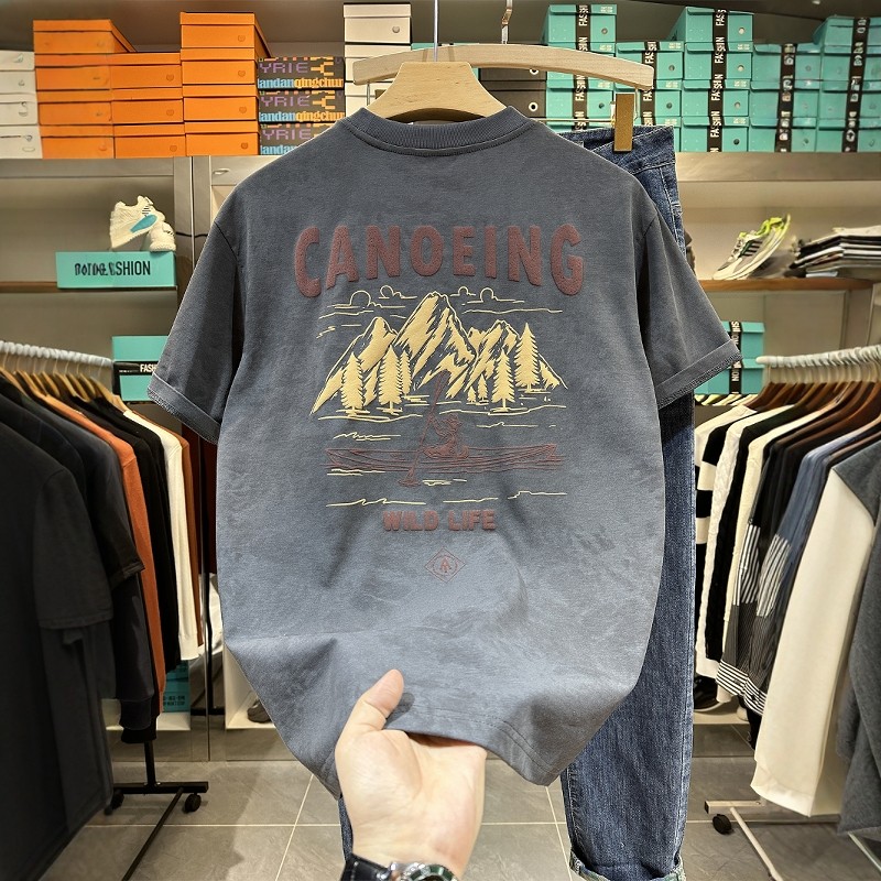 夏季潮牌印花短袖T恤衫2026新款水洗复古做旧体恤吸汗男士上衣服