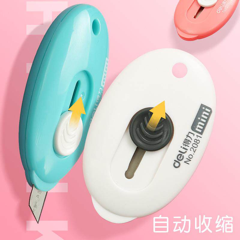 得力美工刀小号拆快递小刀文具便携伸缩安全壁纸刀迷你随身学生刀