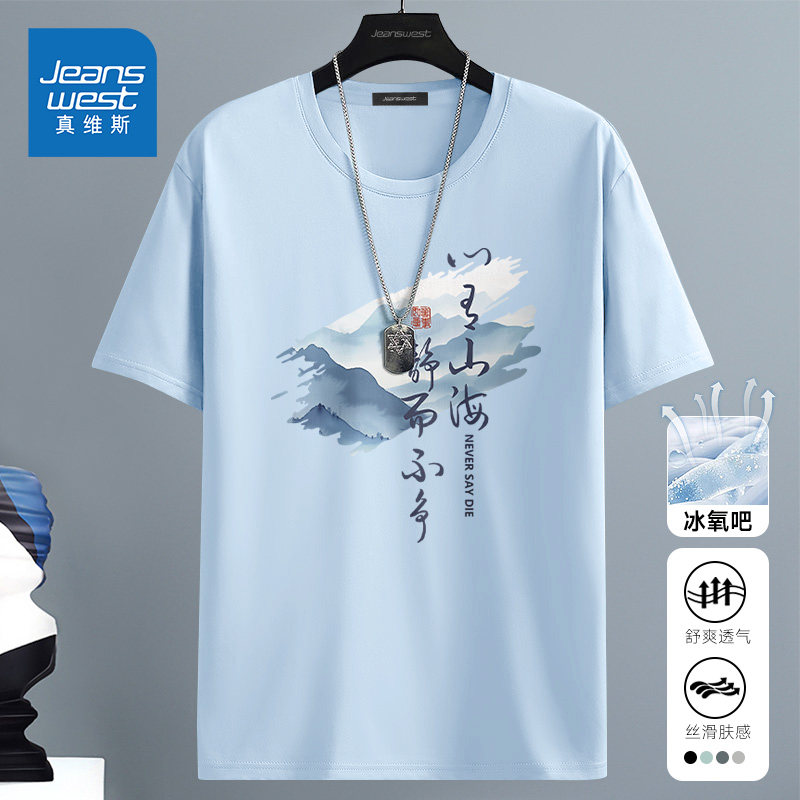 【220G重磅纯棉】冰川蓝(笔墨蓝山) / 165/S