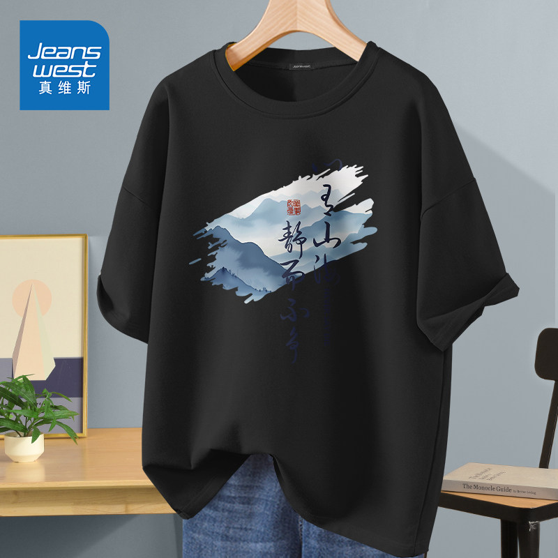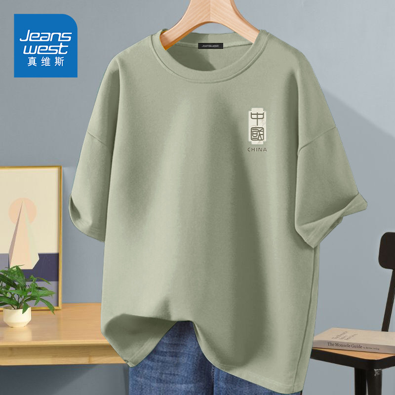真维斯纯棉短袖t恤男2026新款夏季青少年国风设计感宽松半袖体恤