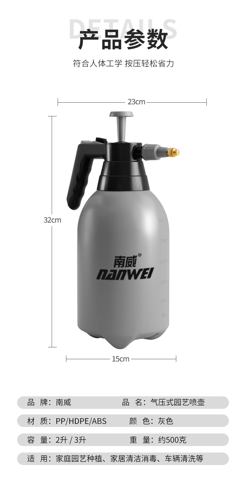 南威喷壶气压式喷水壶浇花家用清洁消毒洗车专用高压力细雾喷雾器
