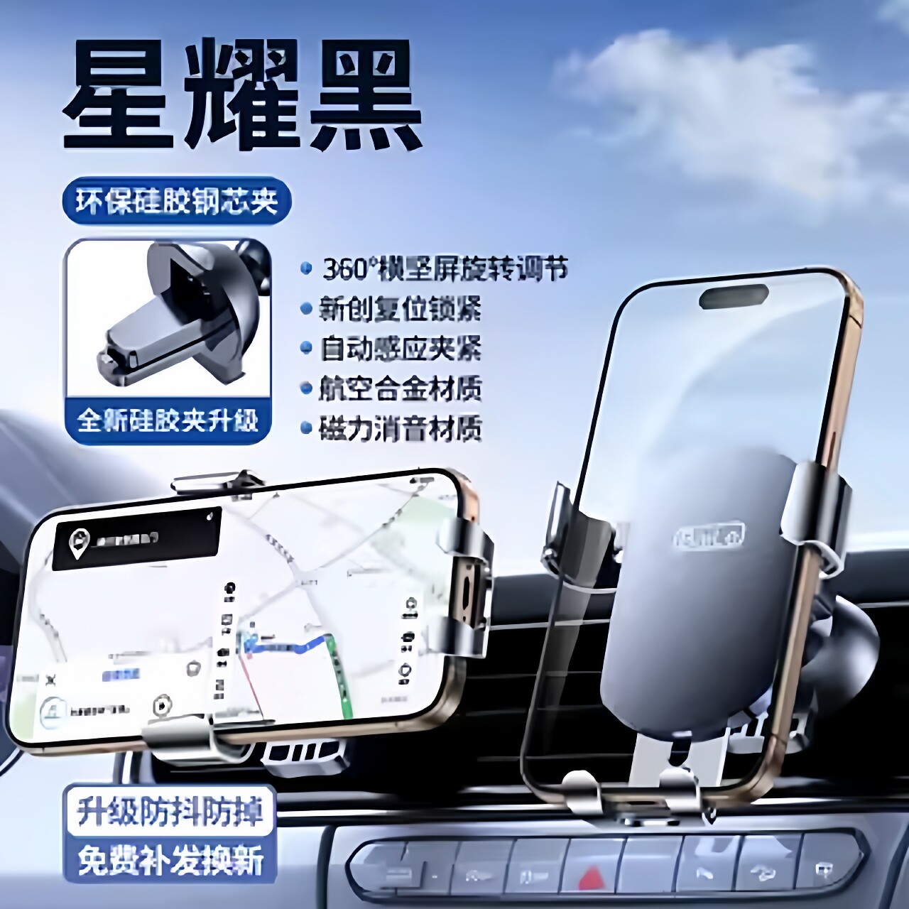 【顶配尾钩星耀黑】★横竖斜风口通用★一放夹紧★用坏换新★