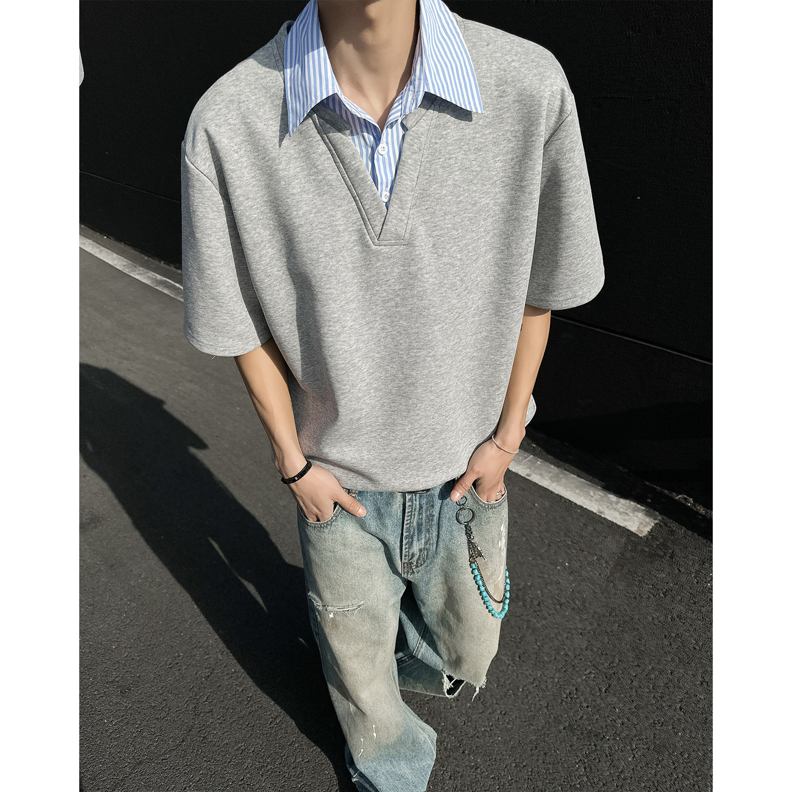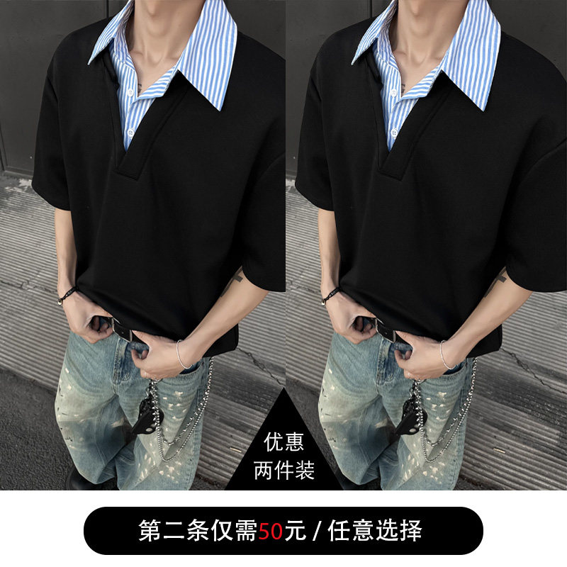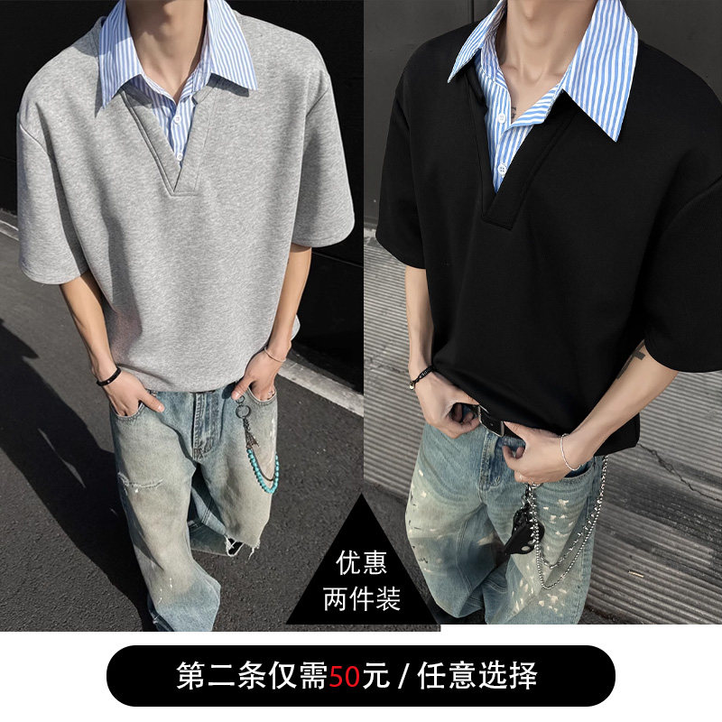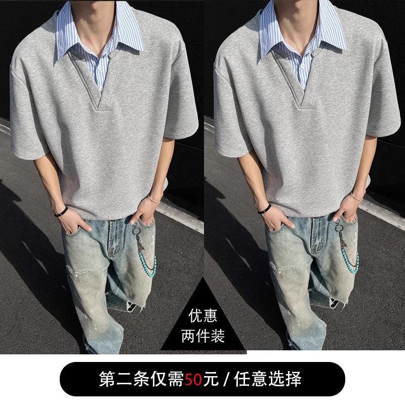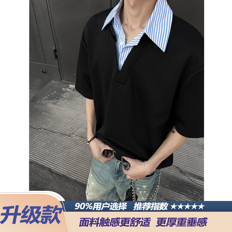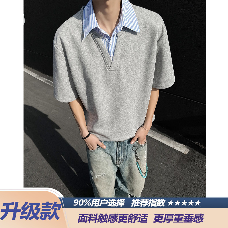 假两件衬衫领短袖T恤男款夏季潮牌高级感polo领痞帅宽松男装半袖