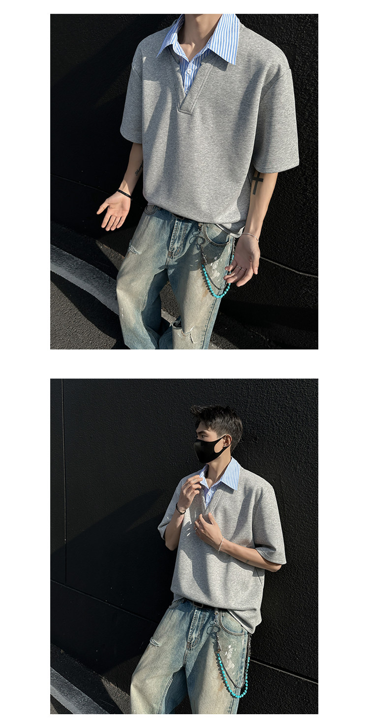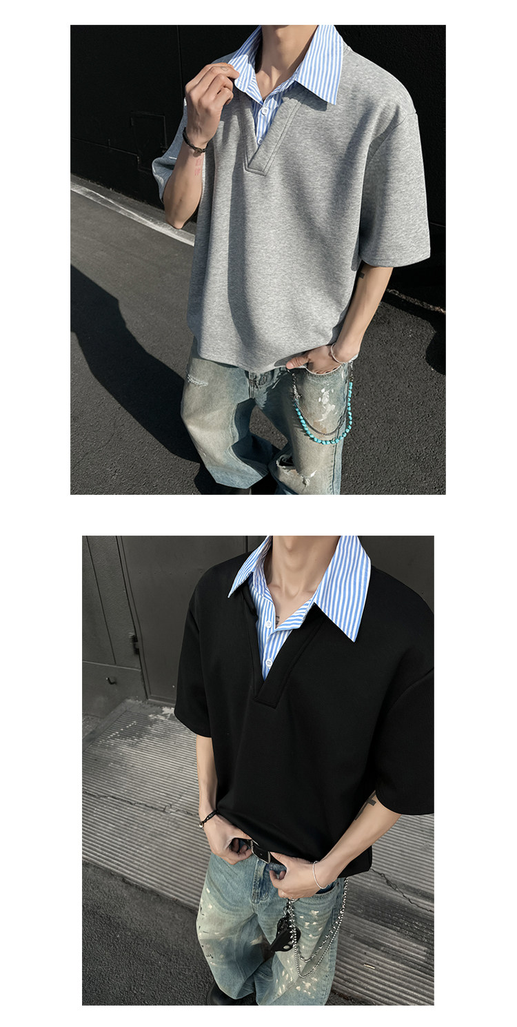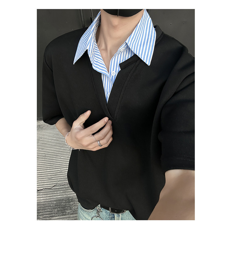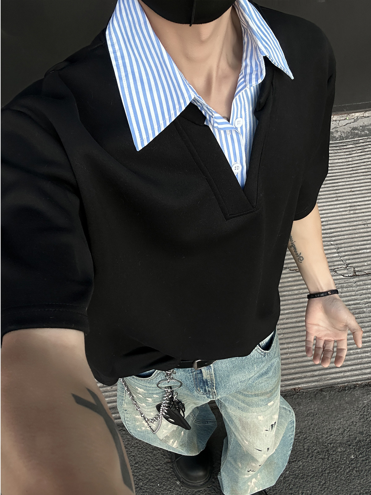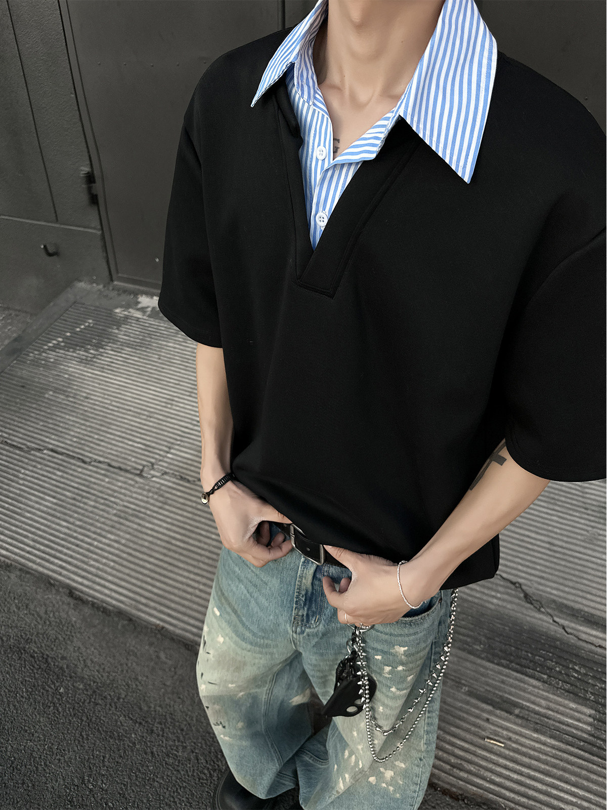 假两件衬衫领短袖T恤男款夏季潮牌高级感polo领痞帅宽松男装半袖