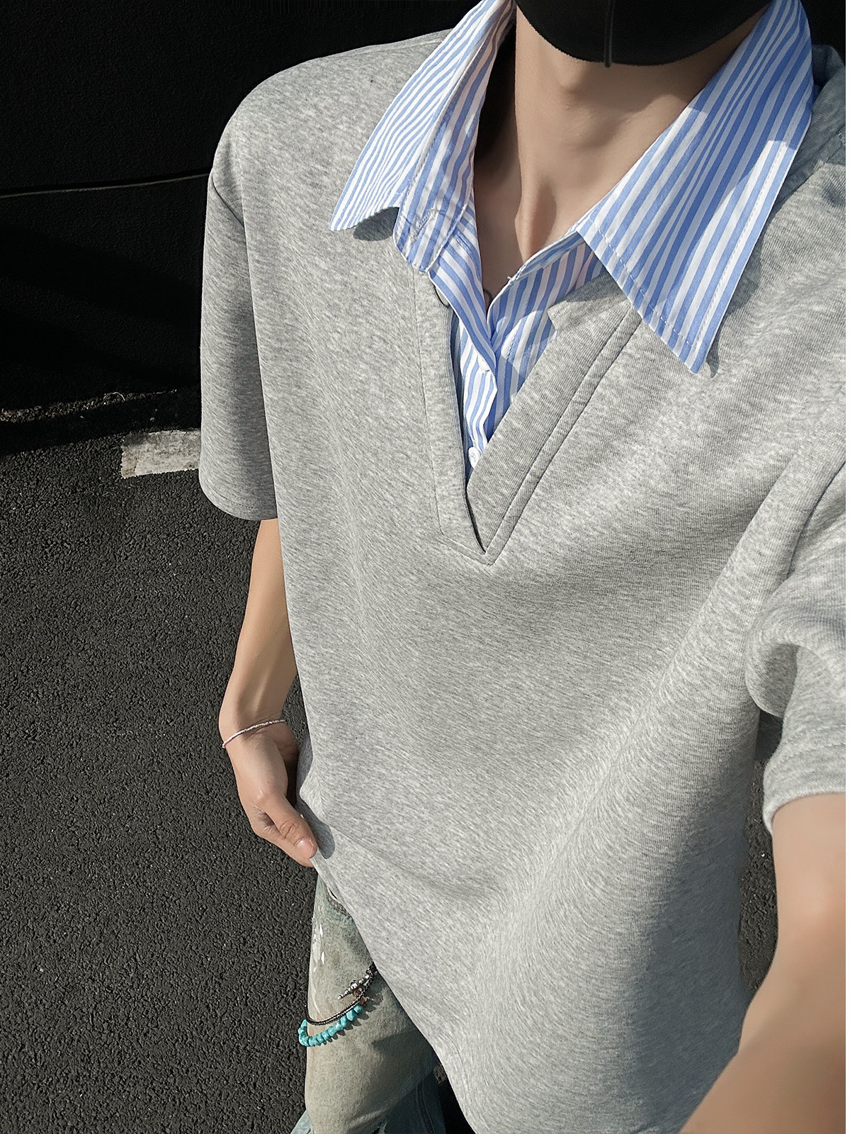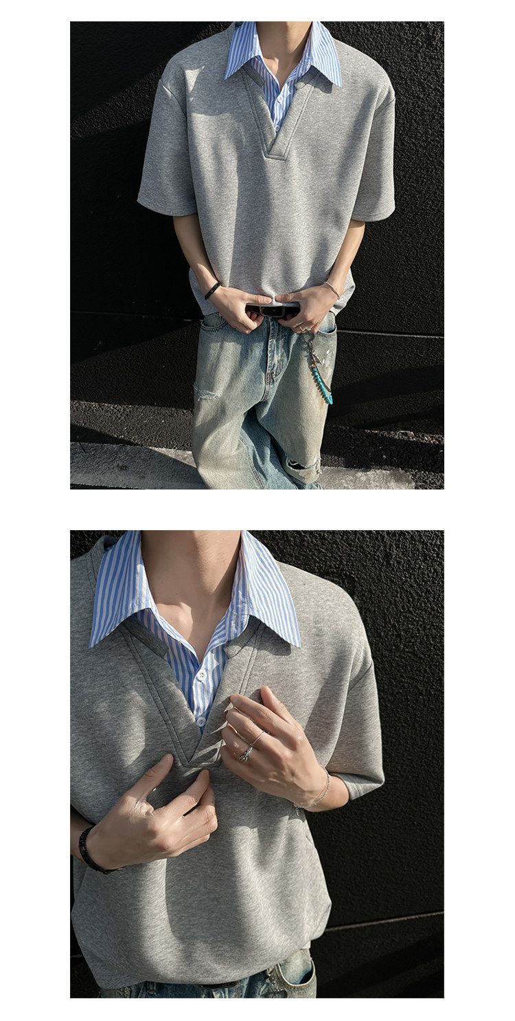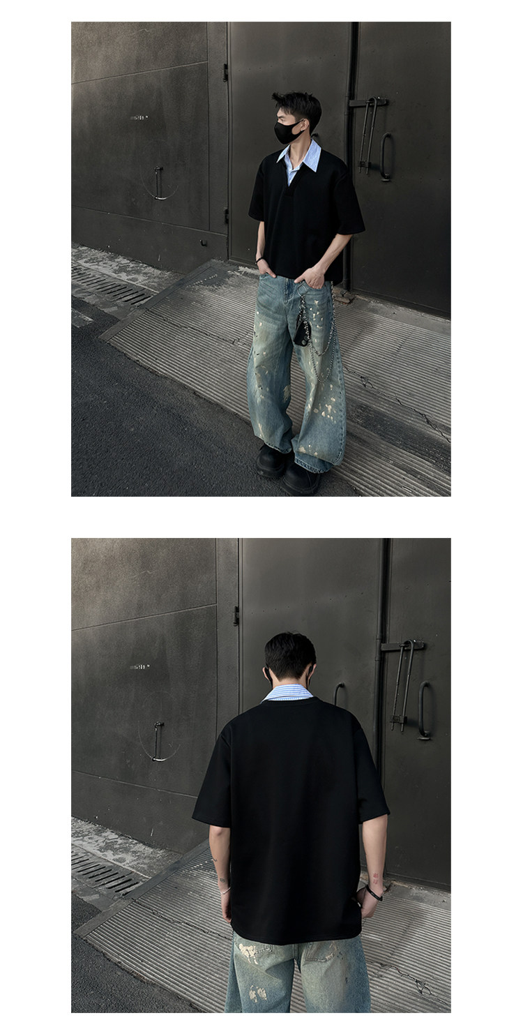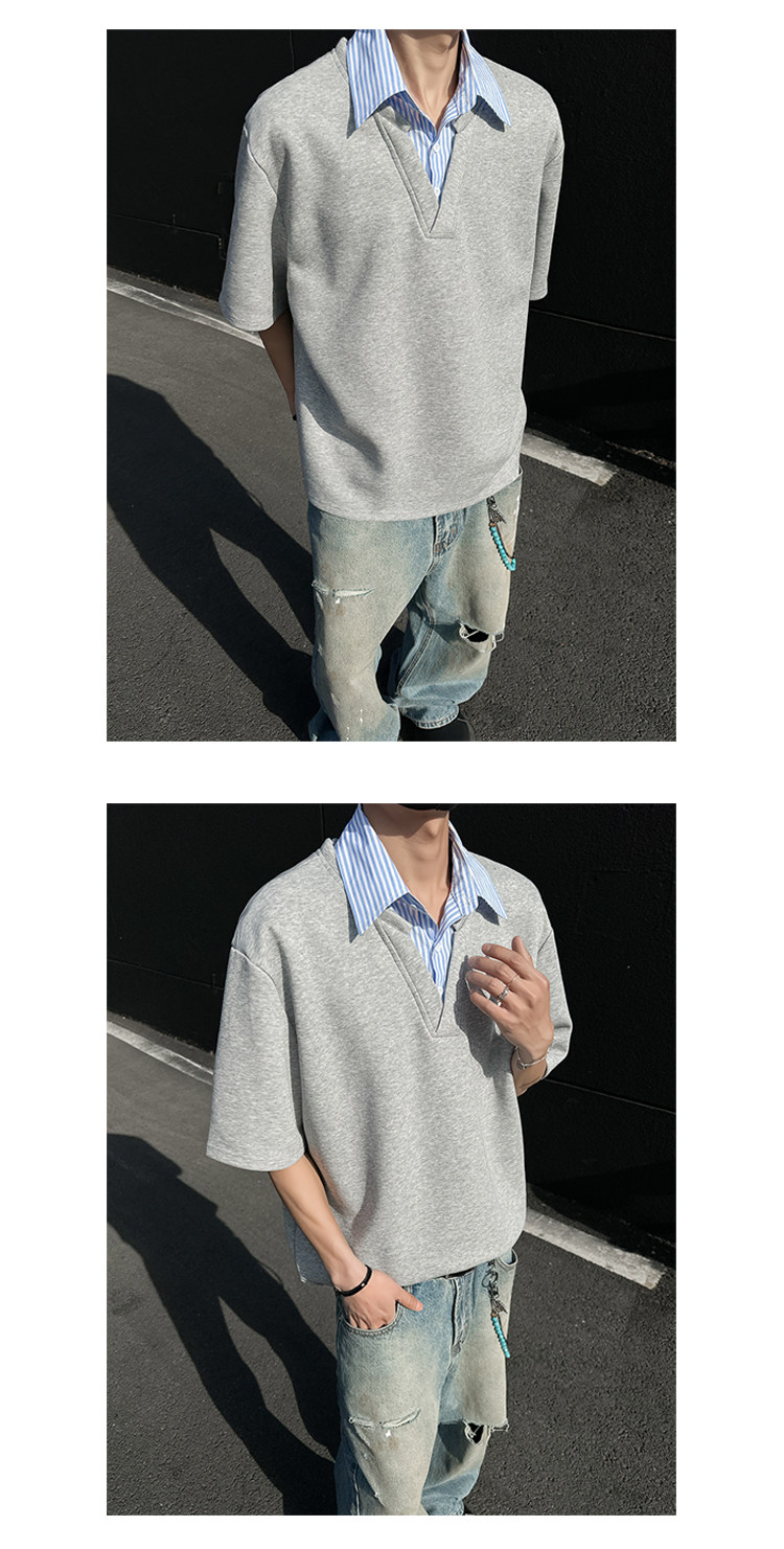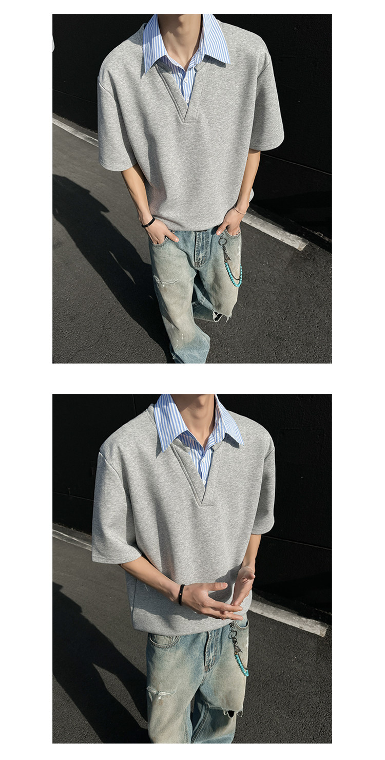 假两件衬衫领短袖T恤男款夏季潮牌高级感polo领痞帅宽松男装半袖