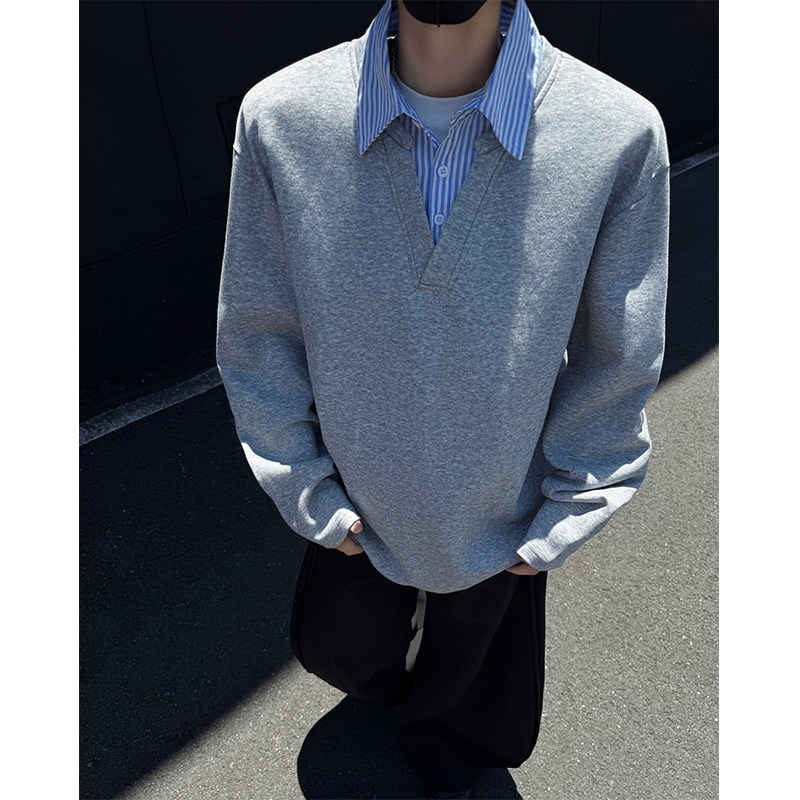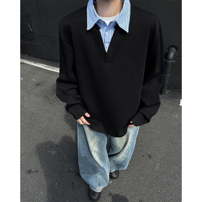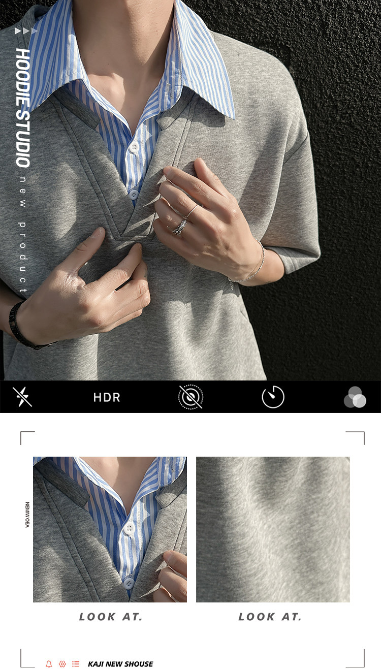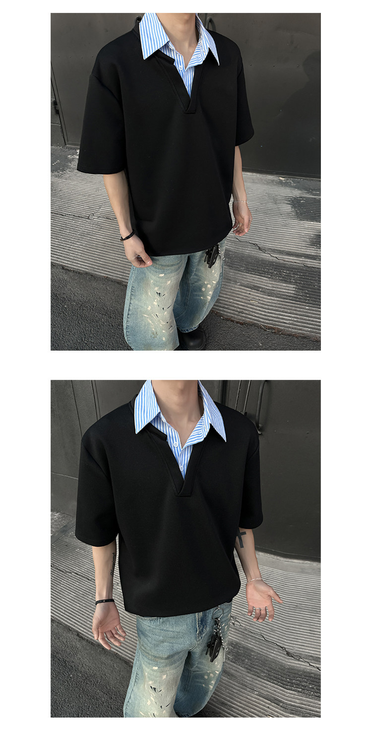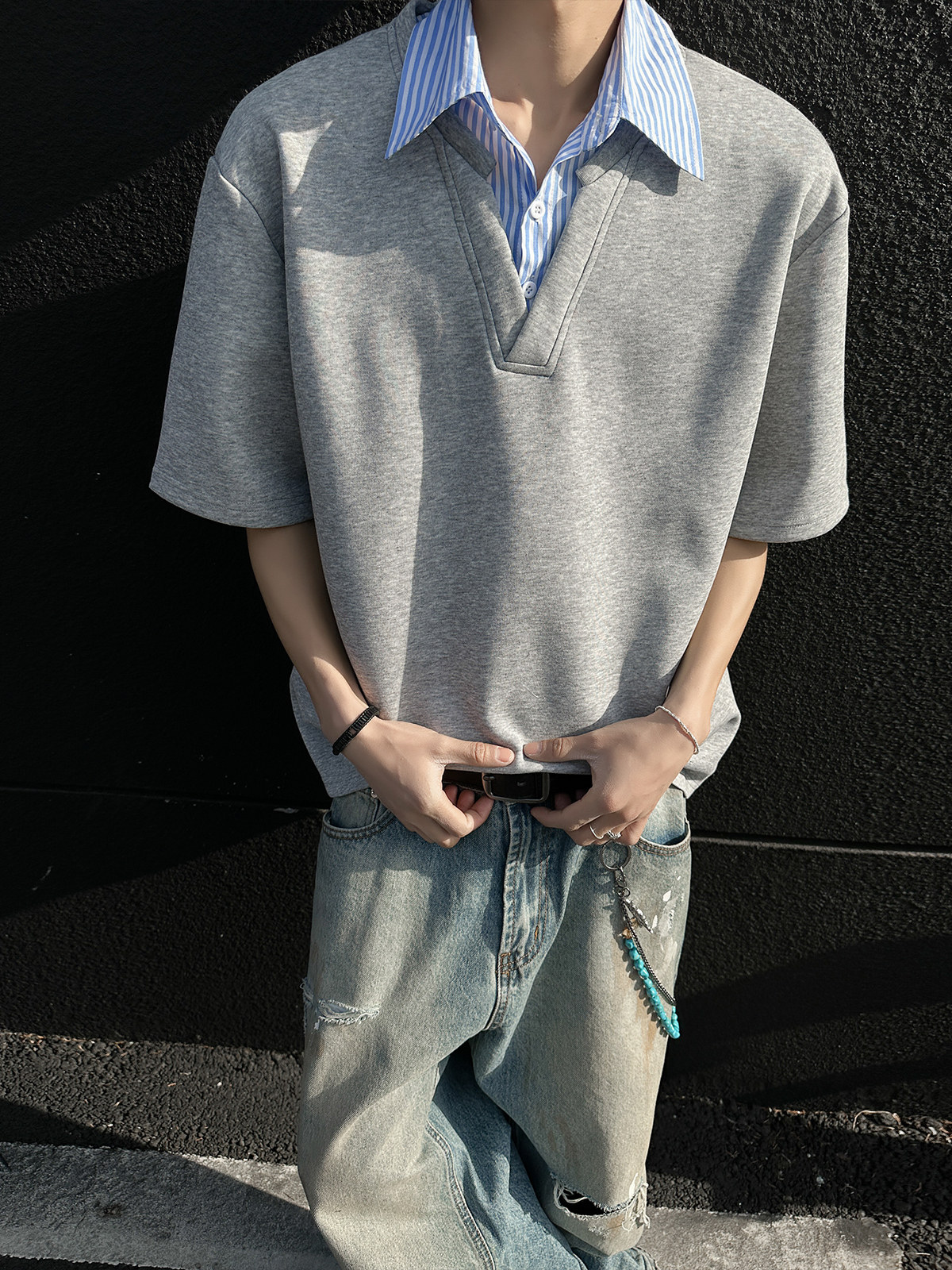 假两件衬衫领短袖T恤男款夏季潮牌高级感polo领痞帅宽松男装半袖
