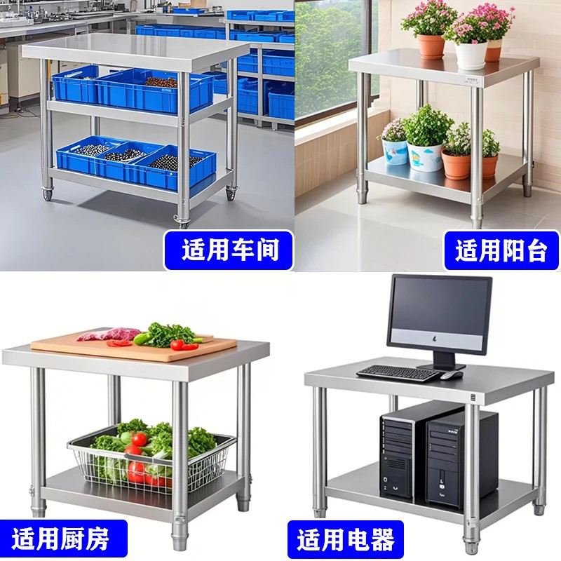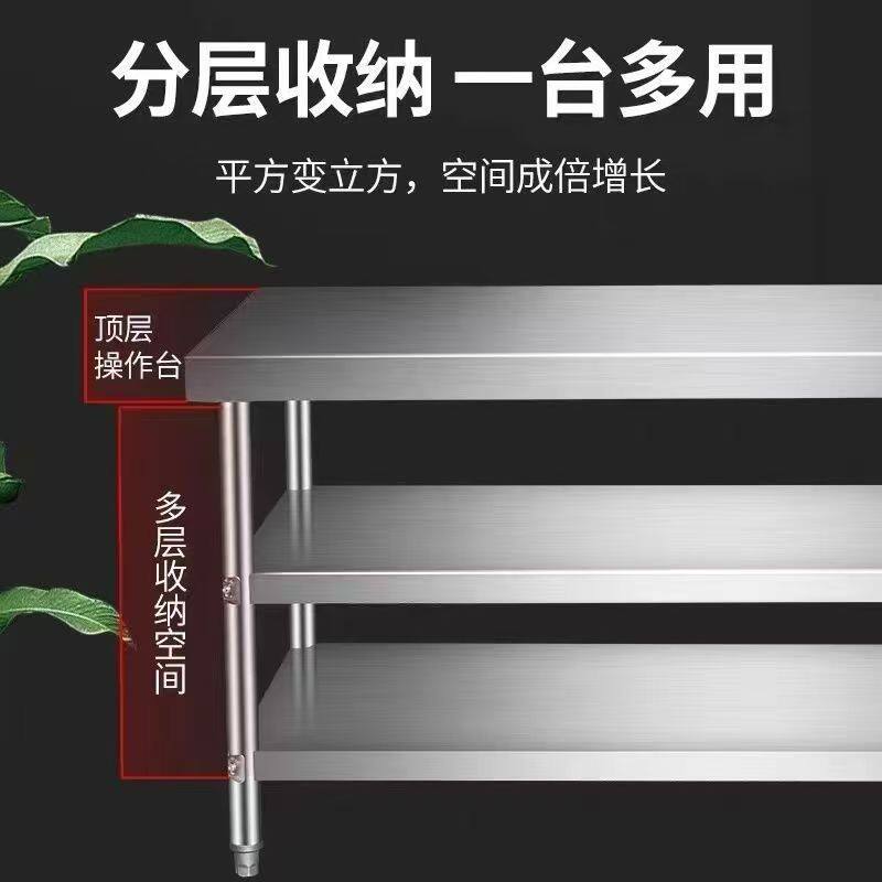 酒店商用厨房不锈钢加厚工作台切菜桌子三层灶台收纳整理家用揉面