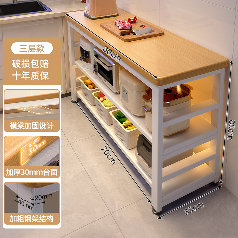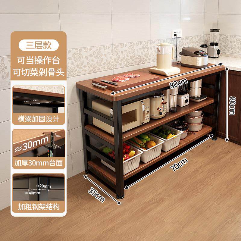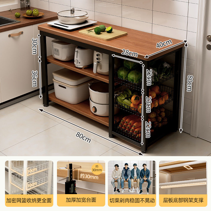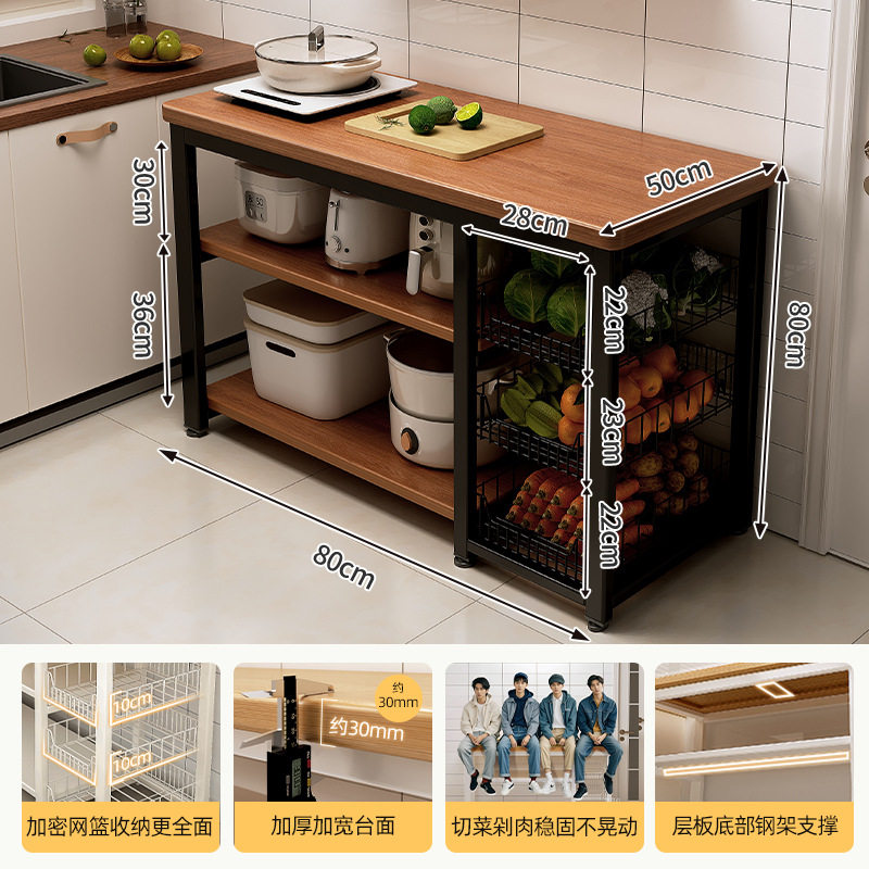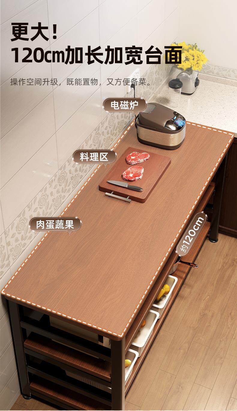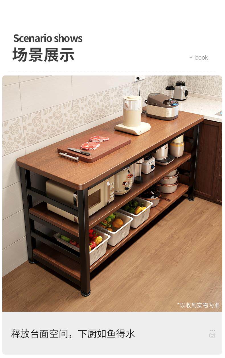 厨房多功能置物架落地切菜桌子工作台微波炉锅具收纳架窄边柜淘