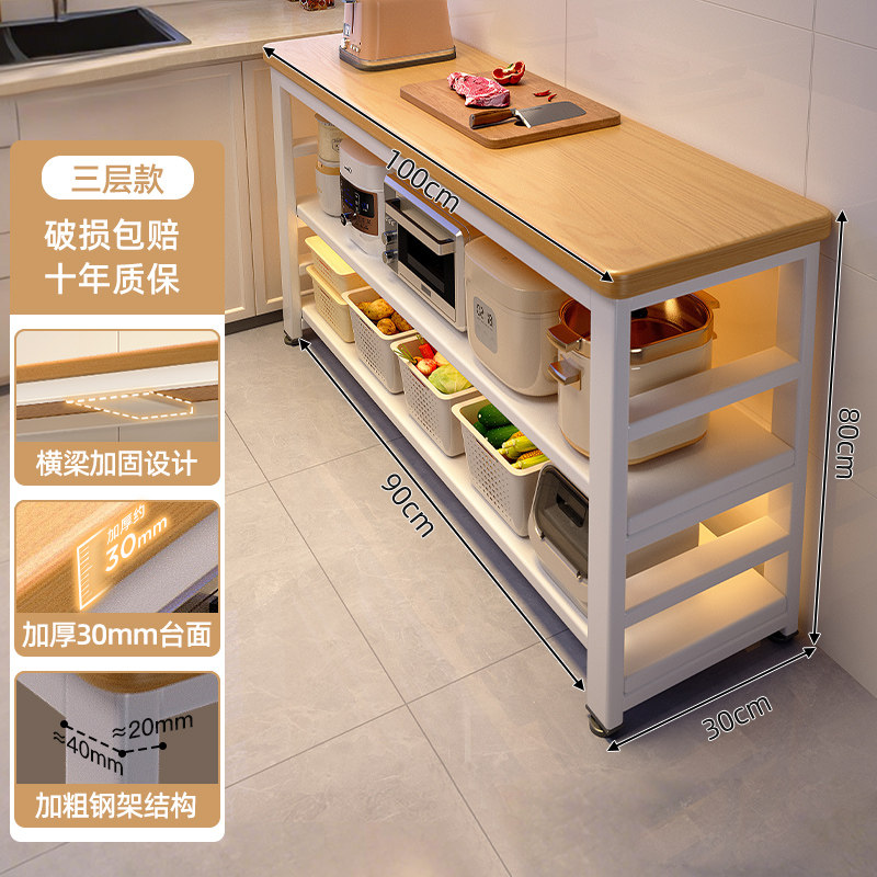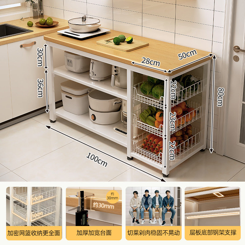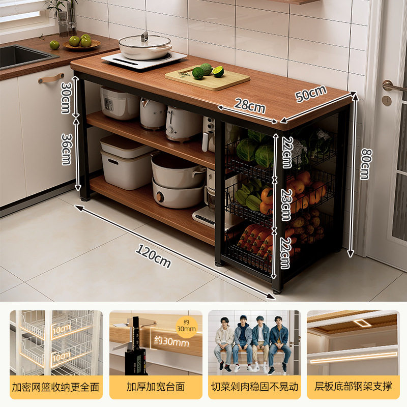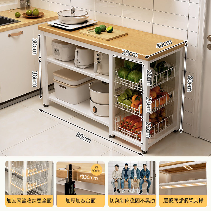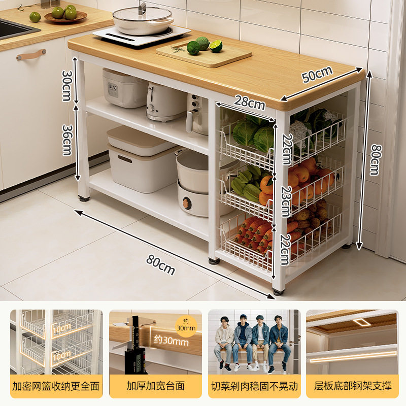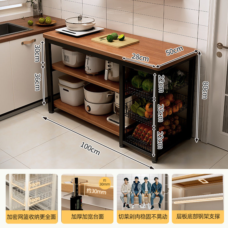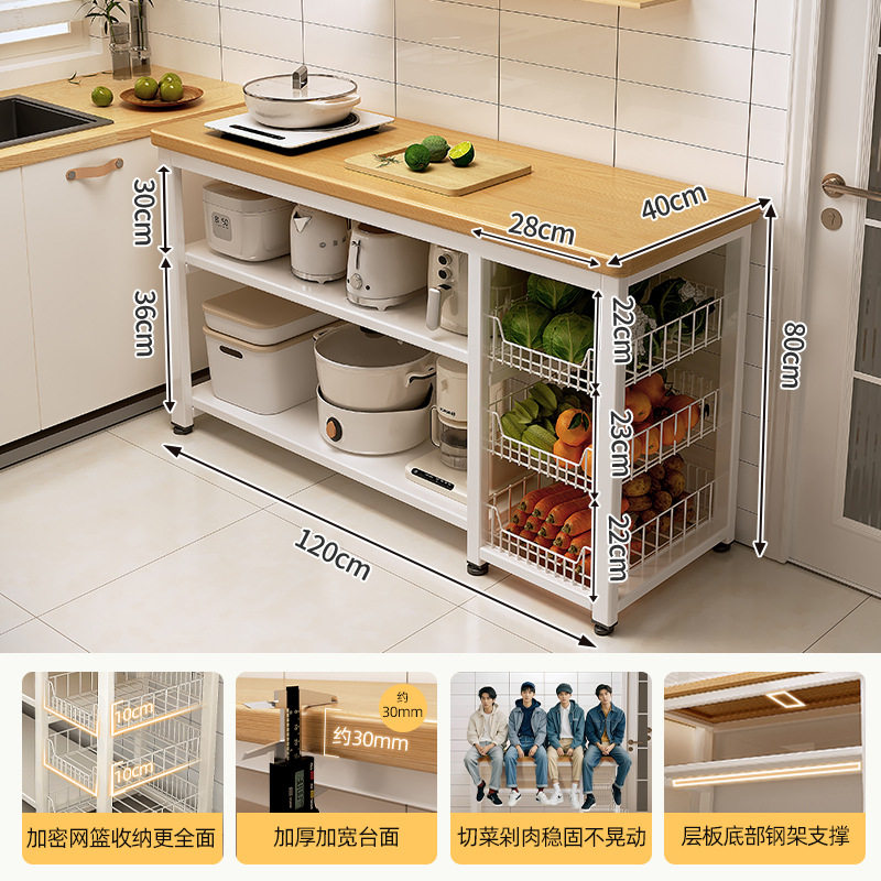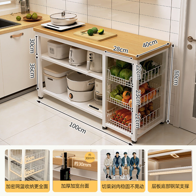 厨房多功能置物架落地切菜桌子工作台微波炉锅具收纳架窄边柜淘