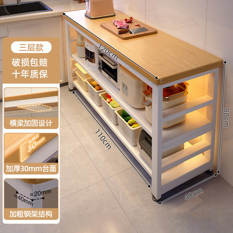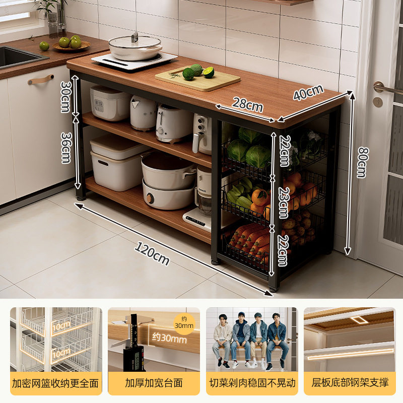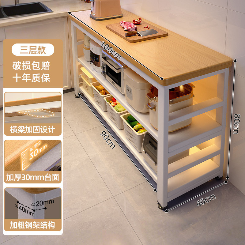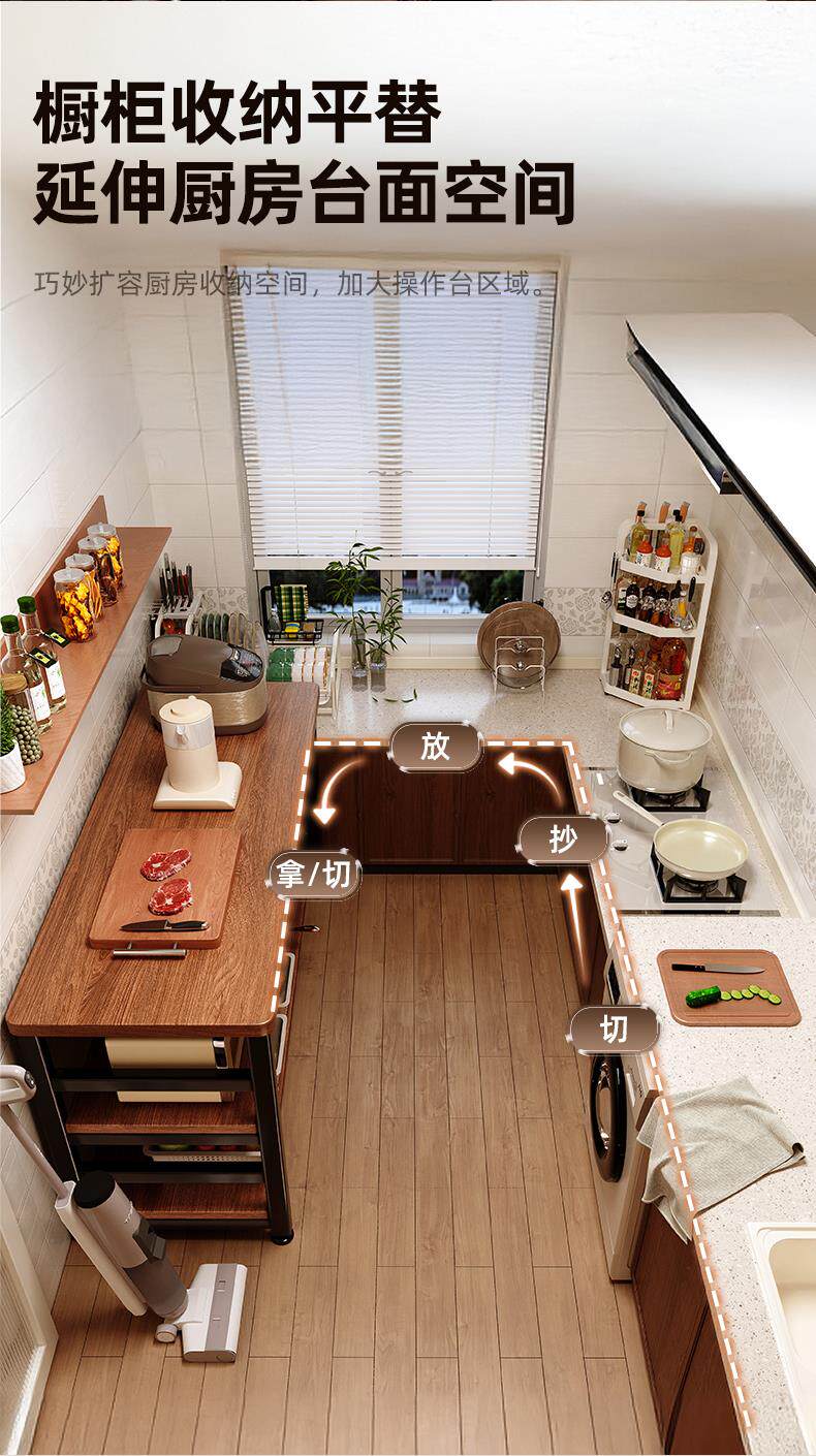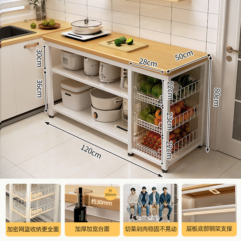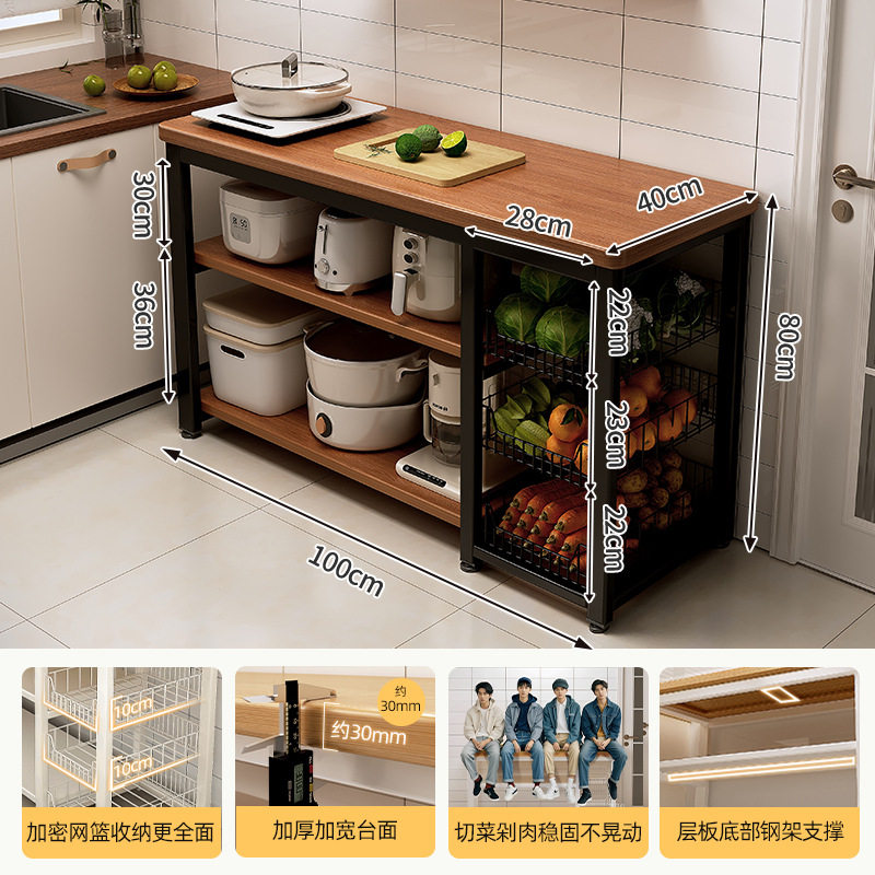 厨房多功能置物架落地切菜桌子工作台微波炉锅具收纳架窄边柜淘