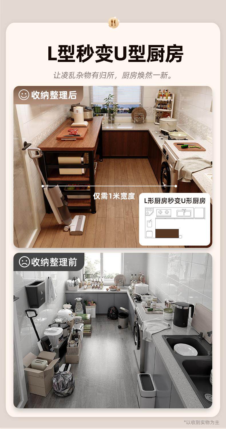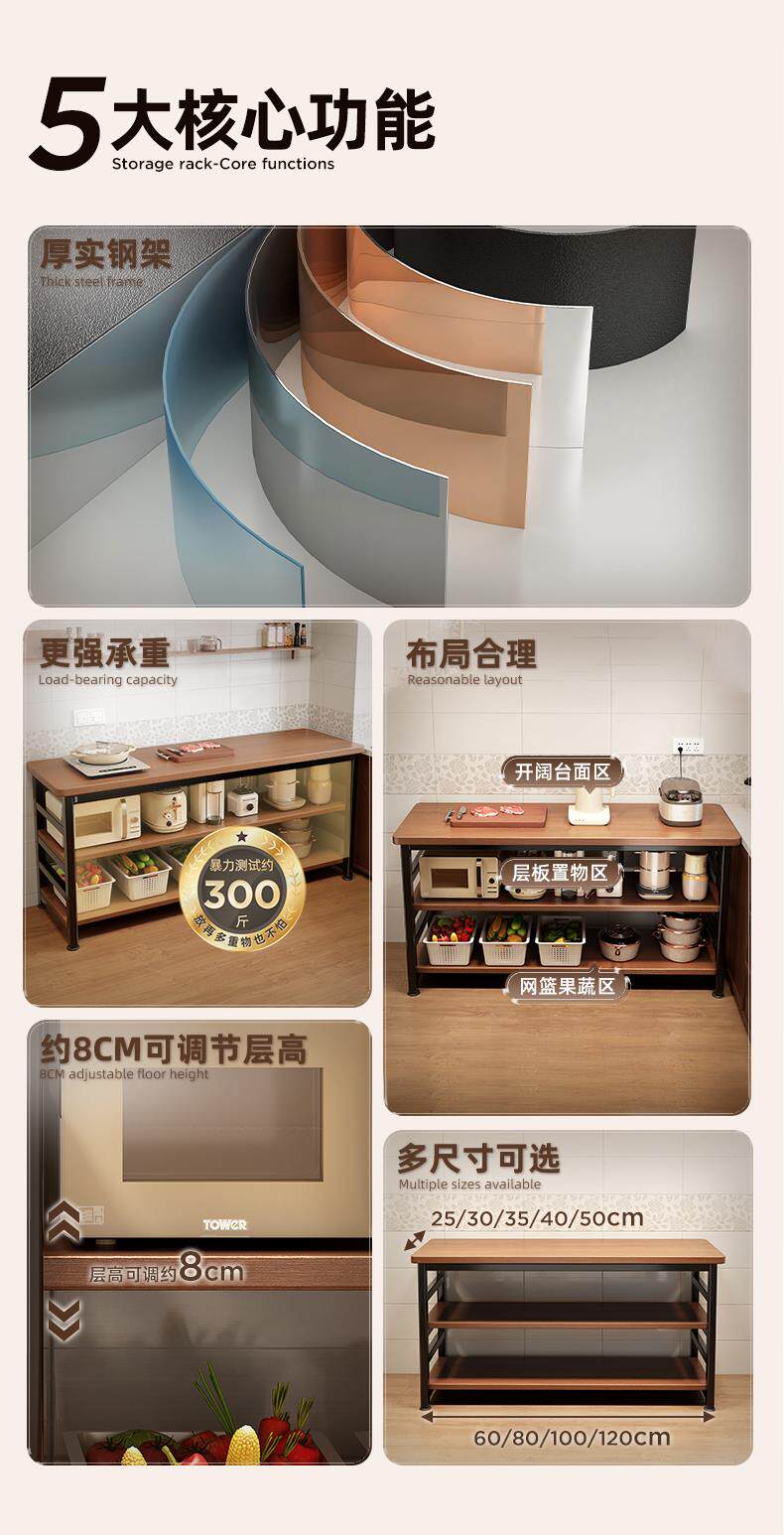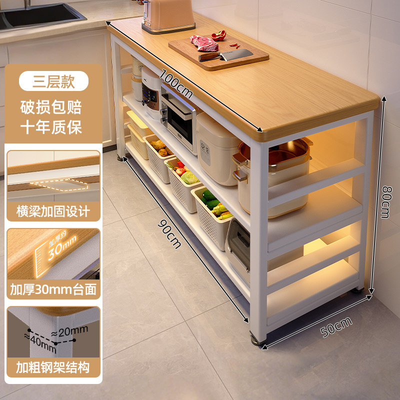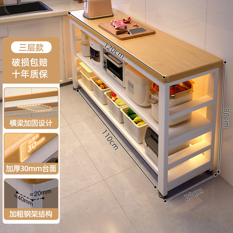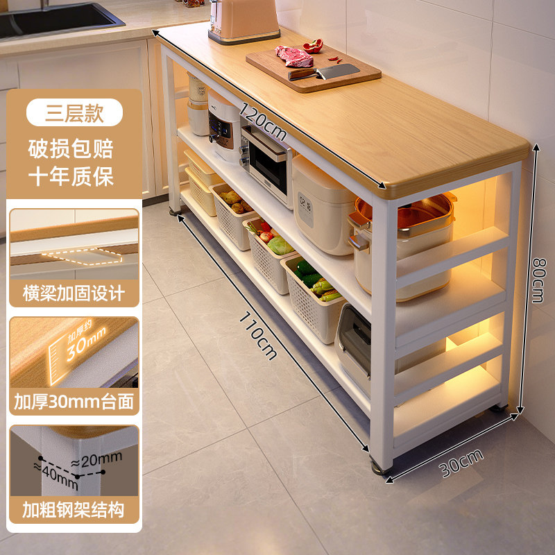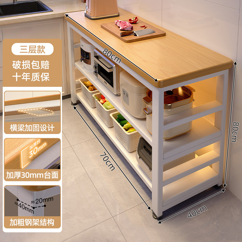 厨房多功能置物架落地切菜桌子工作台微波炉锅具收纳架窄边柜淘