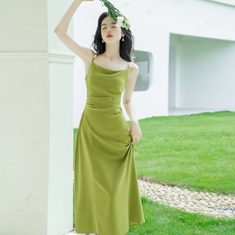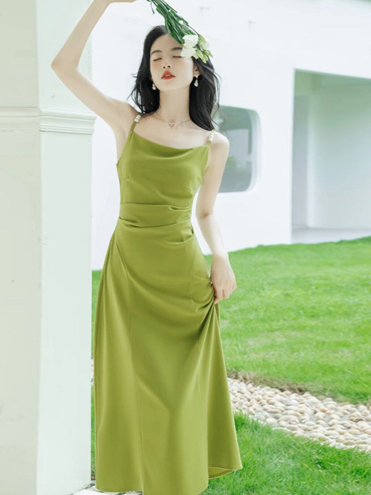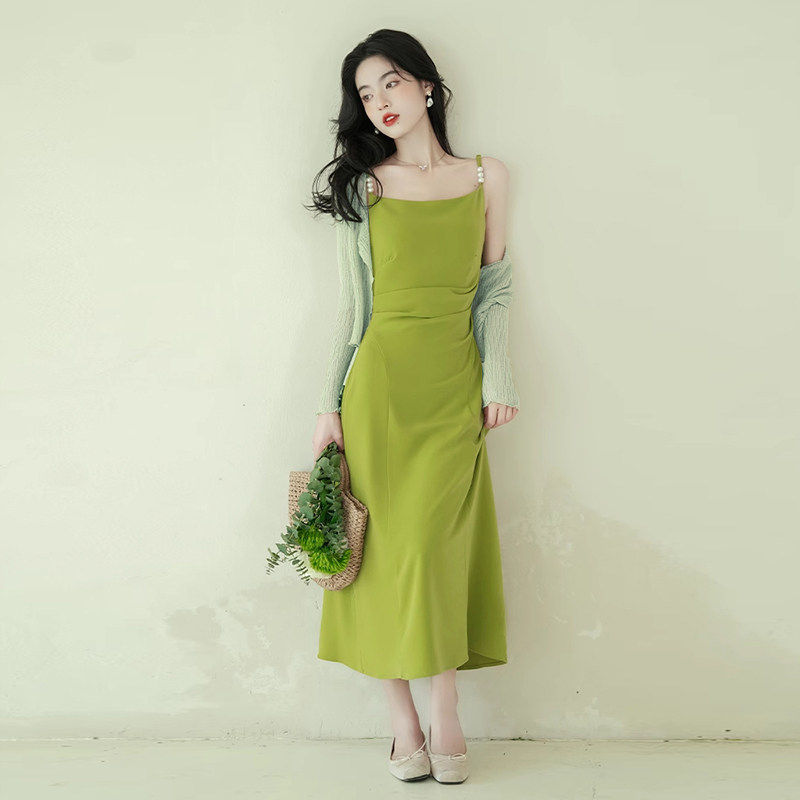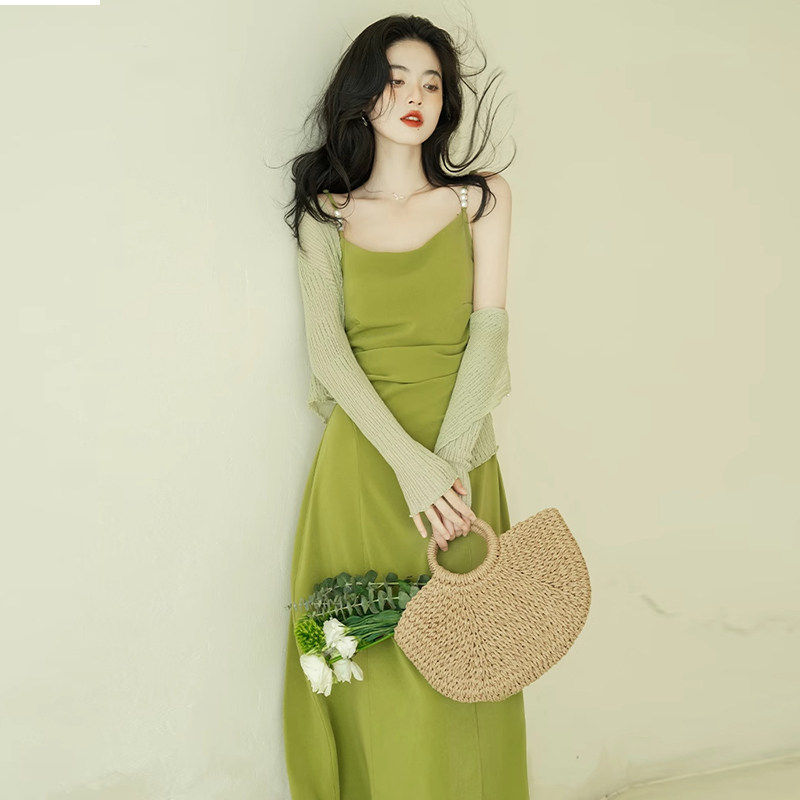 两件套法式绿色连衣裙2026新款高级感气质绝美超仙吊带开衫6904