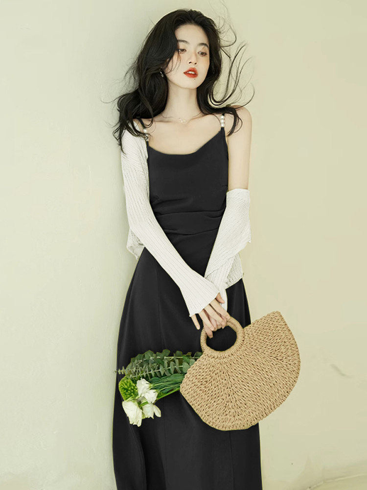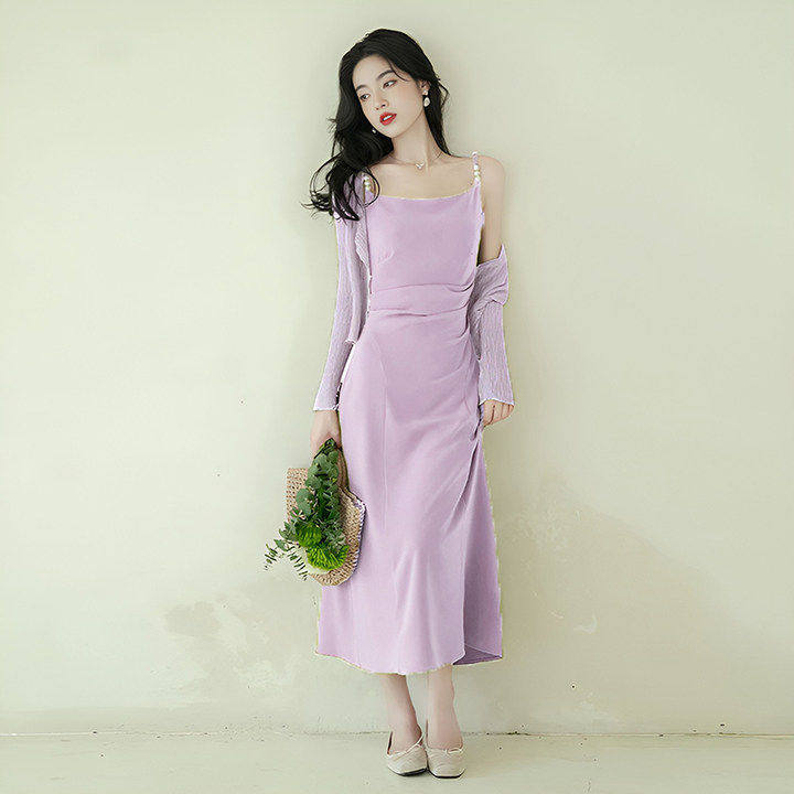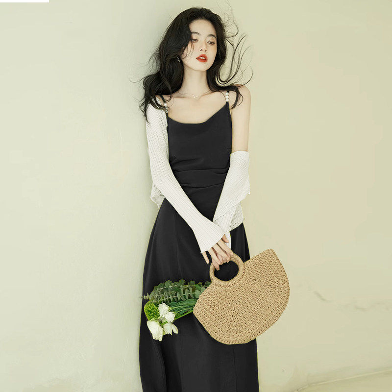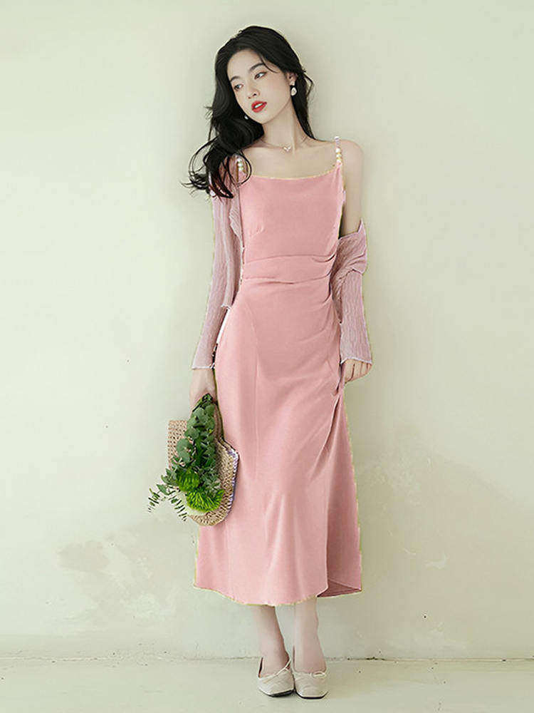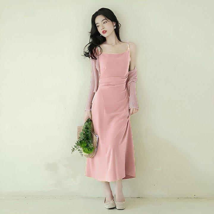 两件套法式绿色连衣裙2026新款高级感气质绝美超仙吊带开衫6904