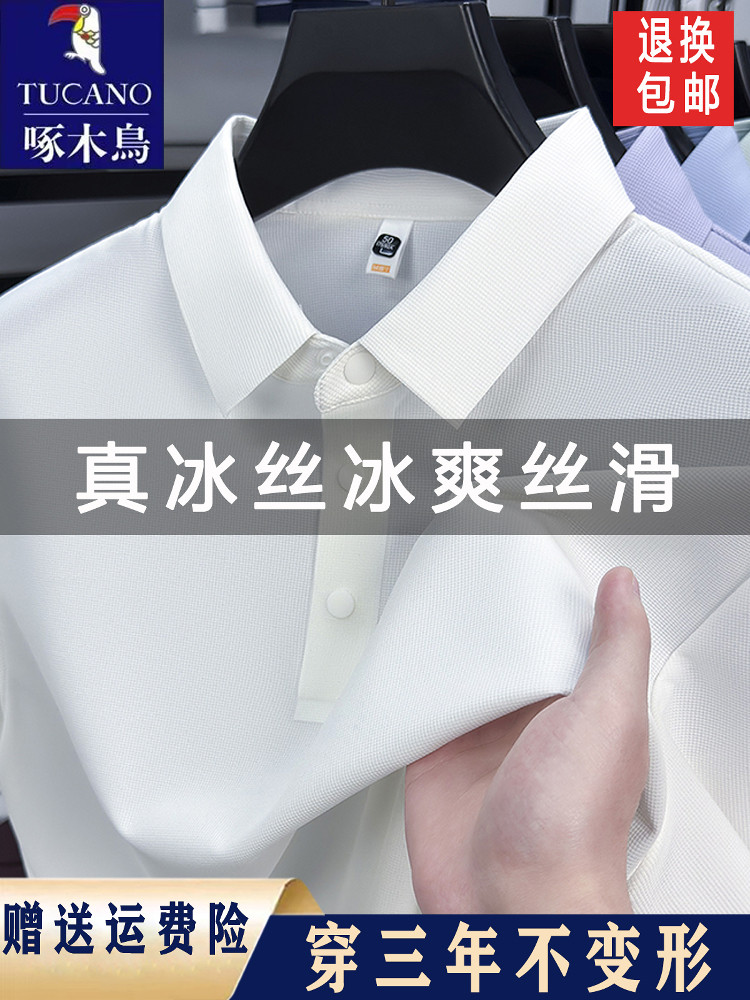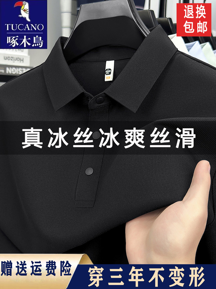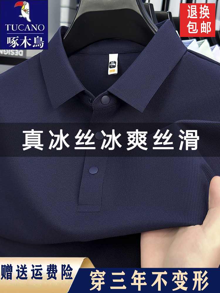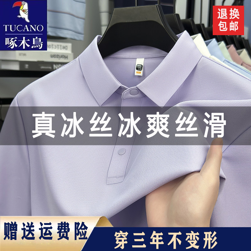 啄木鸟高端冰丝短袖t恤男士2026夏季新款休闲百搭透气无痕POLO衫