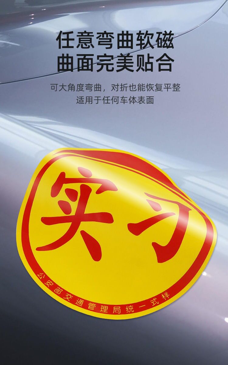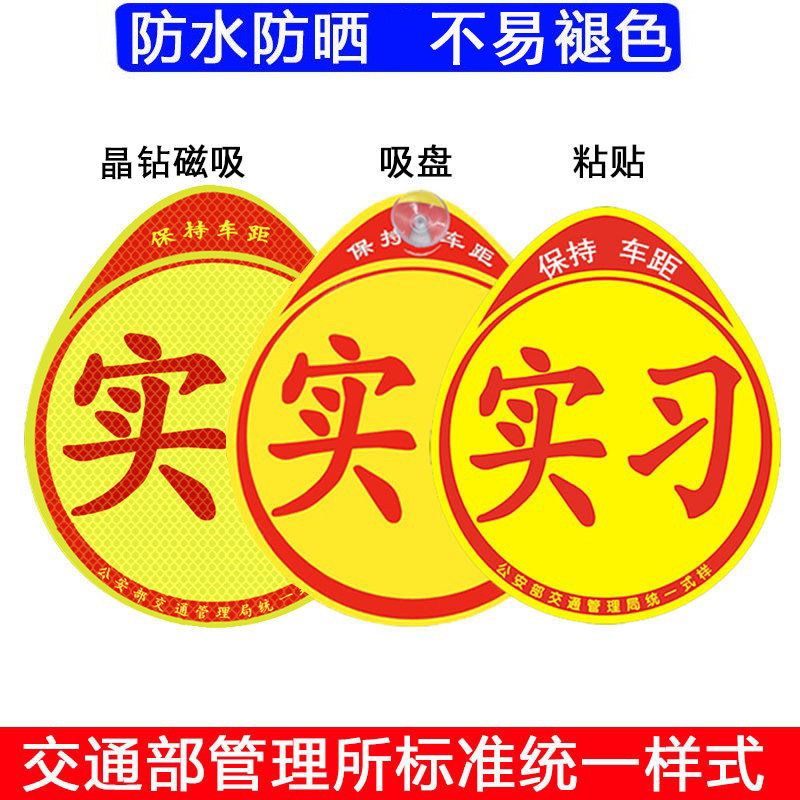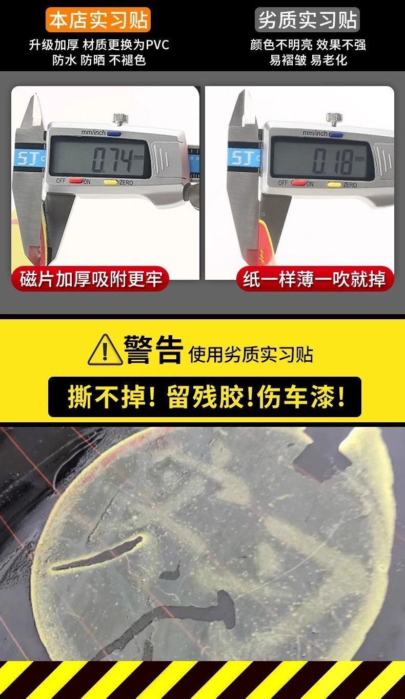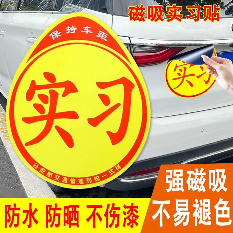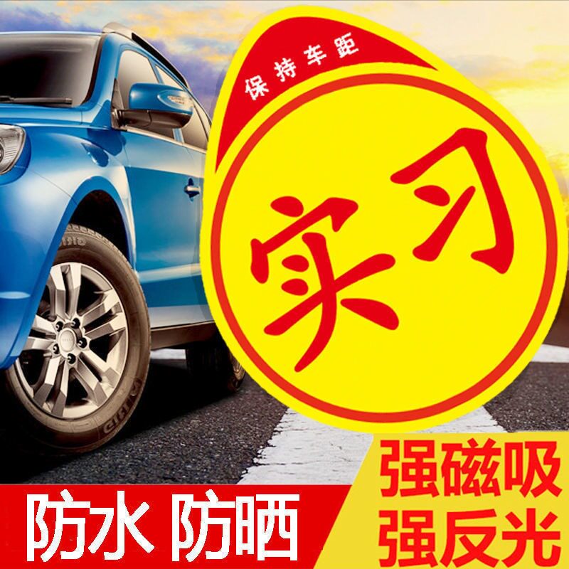 粘贴实习标志新手上路女司机警示粘胶贴纸夜间强反光吸盘磁吸车贴