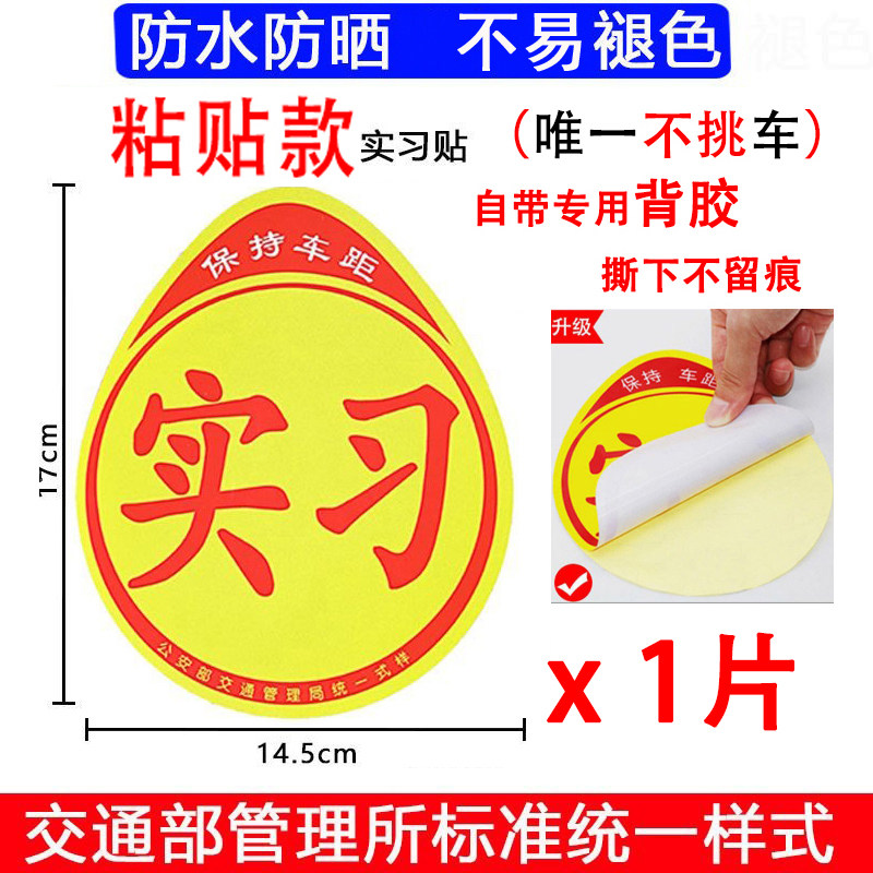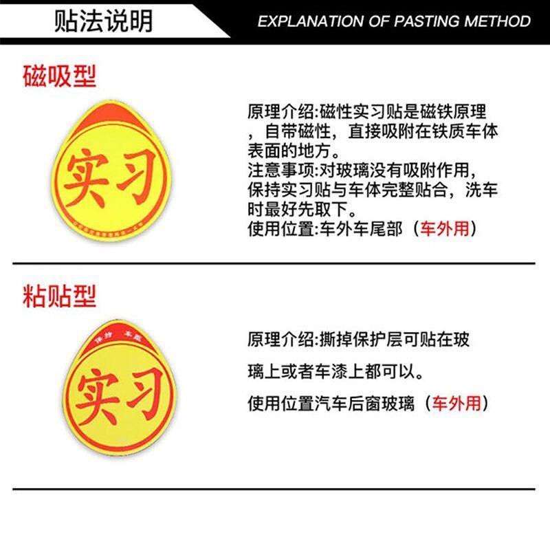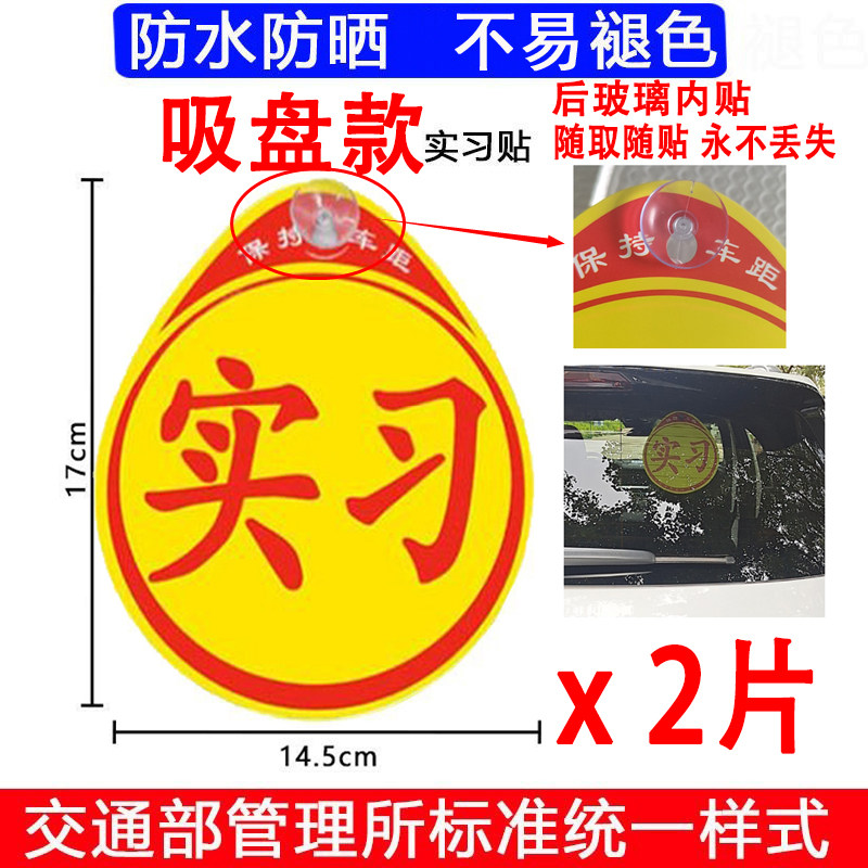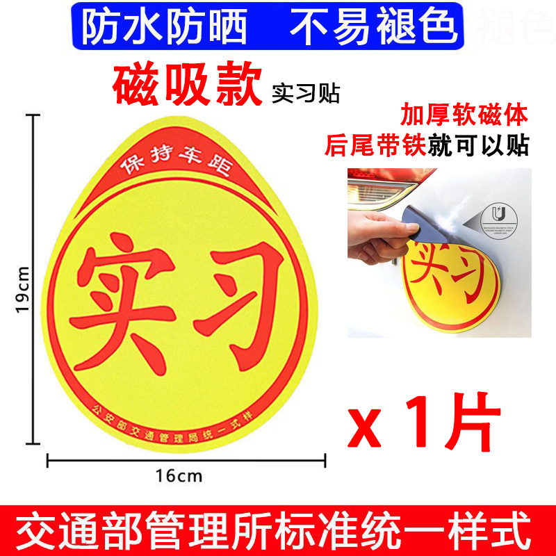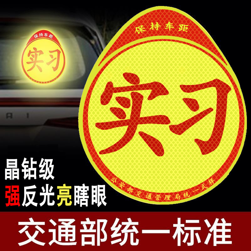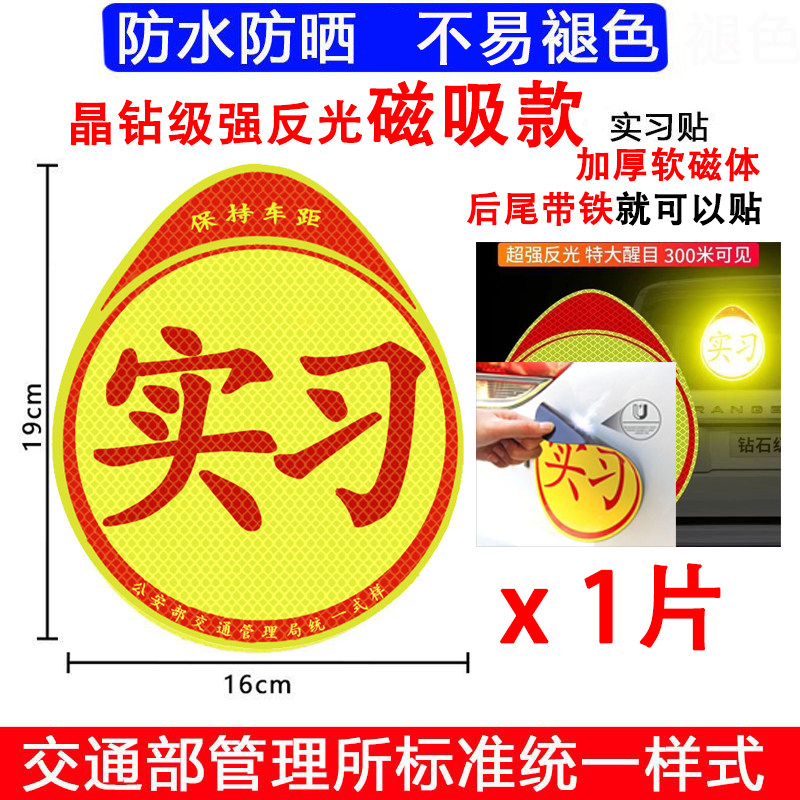 粘贴实习标志新手上路女司机警示粘胶贴纸夜间强反光吸盘磁吸车贴