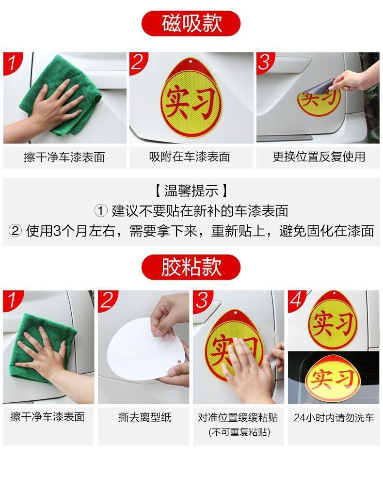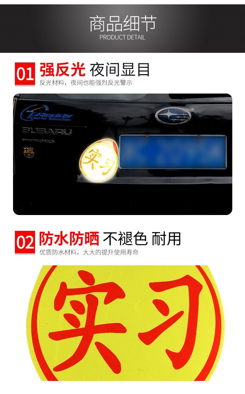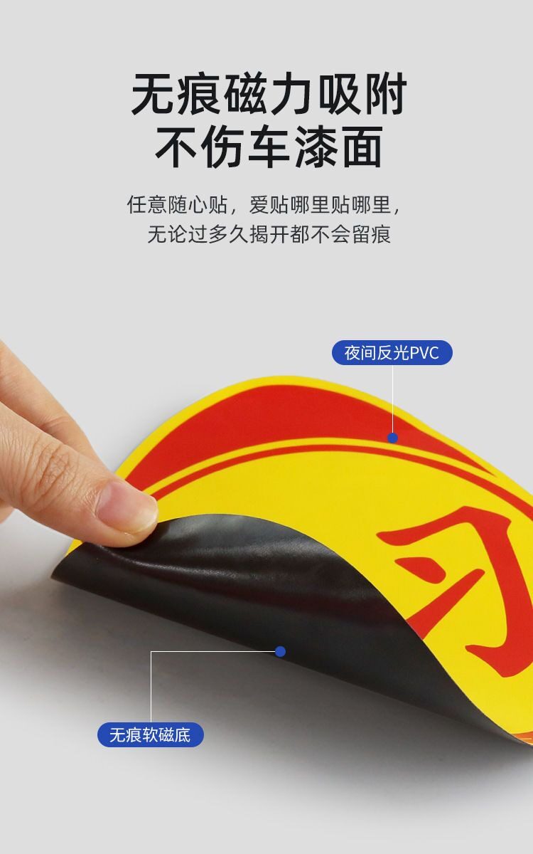 HomeProducts粘贴实习标志新手上路女司机警示粘胶贴纸夜间强反光吸盘磁吸车贴