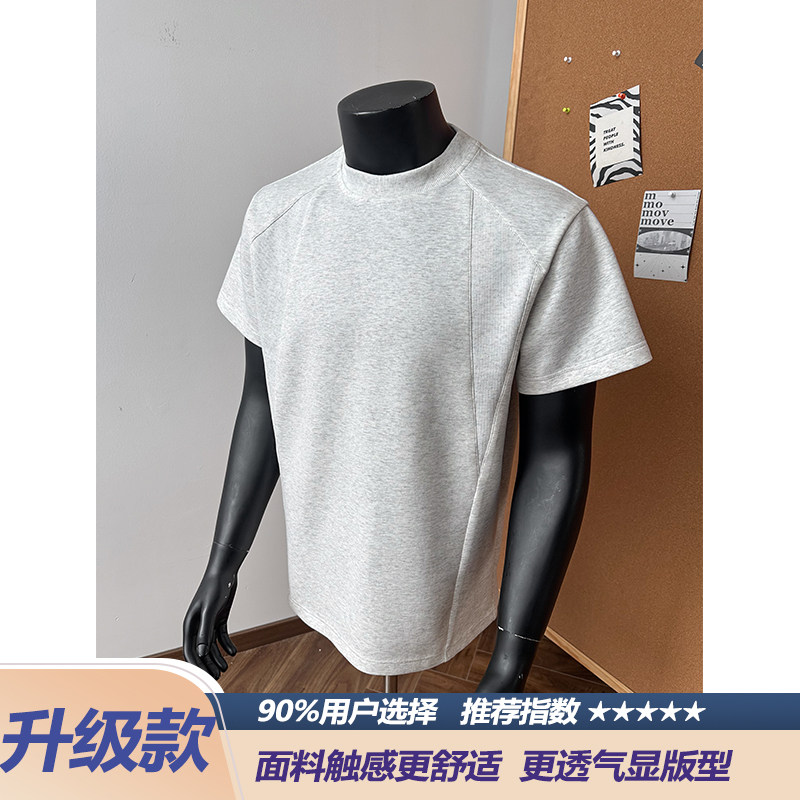 美式重磅正肩短袖t恤男夏季穿搭内搭上衣修身小领口体恤打底衫夏