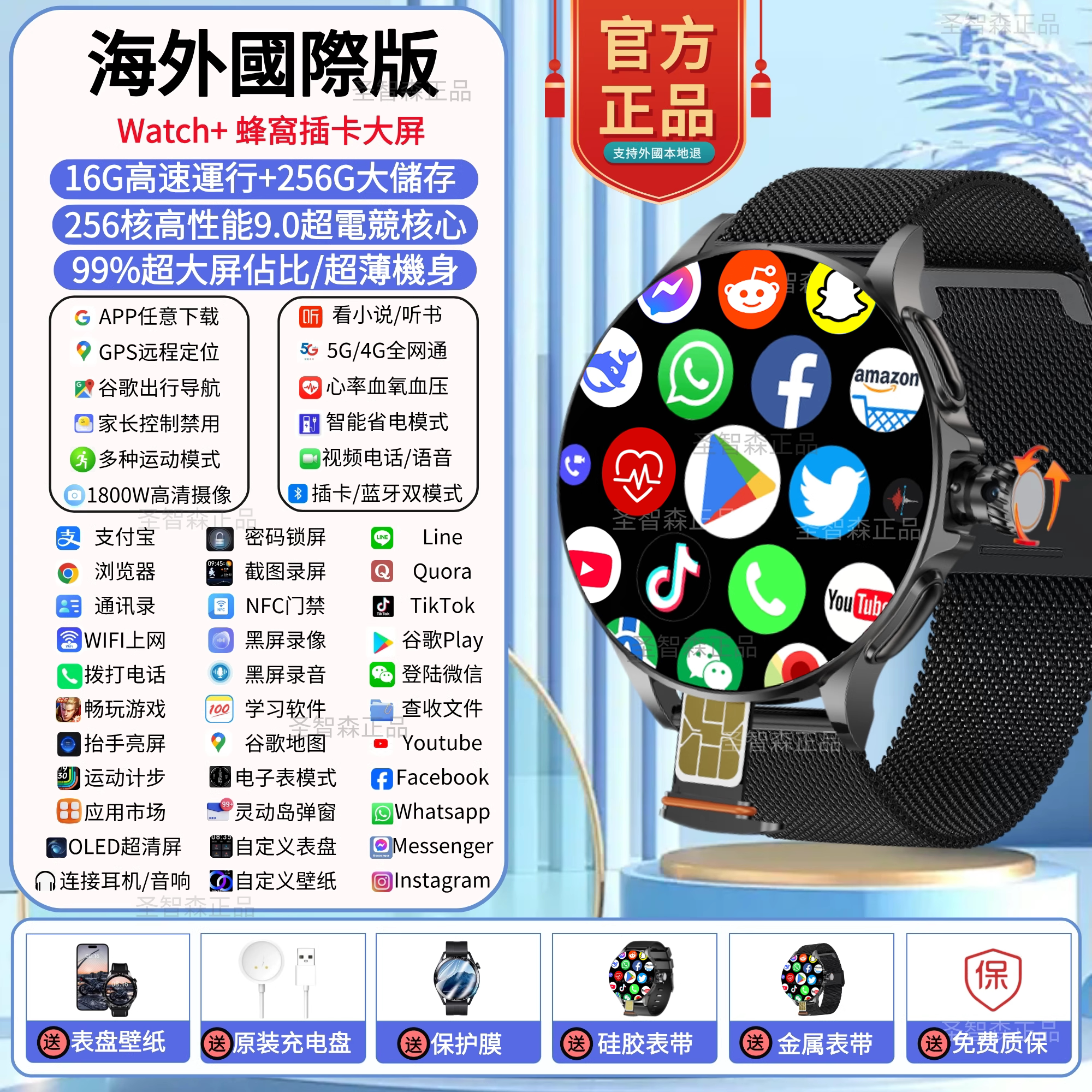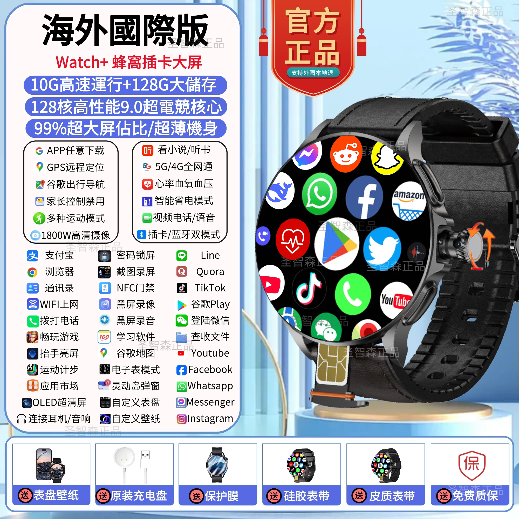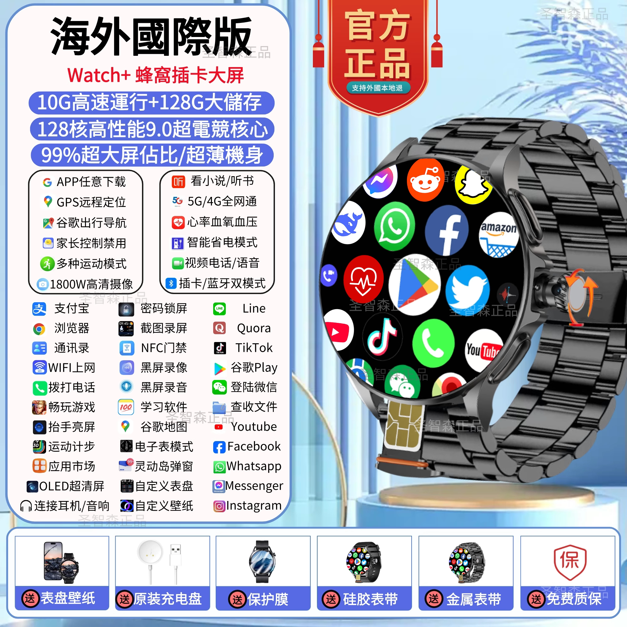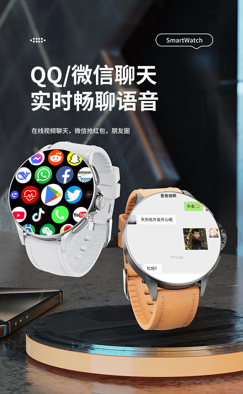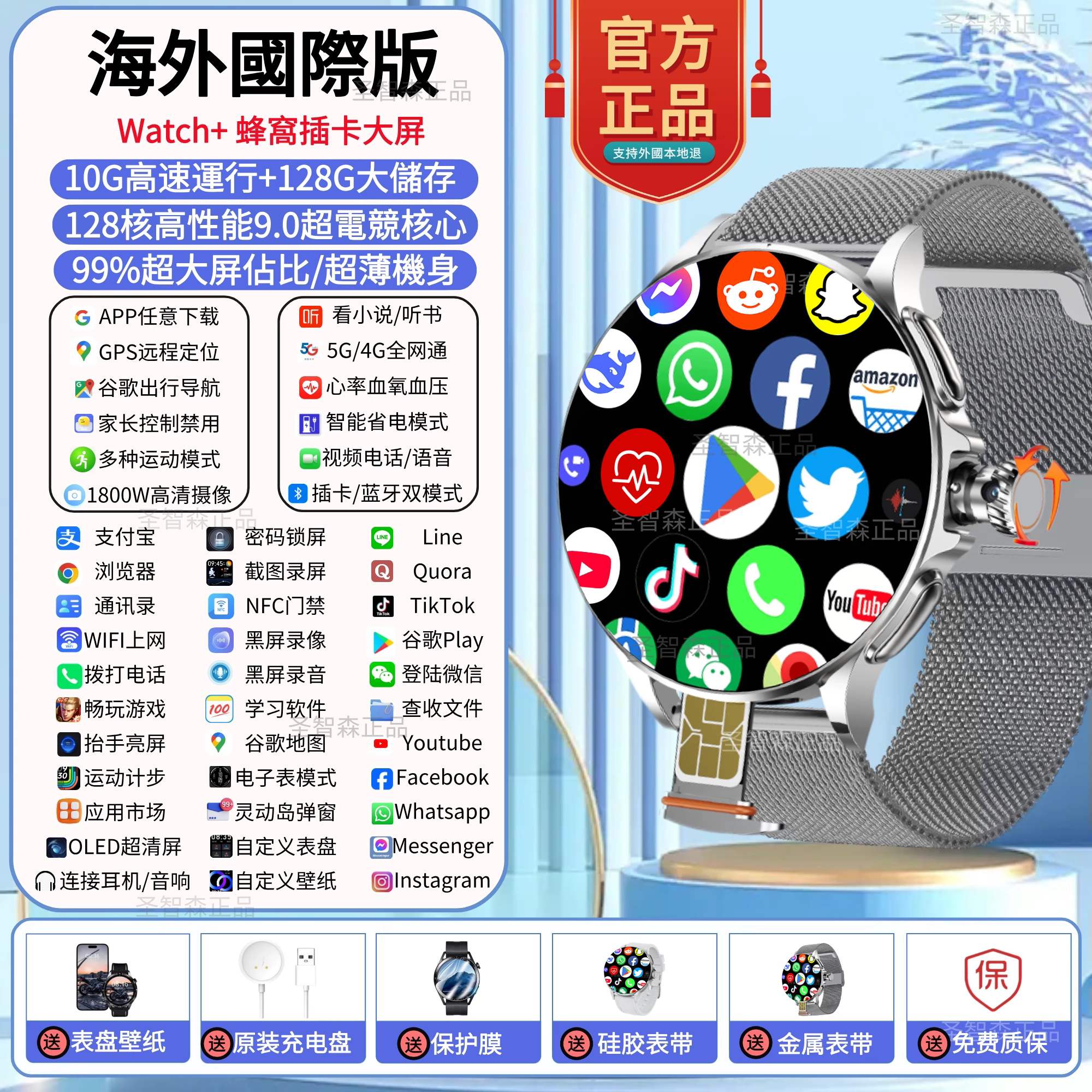 双系统【跨境国际专用】华强北超薄圆屏GT5插卡智能手表中國港澳臺视频APP下载WIFI上网学生专用成人男女款