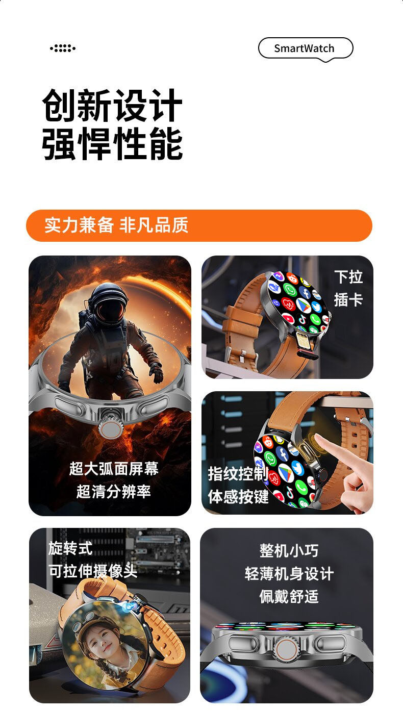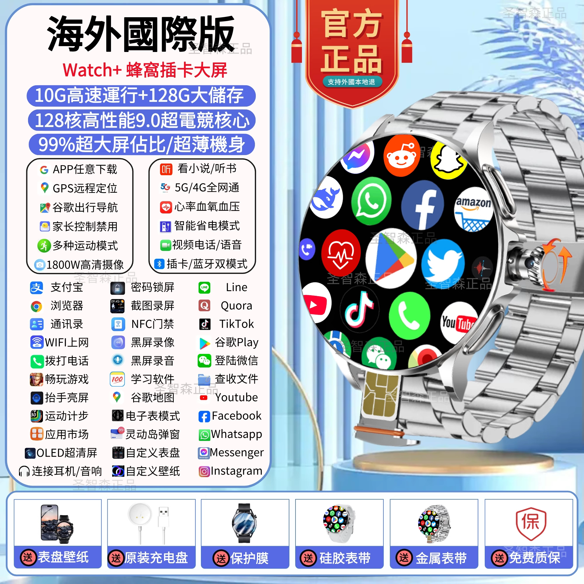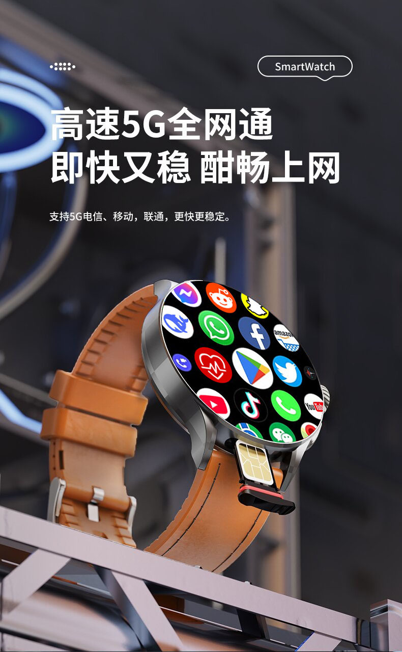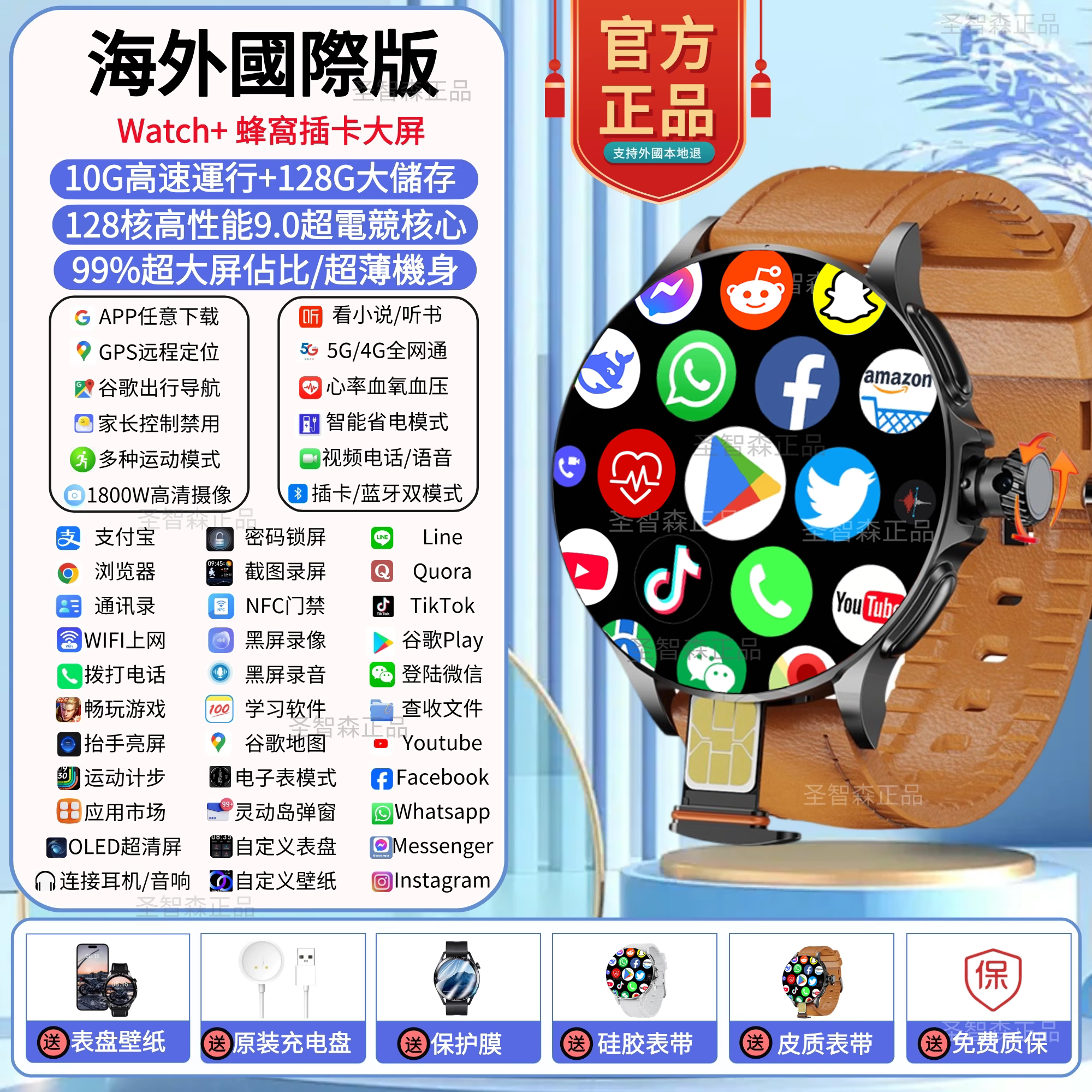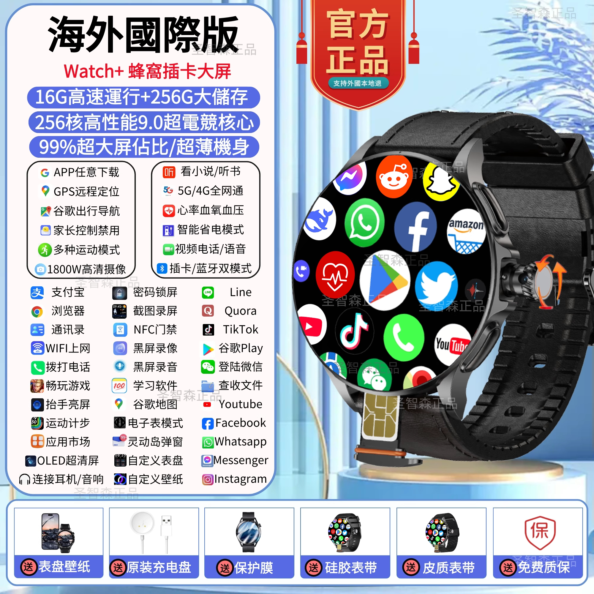 双系统【跨境国际专用】华强北超薄圆屏GT5插卡智能手表中國港澳臺视频APP下载WIFI上网学生专用成人男女款