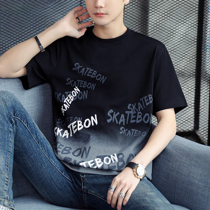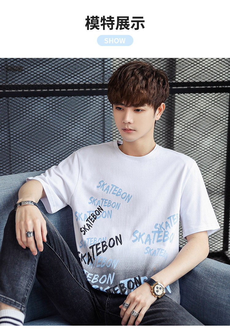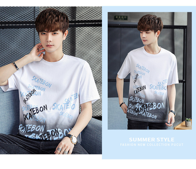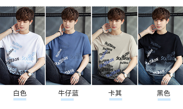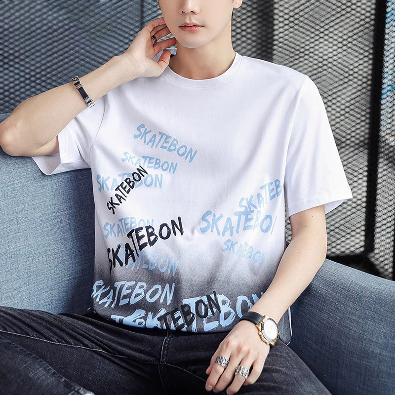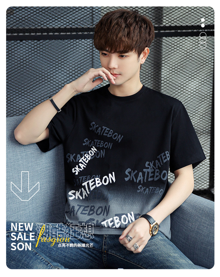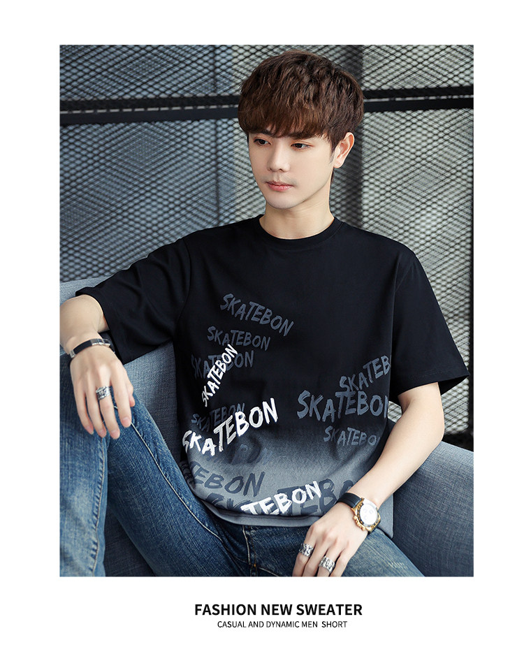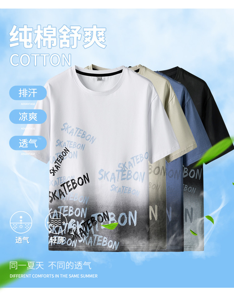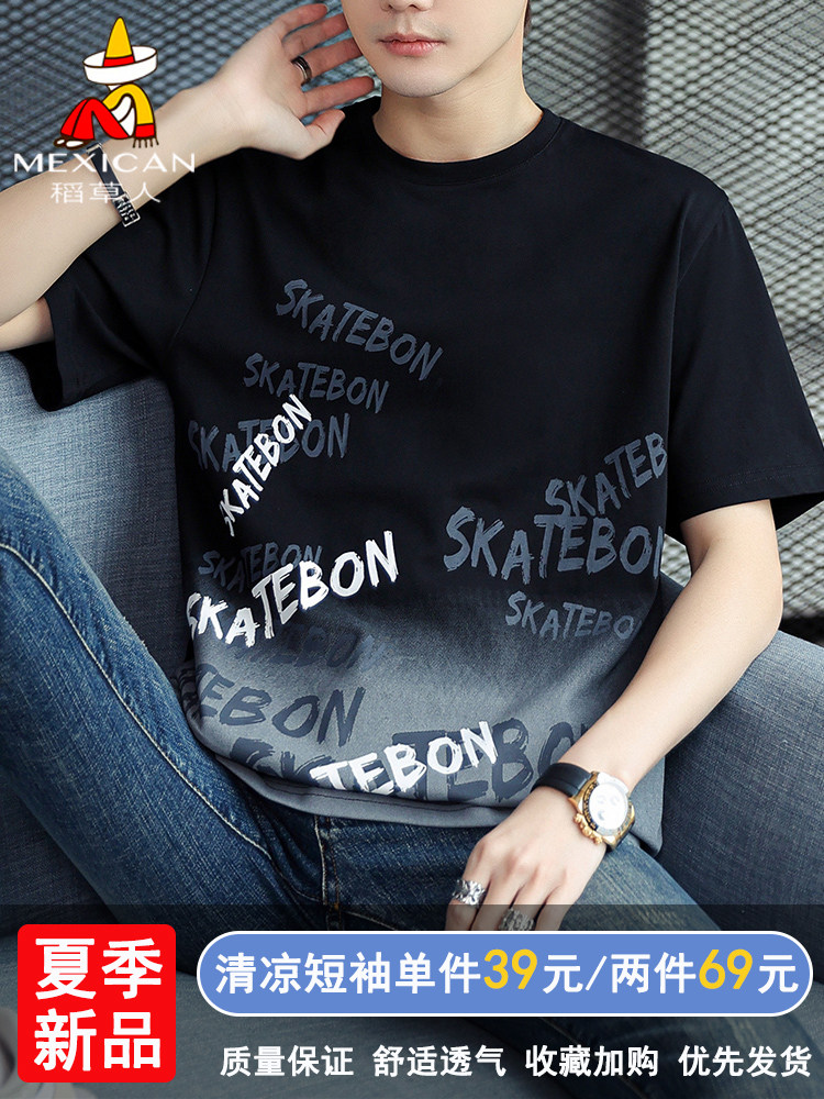 稻草人纯棉短袖t恤男夏季渐变半袖宽松上衣服凉感青年体恤新款t