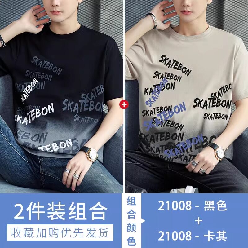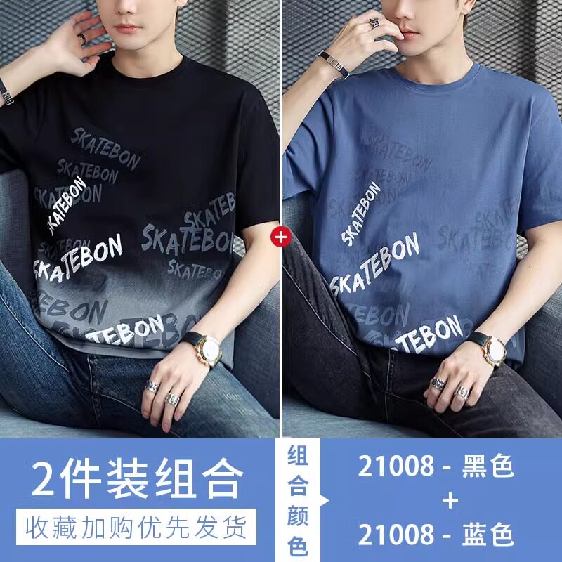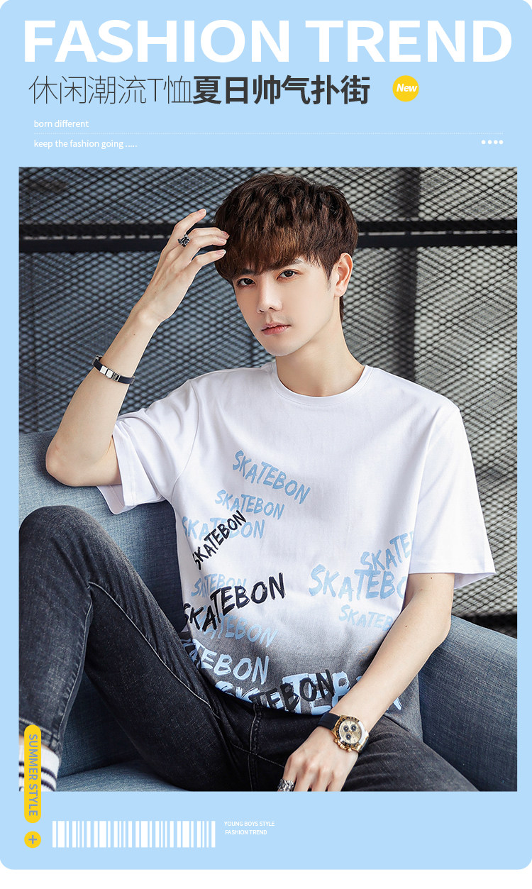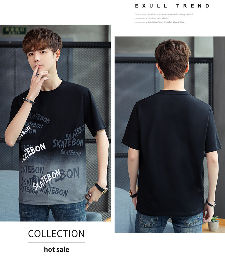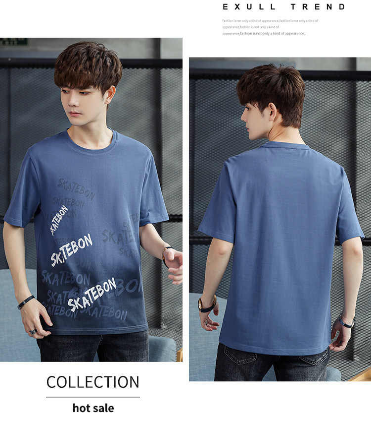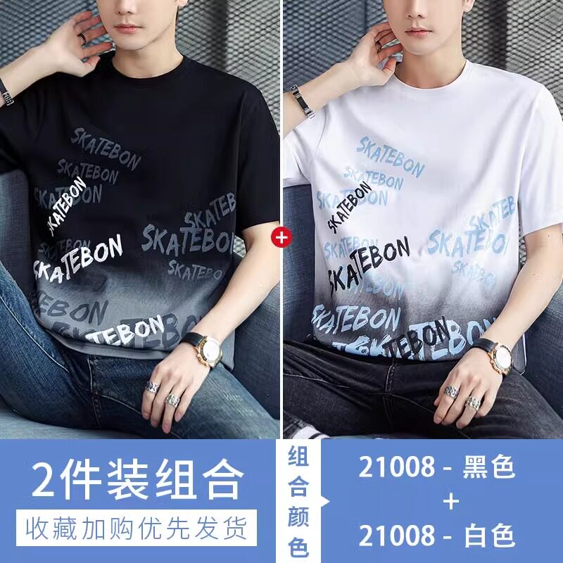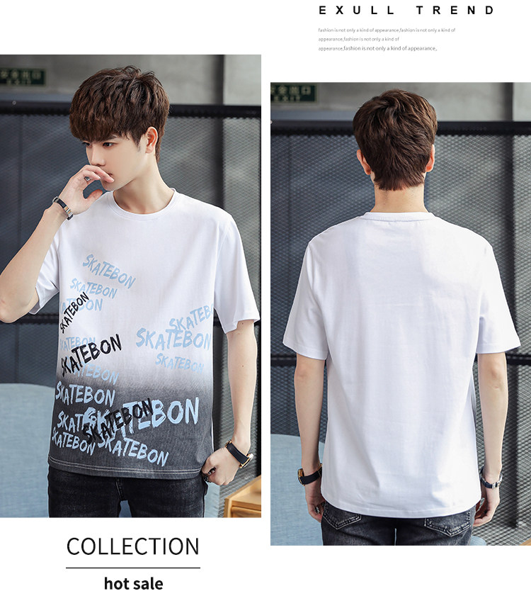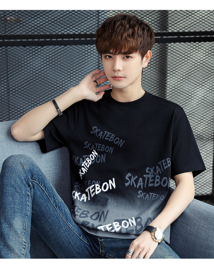 稻草人纯棉短袖t恤男夏季渐变半袖宽松上衣服凉感青年体恤新款t