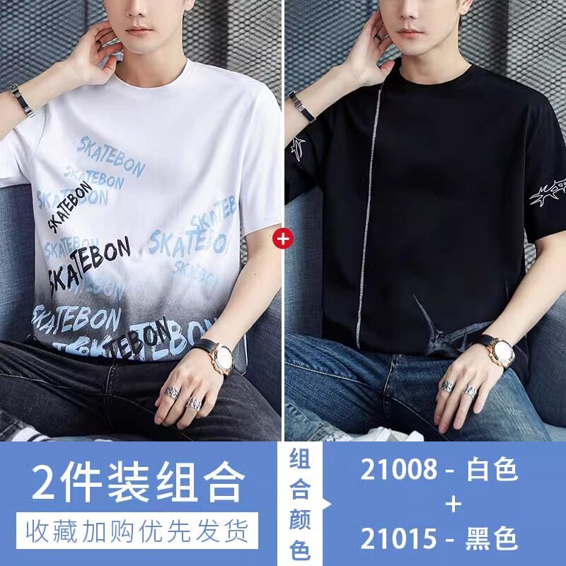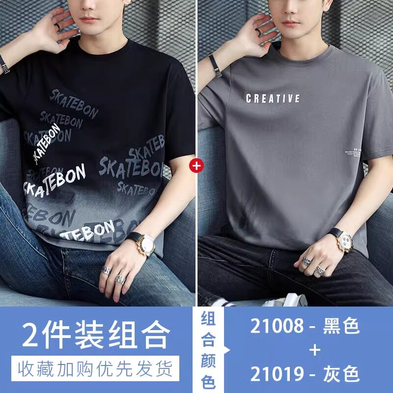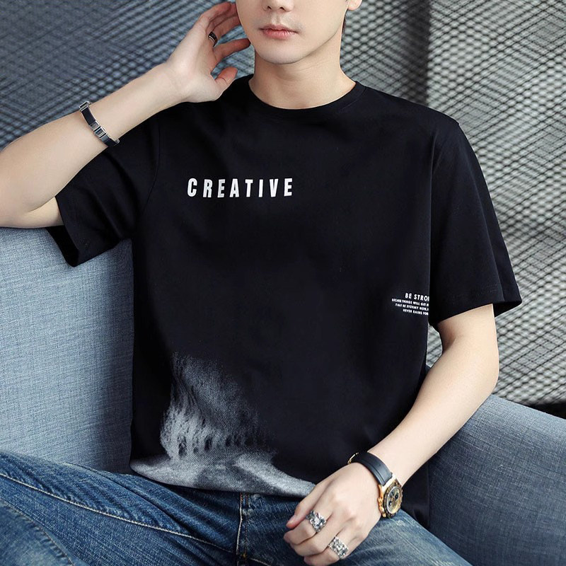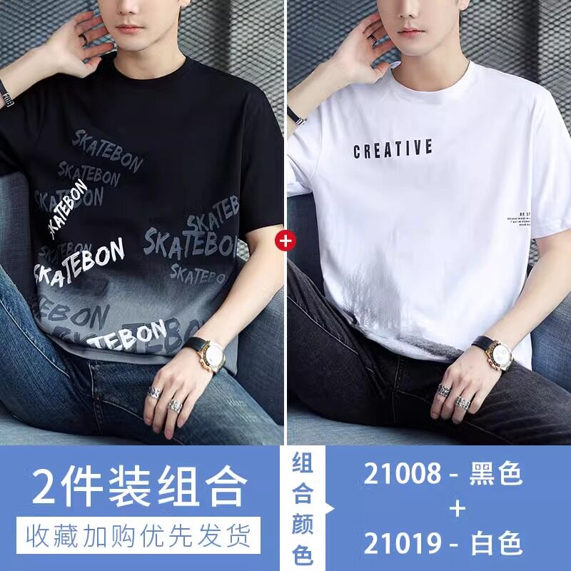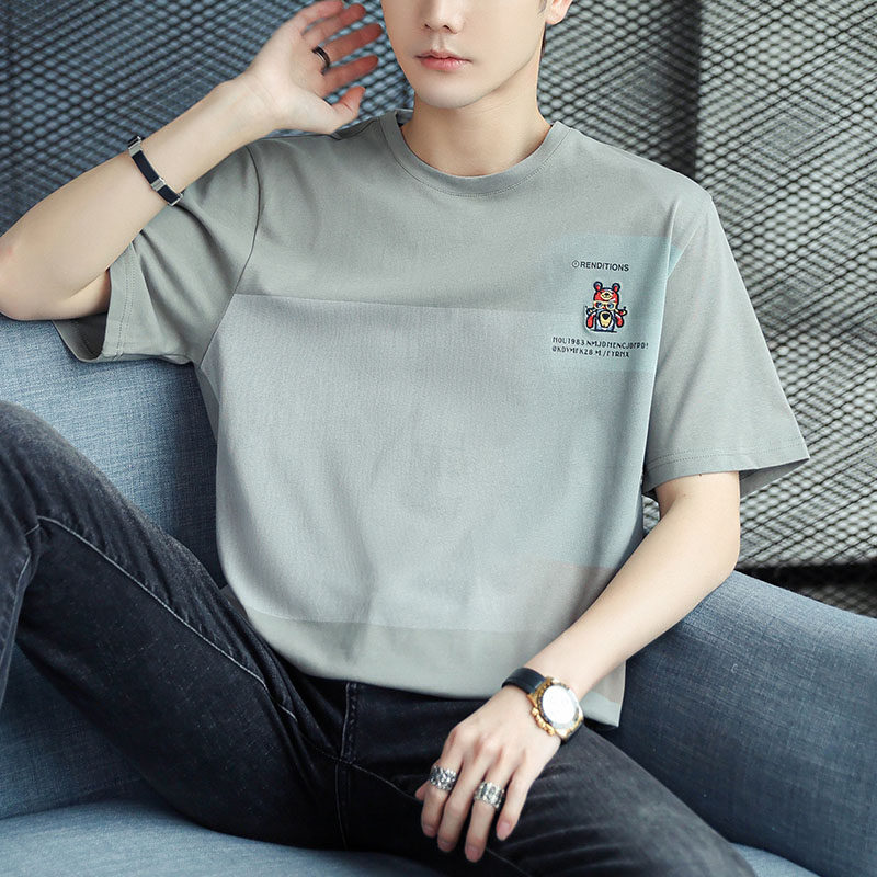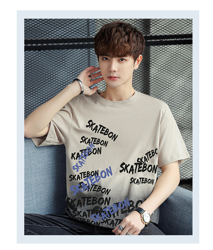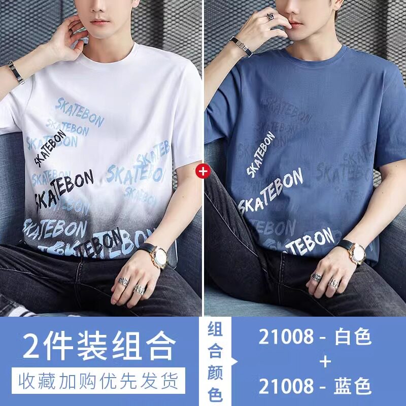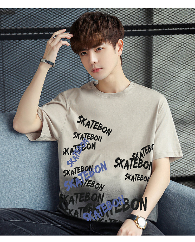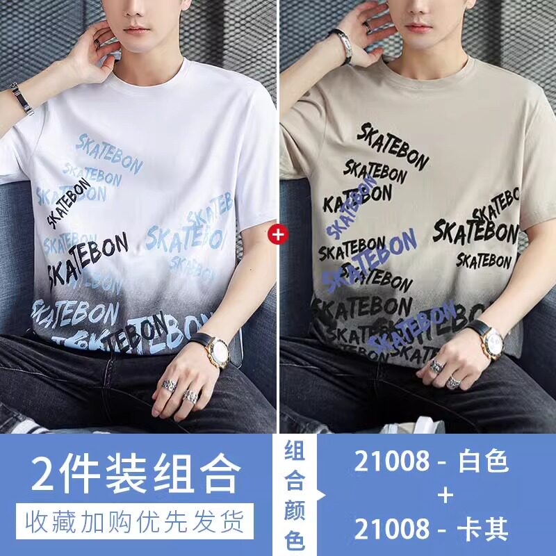 稻草人纯棉短袖t恤男夏季渐变半袖宽松上衣服凉感青年体恤新款t