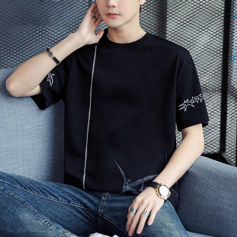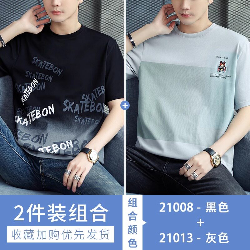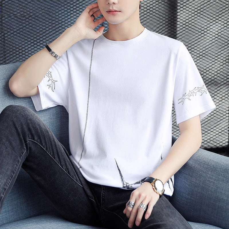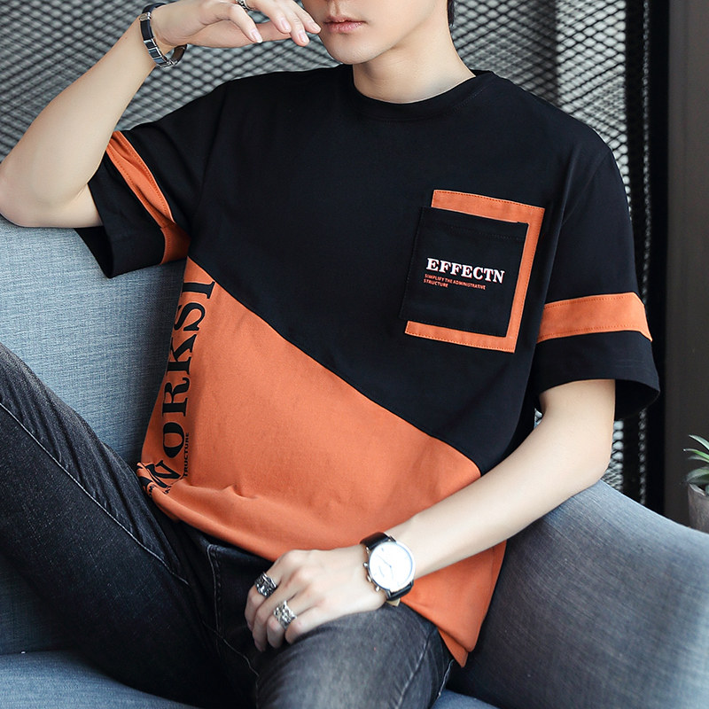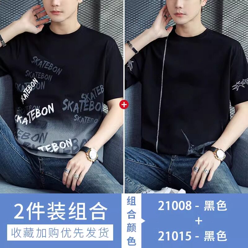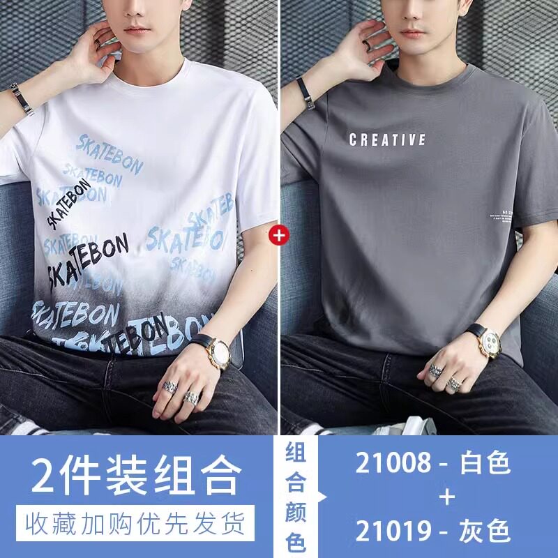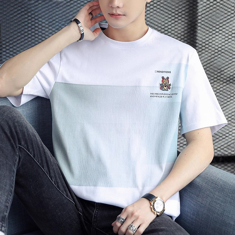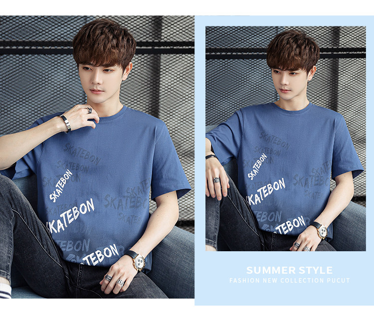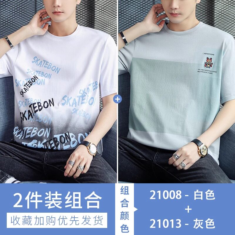 稻草人纯棉短袖t恤男夏季渐变半袖宽松上衣服凉感青年体恤新款t