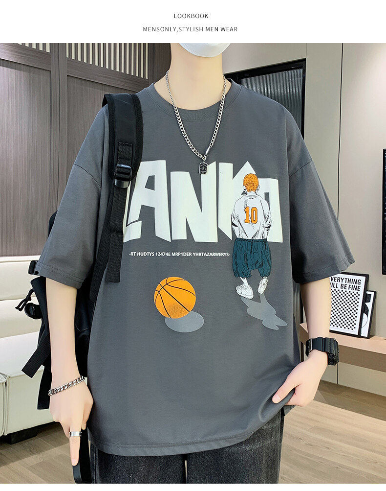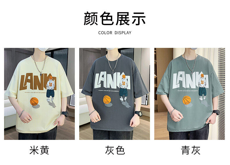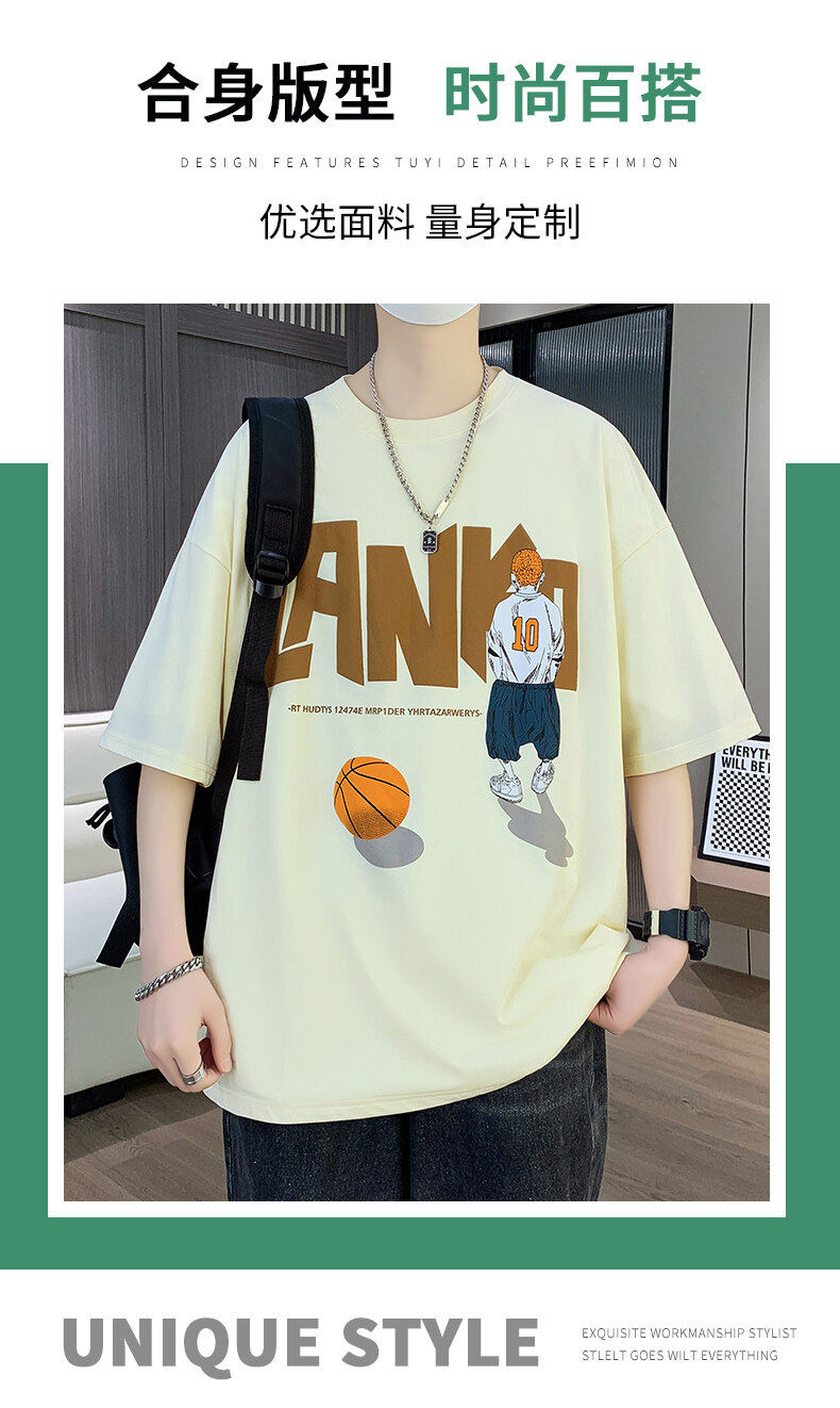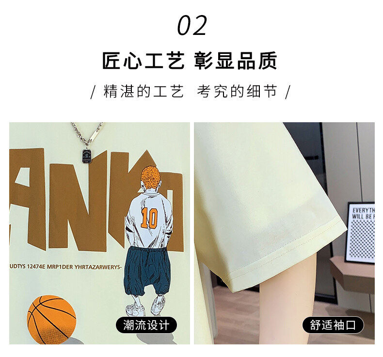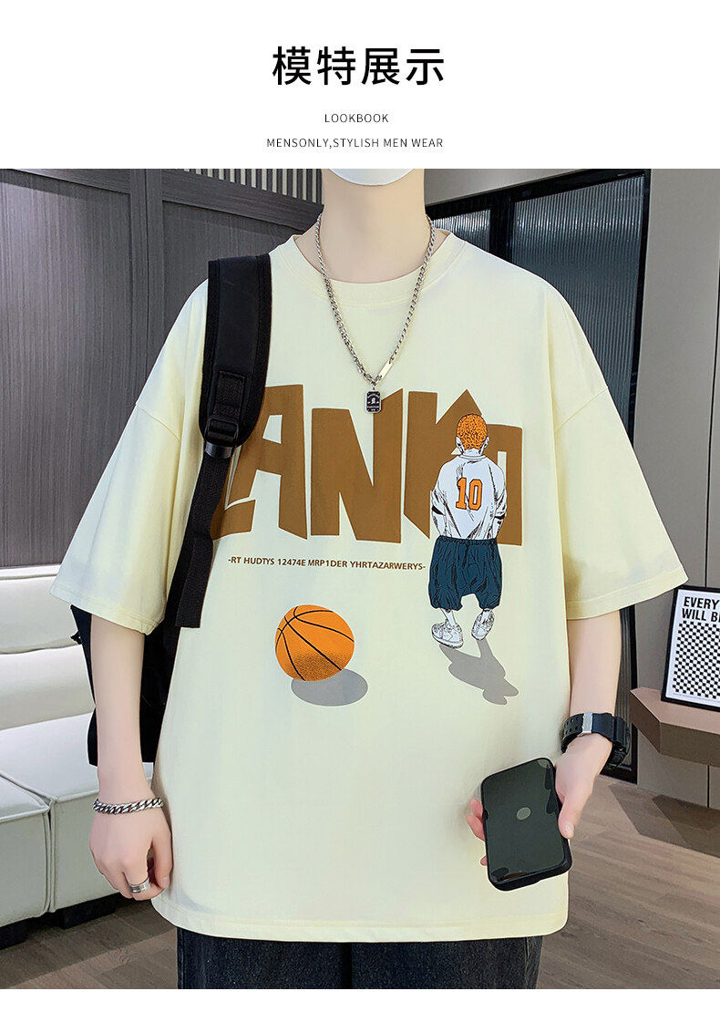 纯棉短袖男夏季新款宽松印花半袖体恤学生潮流百搭上衣T恤套装