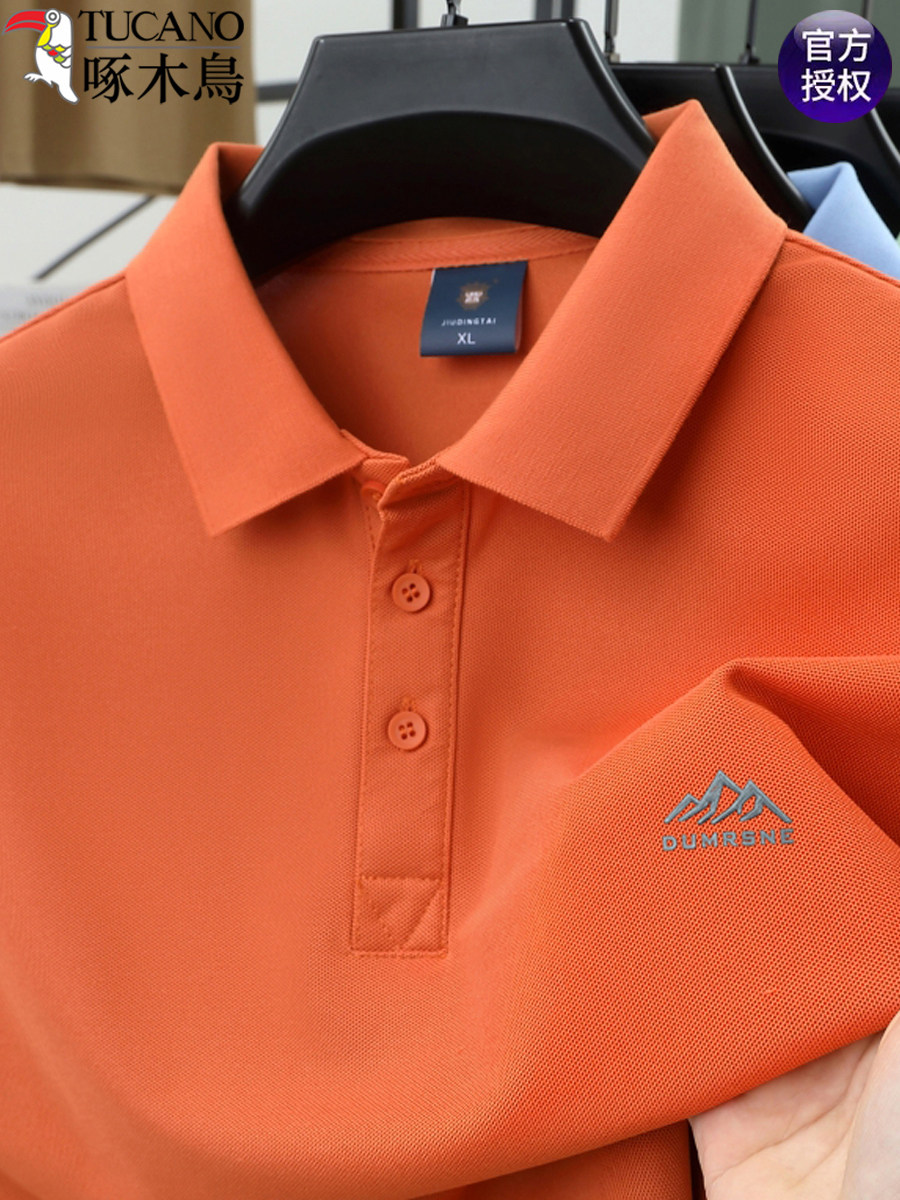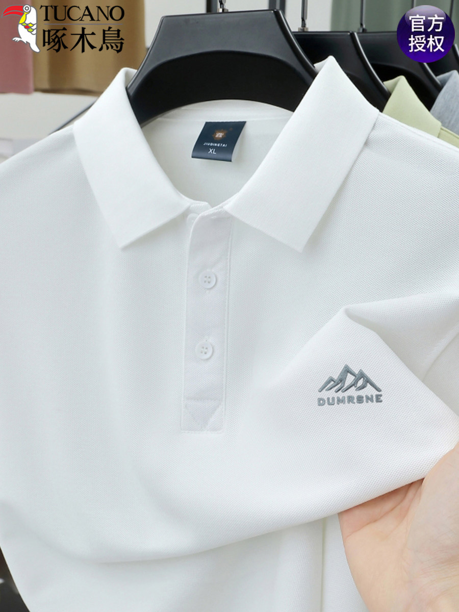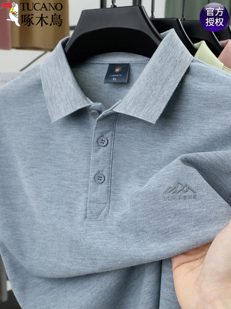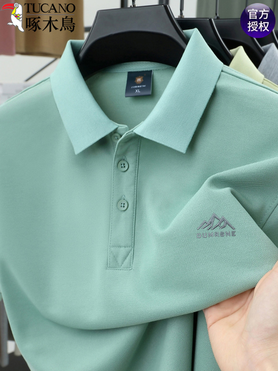 HomeProducts啄木鸟夏季男士冰丝短袖t恤新款纯色半袖POLO衫潮流宽松翻领上衣