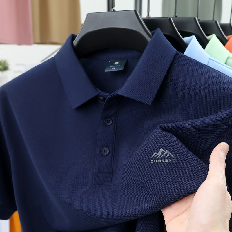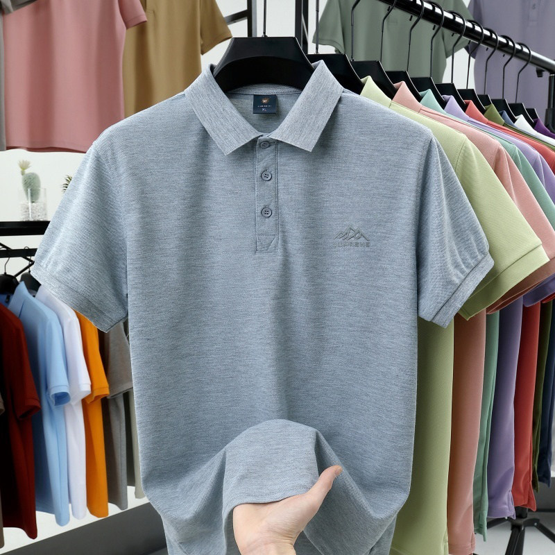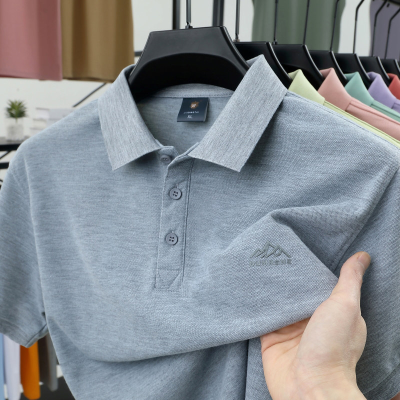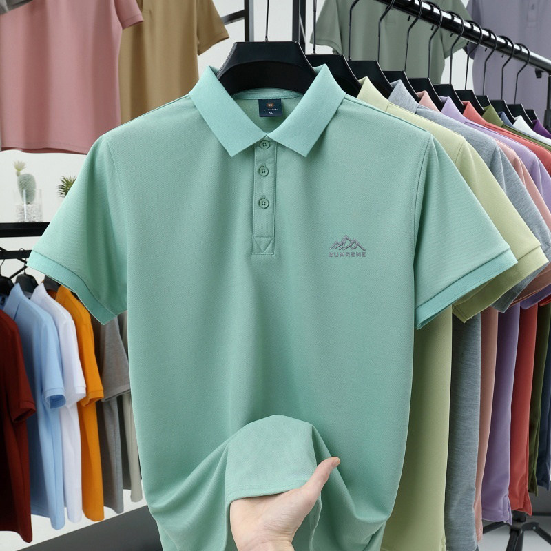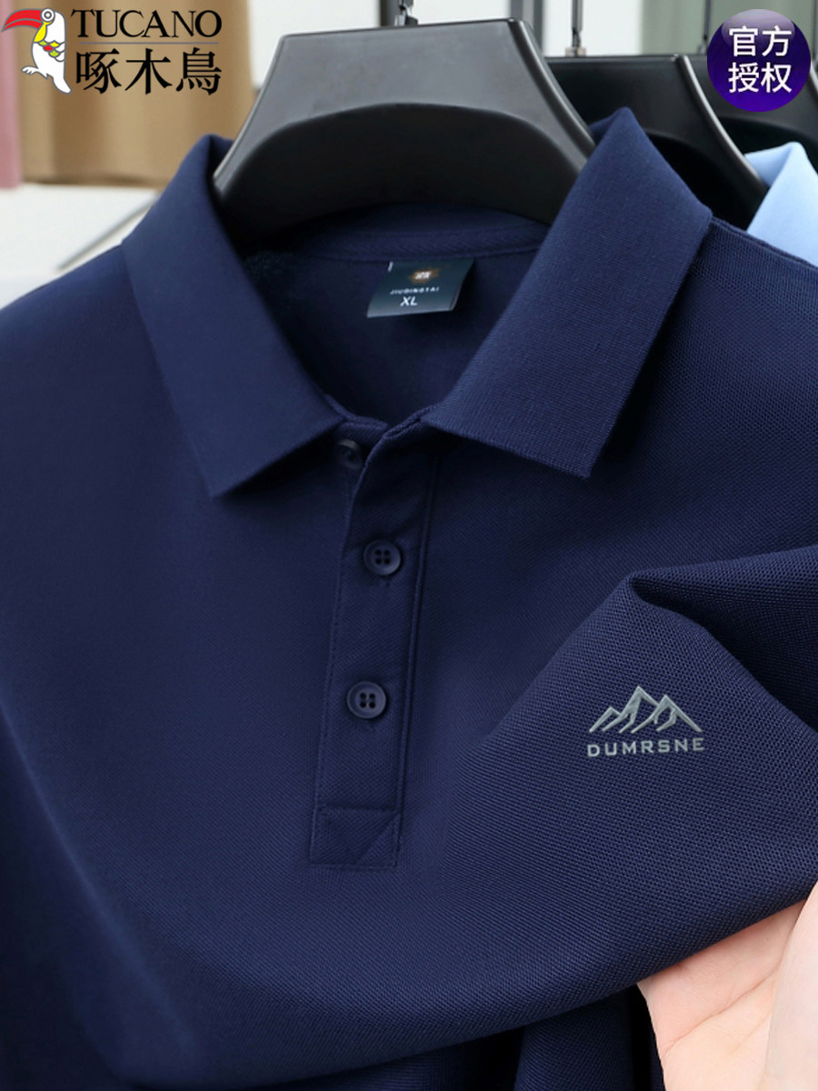 HomeProducts啄木鸟夏季男士冰丝短袖t恤新款纯色半袖POLO衫潮流宽松翻领上衣