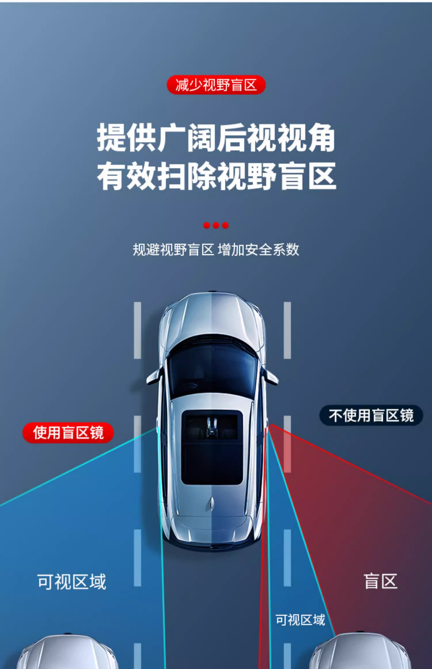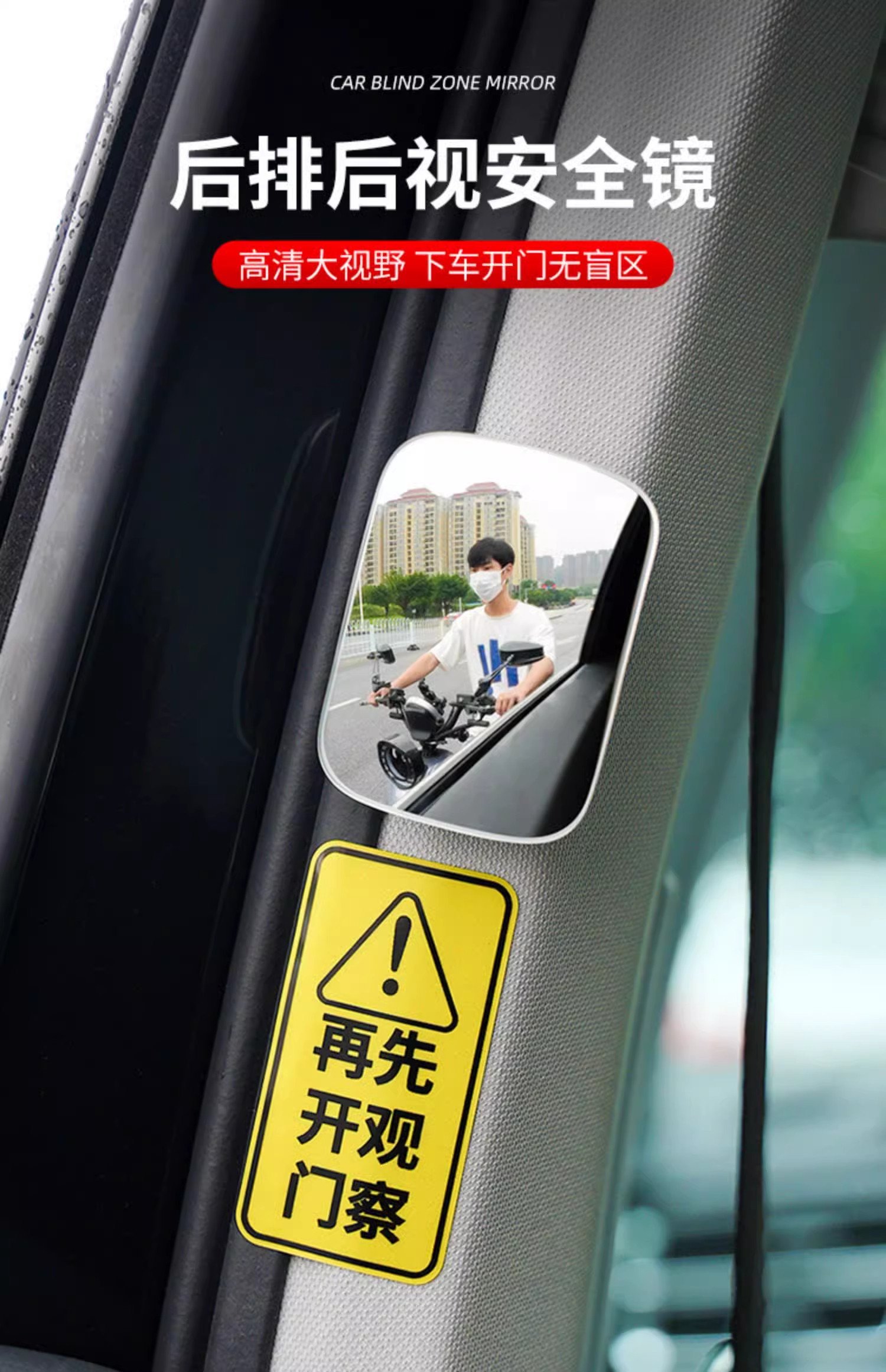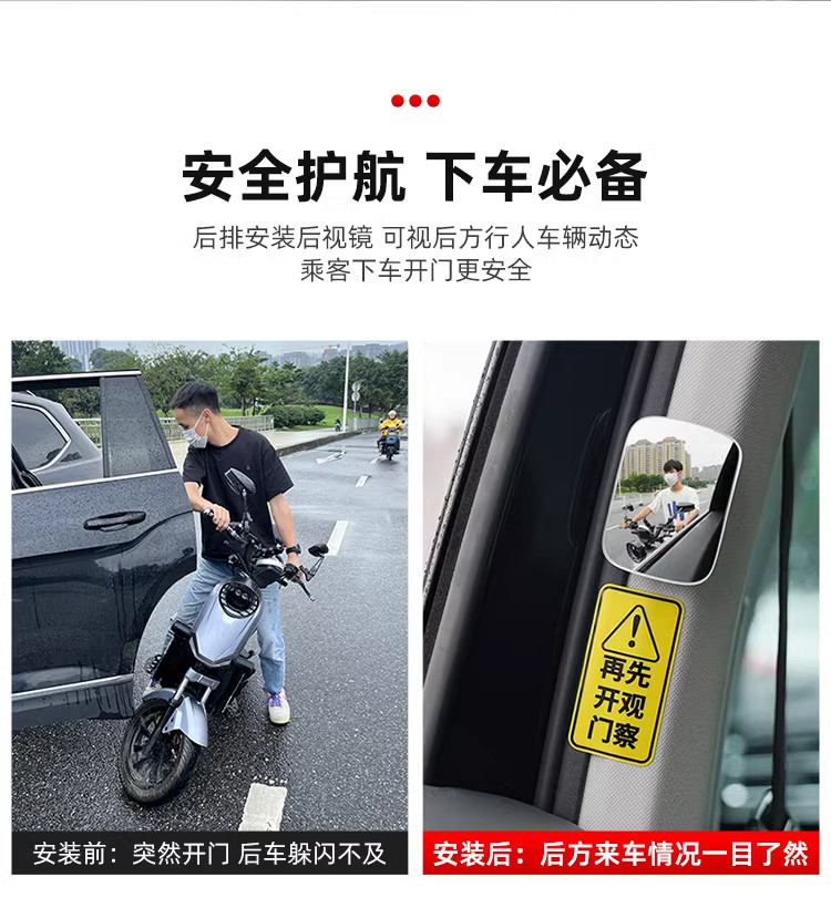 汽车后排开门下车观察镜后视镜车内观后镜除盲区广角镜防撞倒车镜