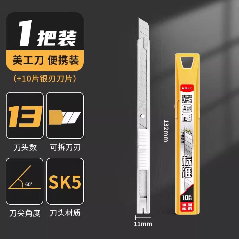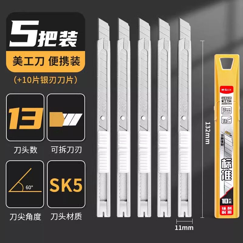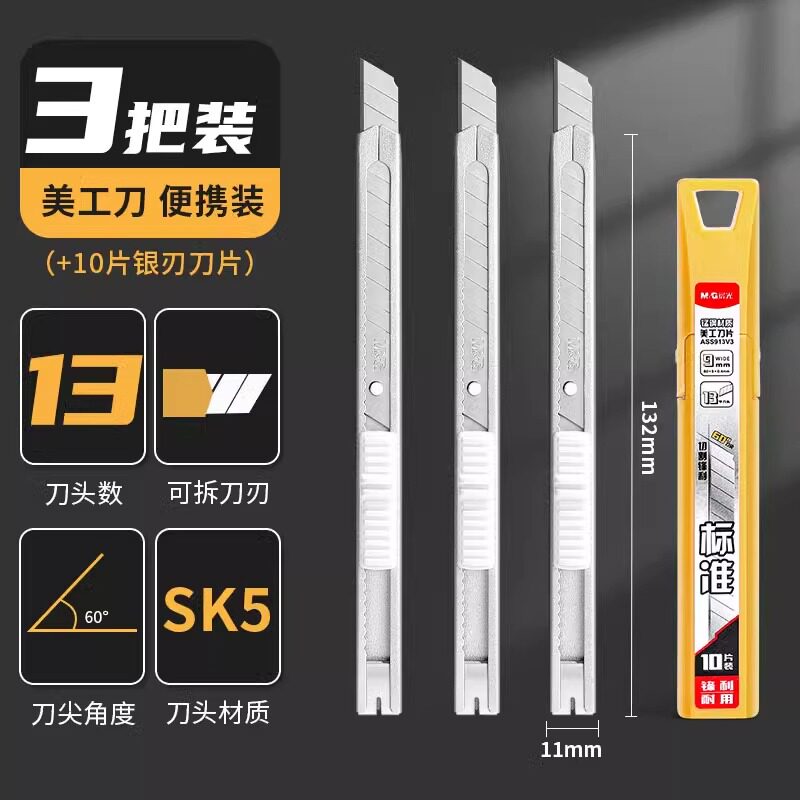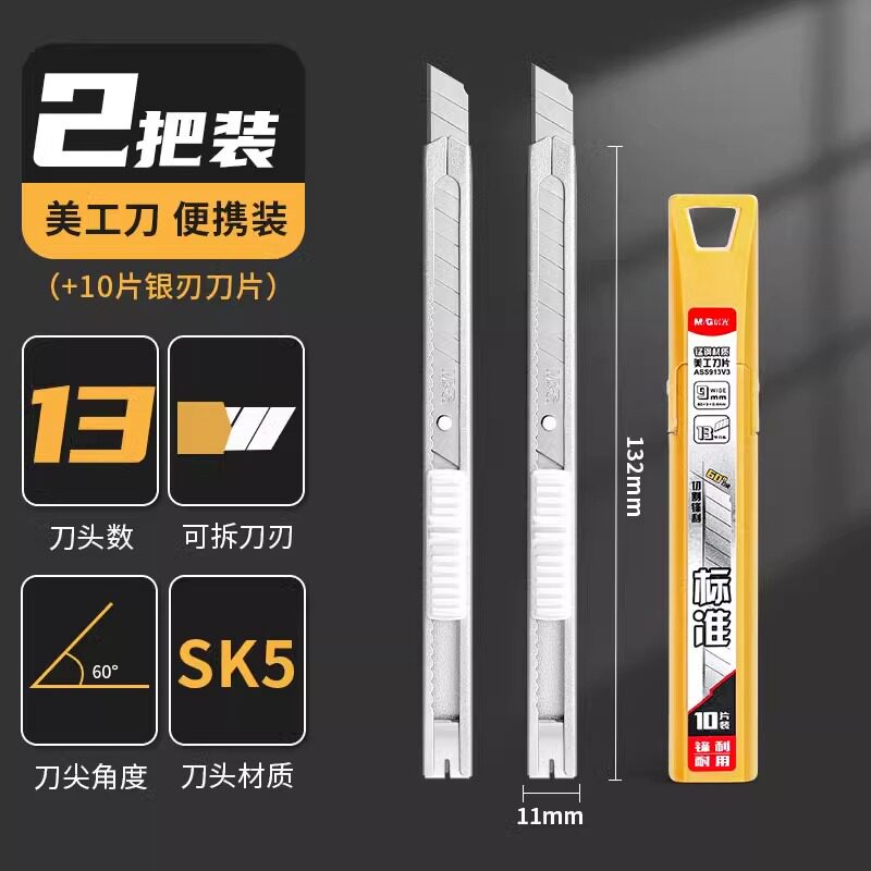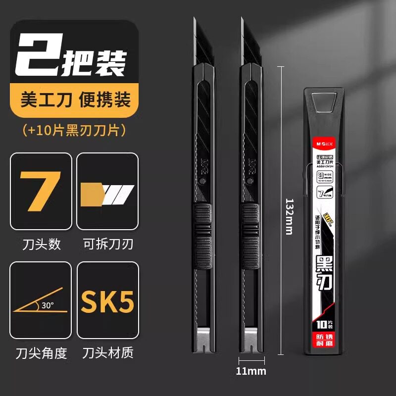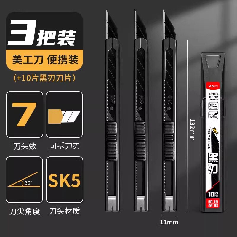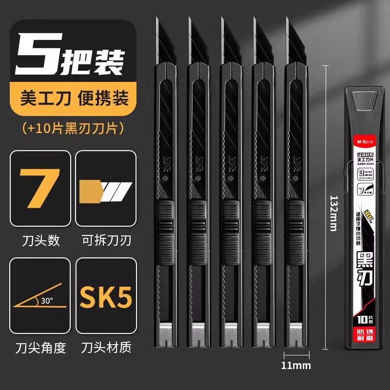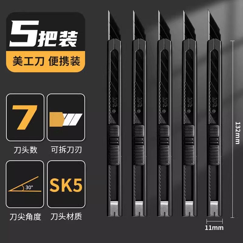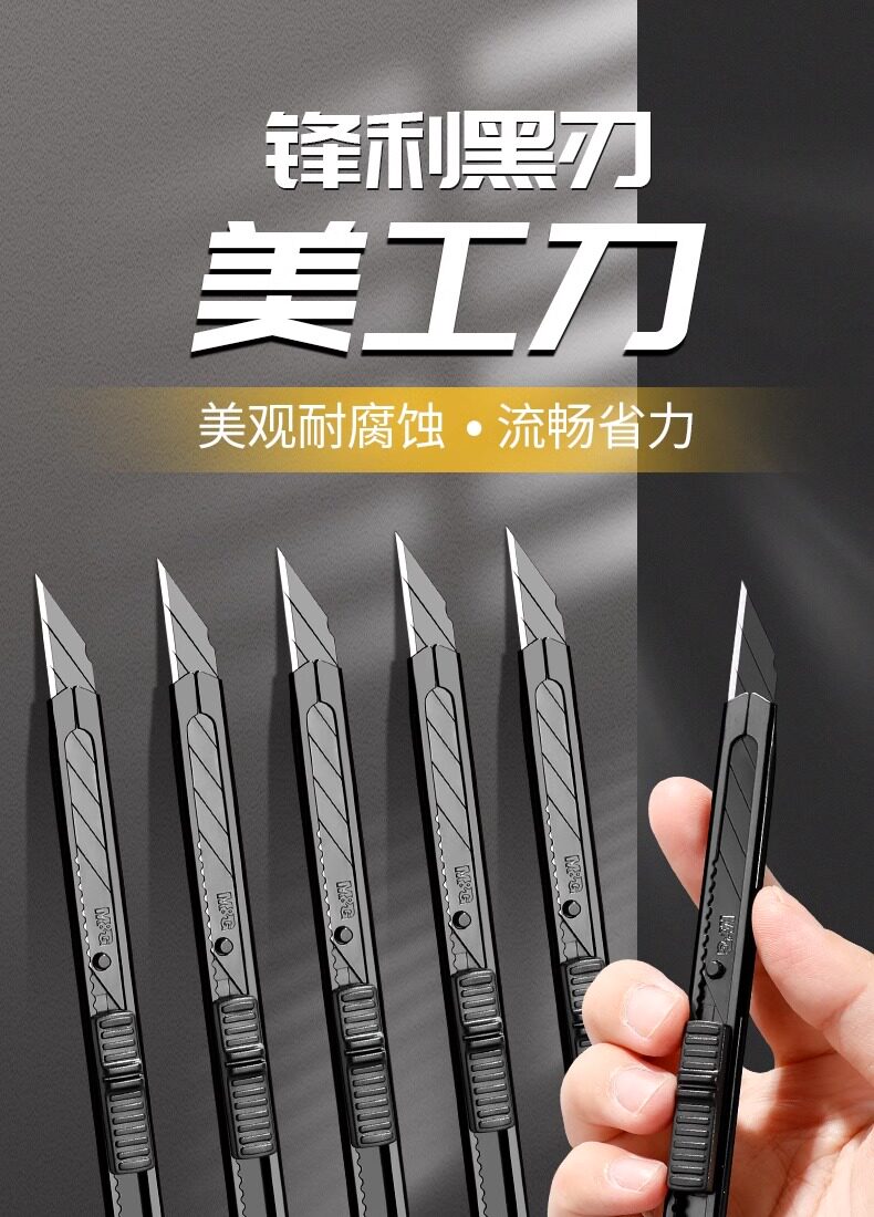 晨光60度黑刃美工刀小刀壁纸刀小号便携迷你快递开箱创意学生金属钛合金刀架裁纸专用裁膜刀片加厚全钢工业用