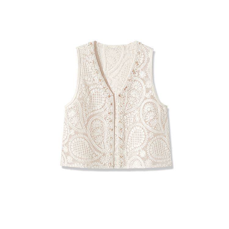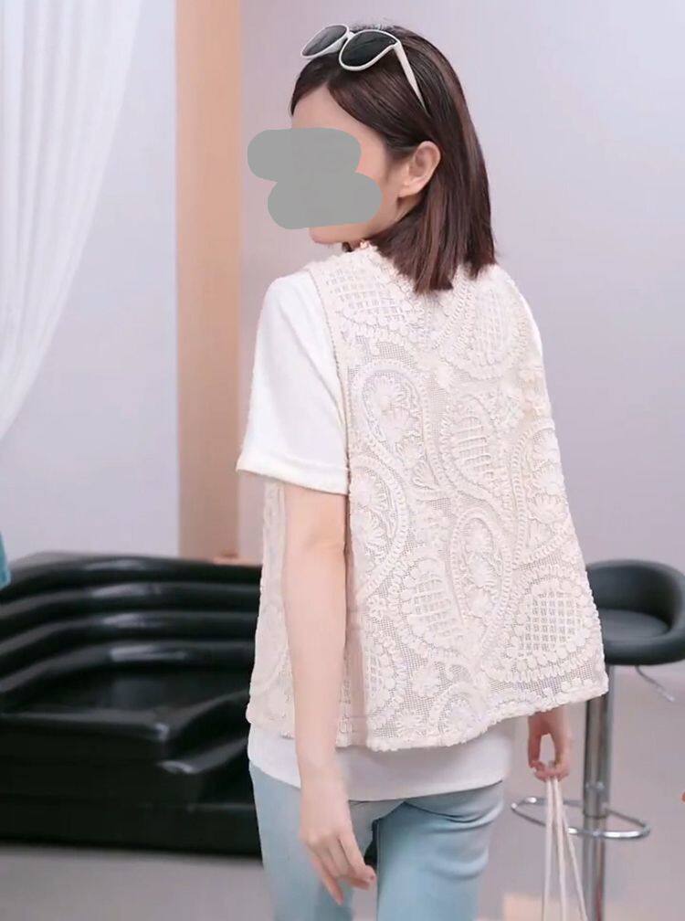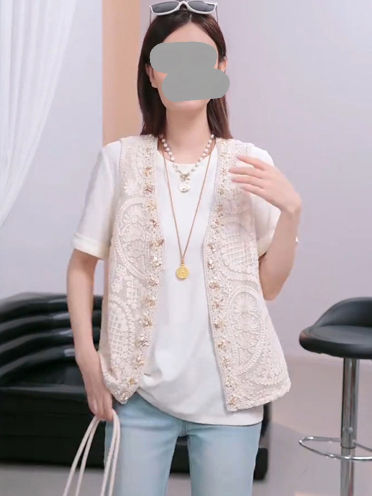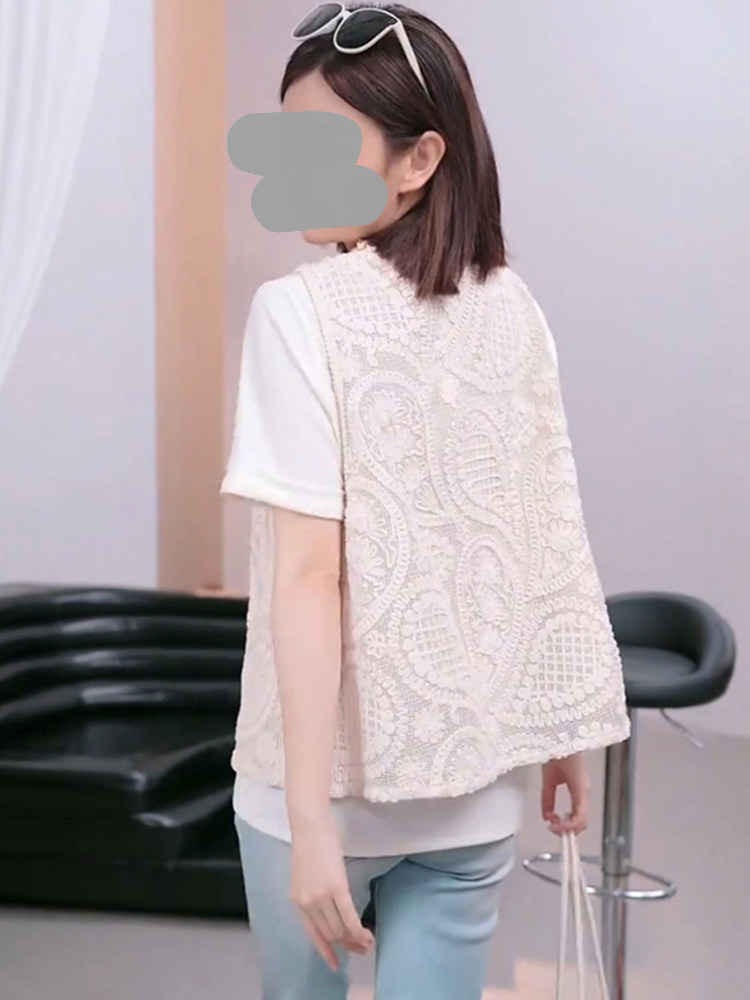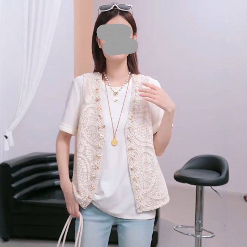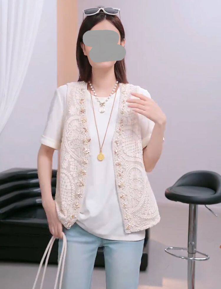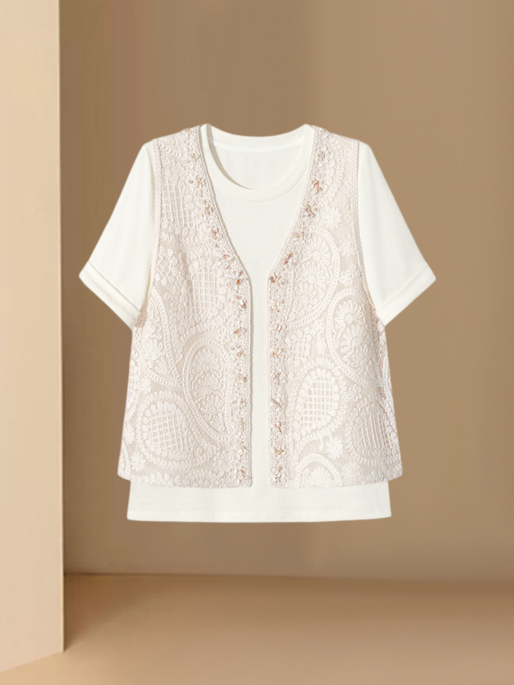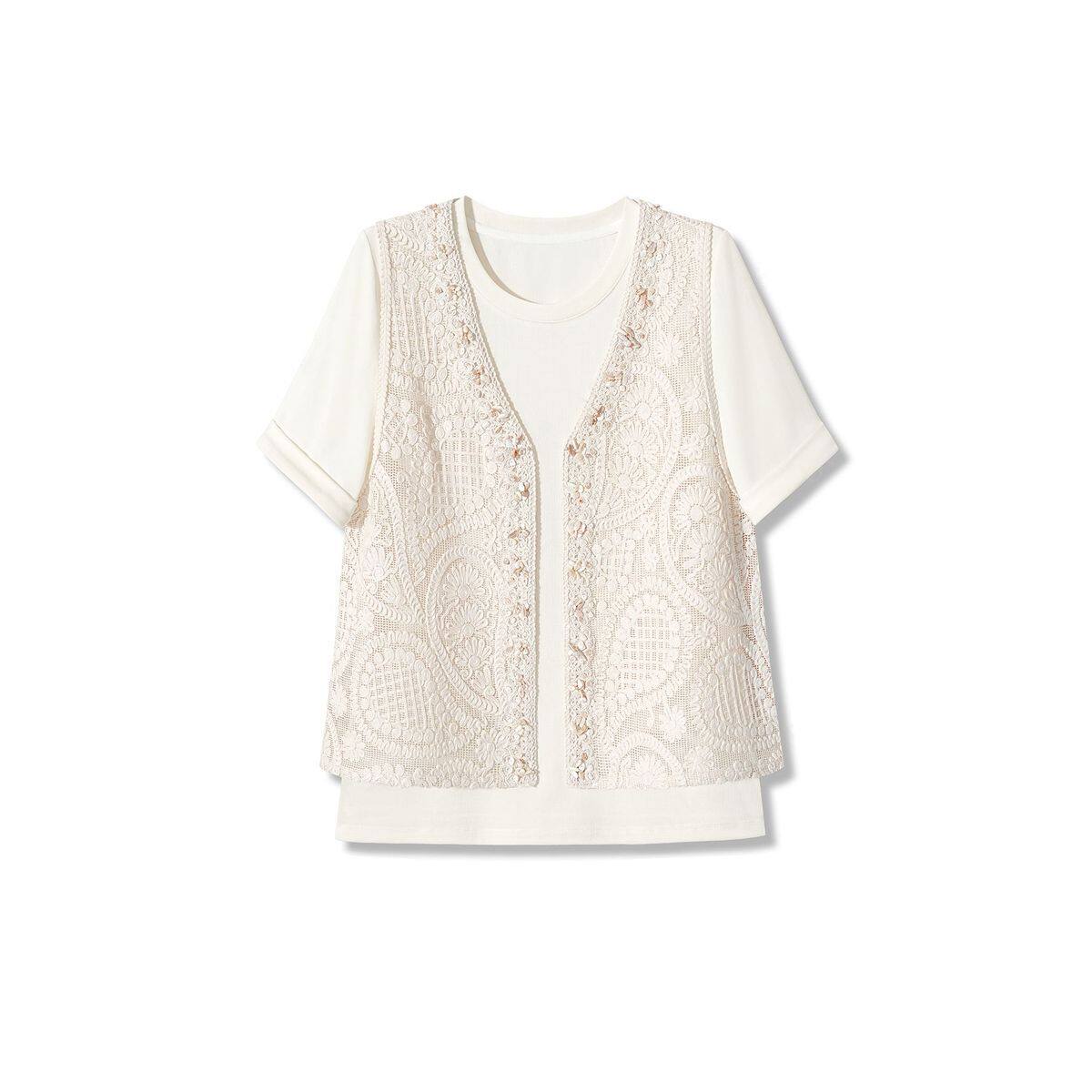 独特2026夏季简约时尚提花刺绣背心短袖T恤温柔风韩系两件套上衣