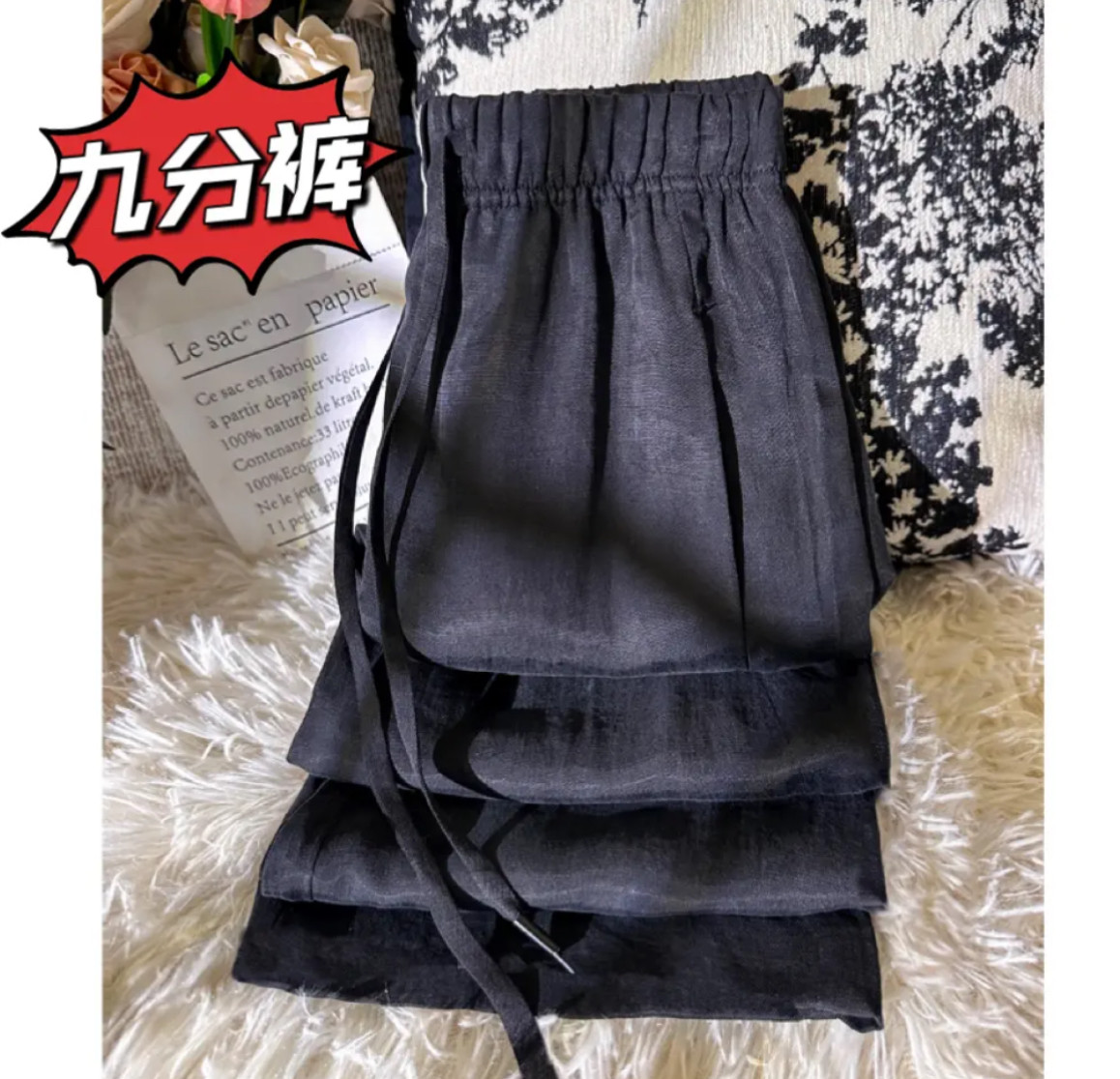 亚麻女裤子2026新款休闲九分裤时尚宽松显瘦窄版直筒阔腿裤薄款夏