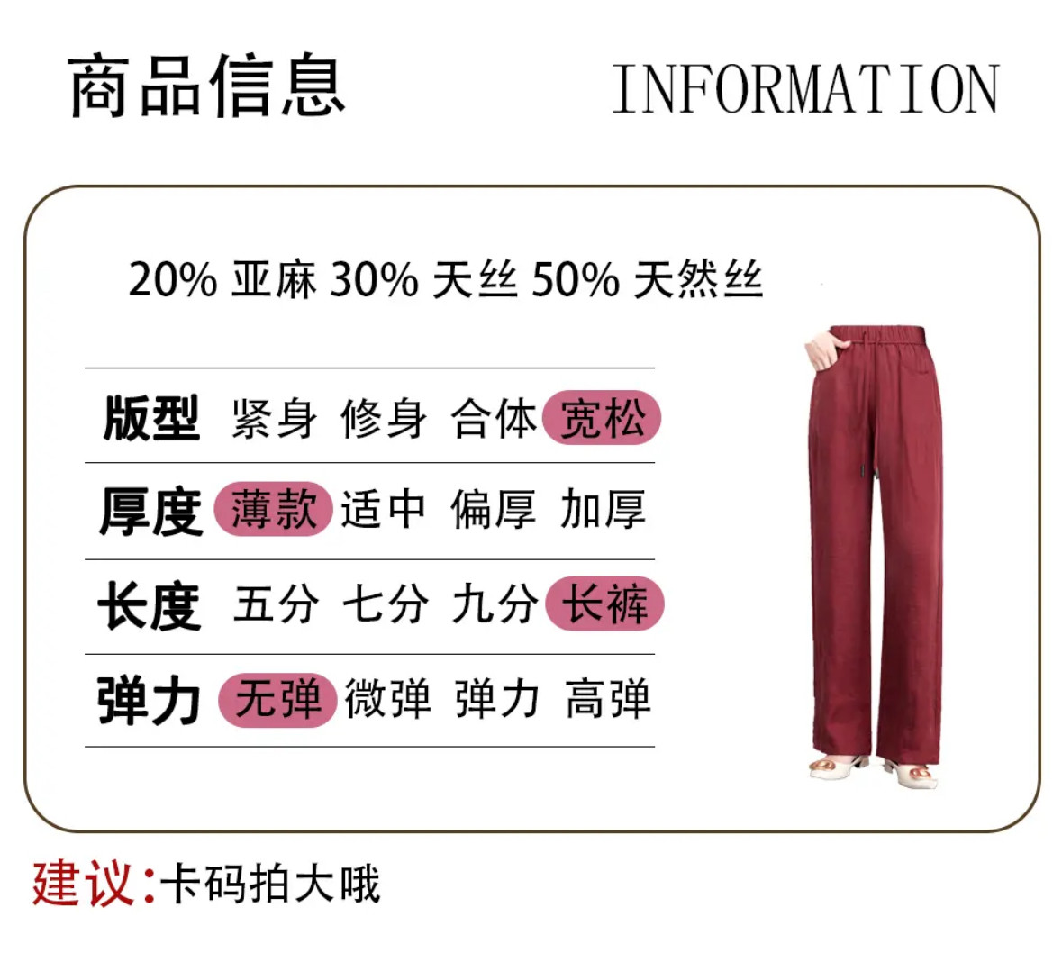 酒红色(朱沙红)长裤 / M建议(90-105)