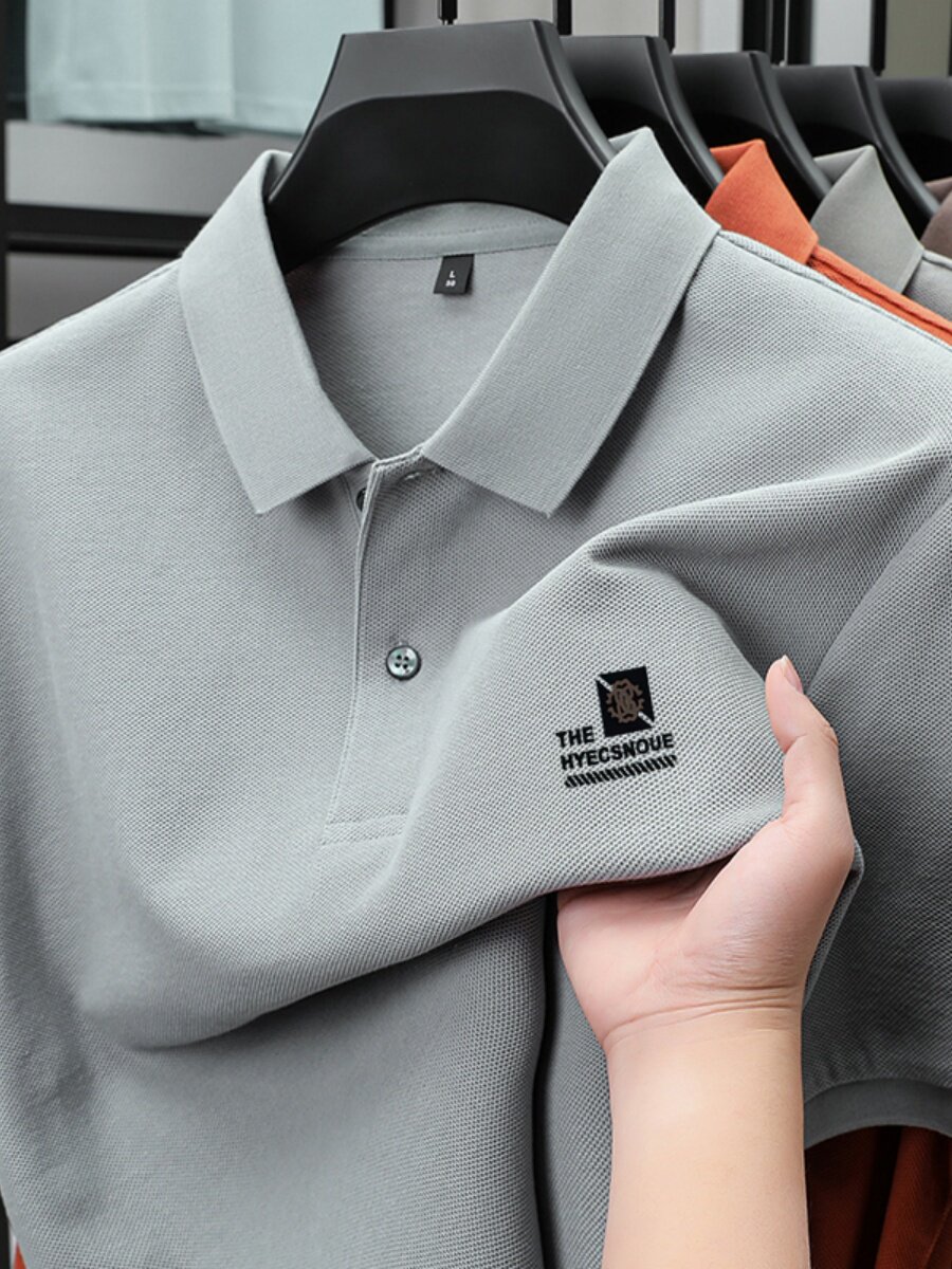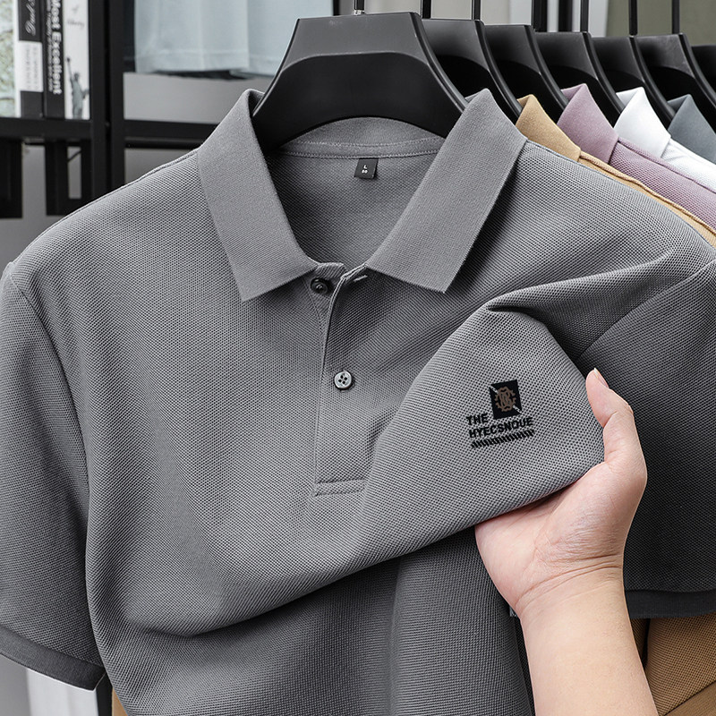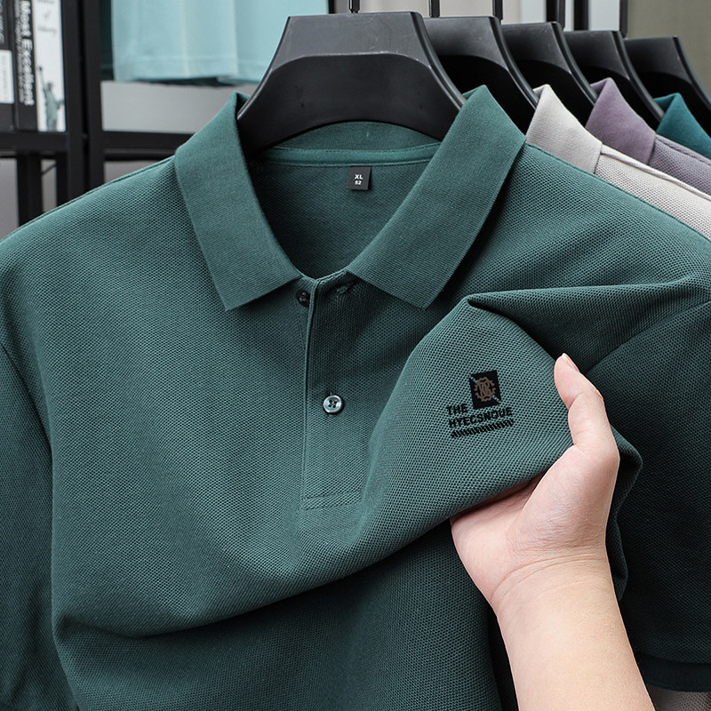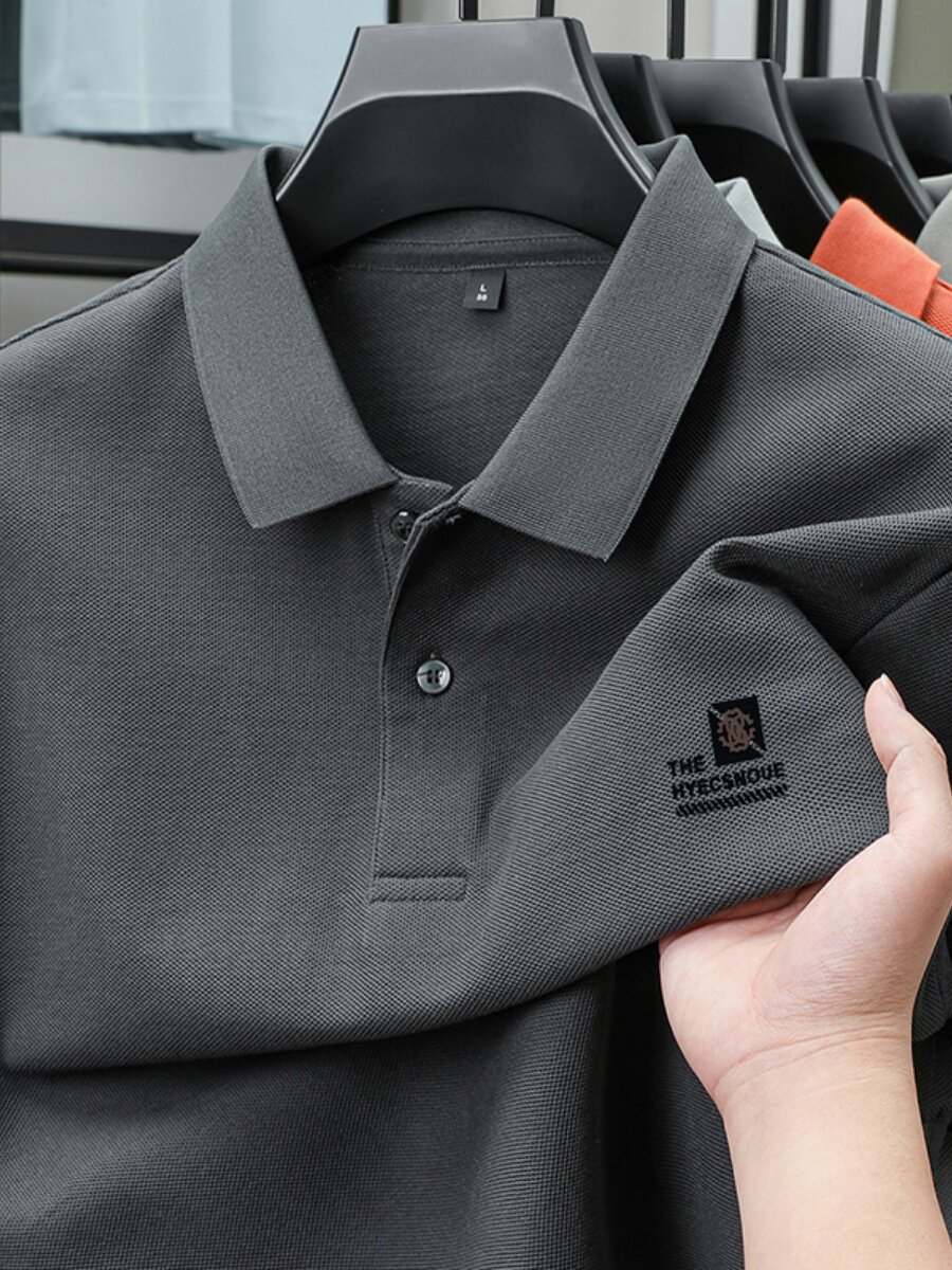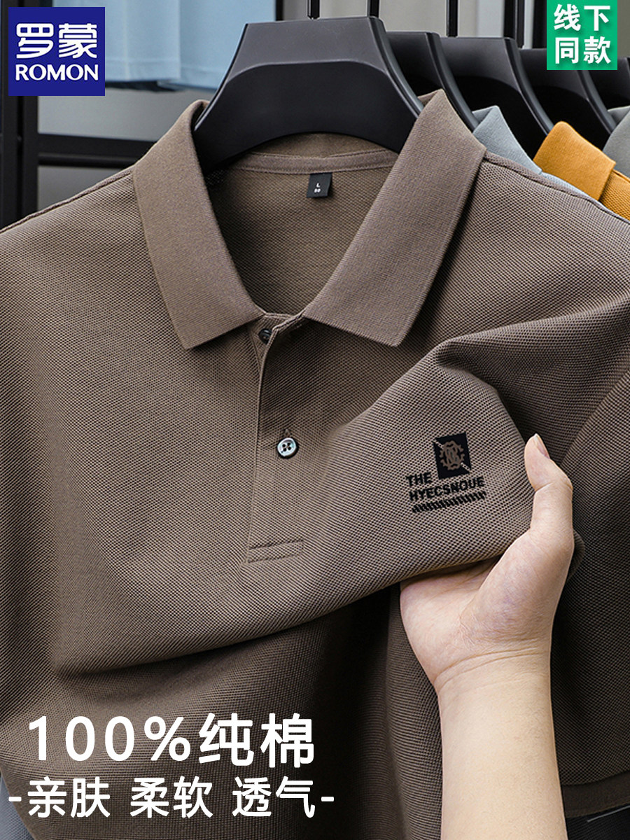 罗蒙100%棉POLO衫短袖休闲男士2025夏季新款上衣纯色印花翻领t恤