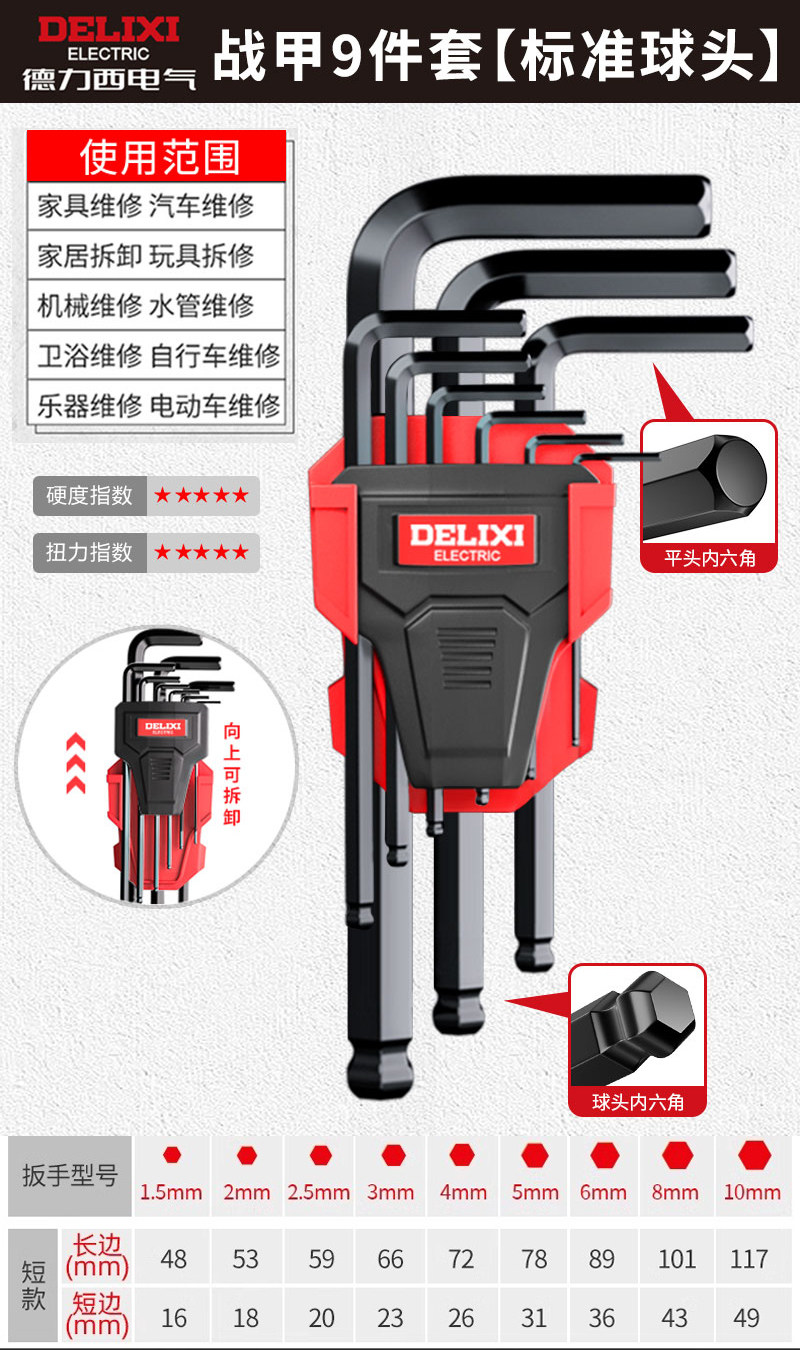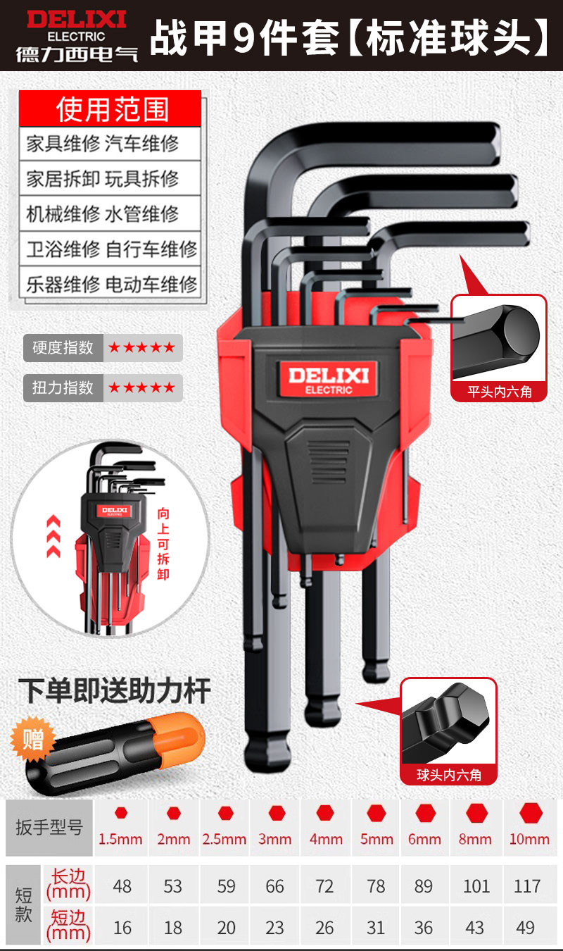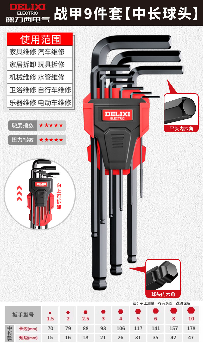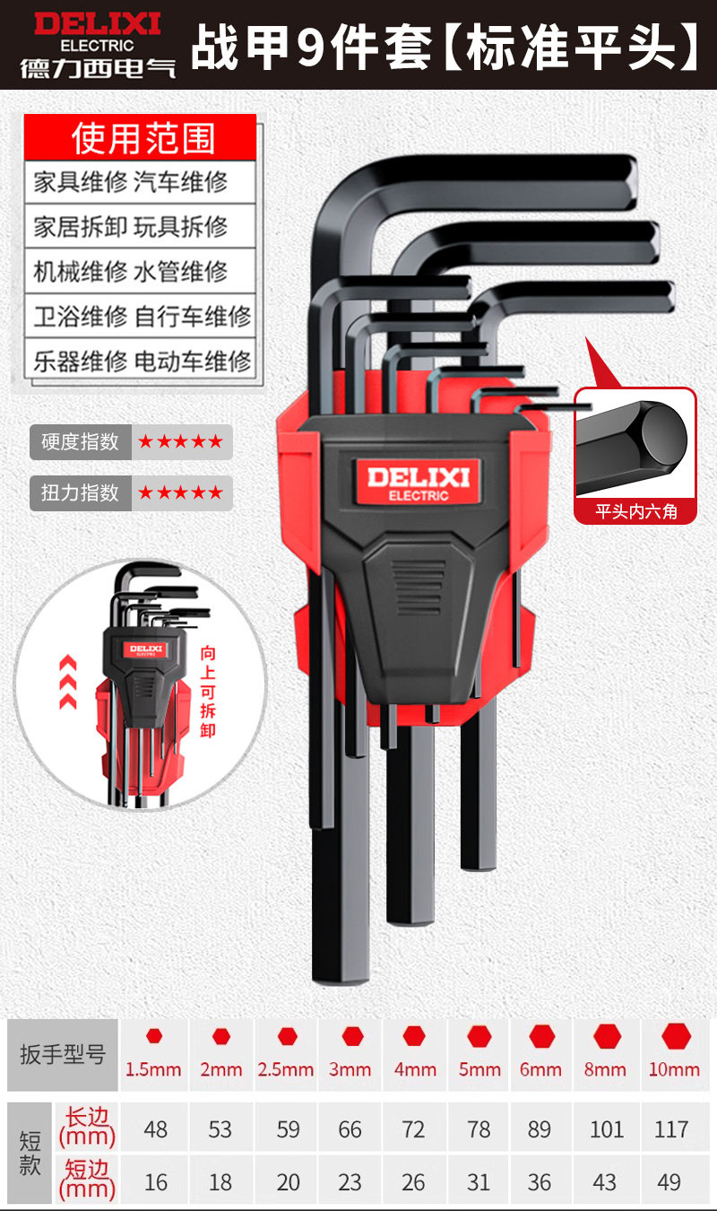HomeProducts德力西电气内六角扳手套装自动组合单个六角匙内六方棱螺丝刀工具