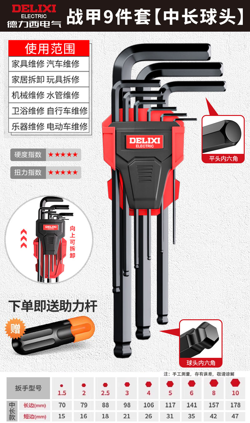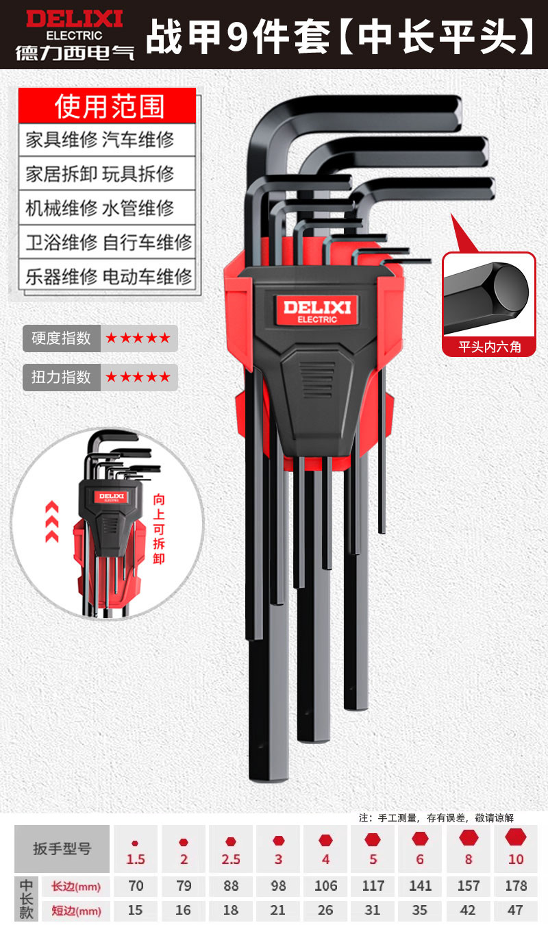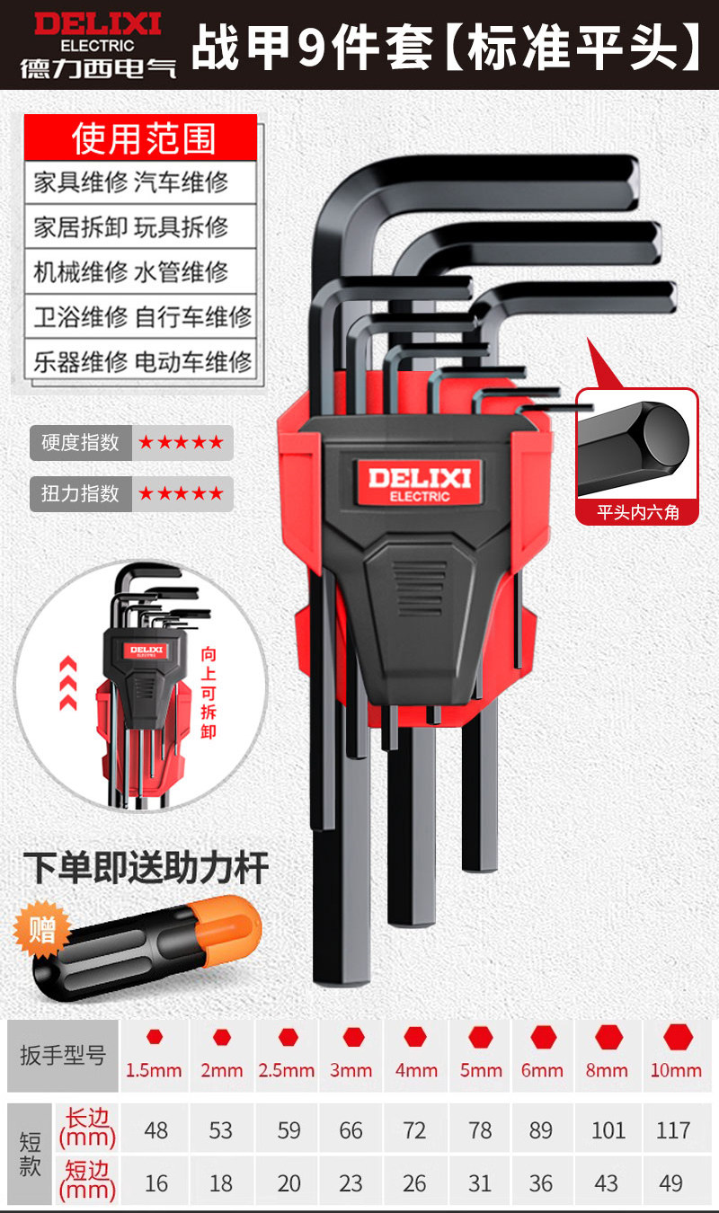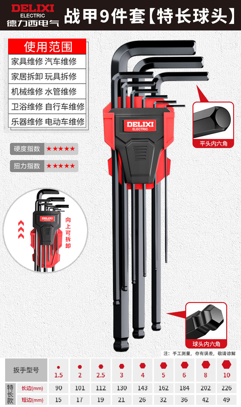 HomeProducts德力西电气内六角扳手套装自动组合单个六角匙内六方棱螺丝刀工具